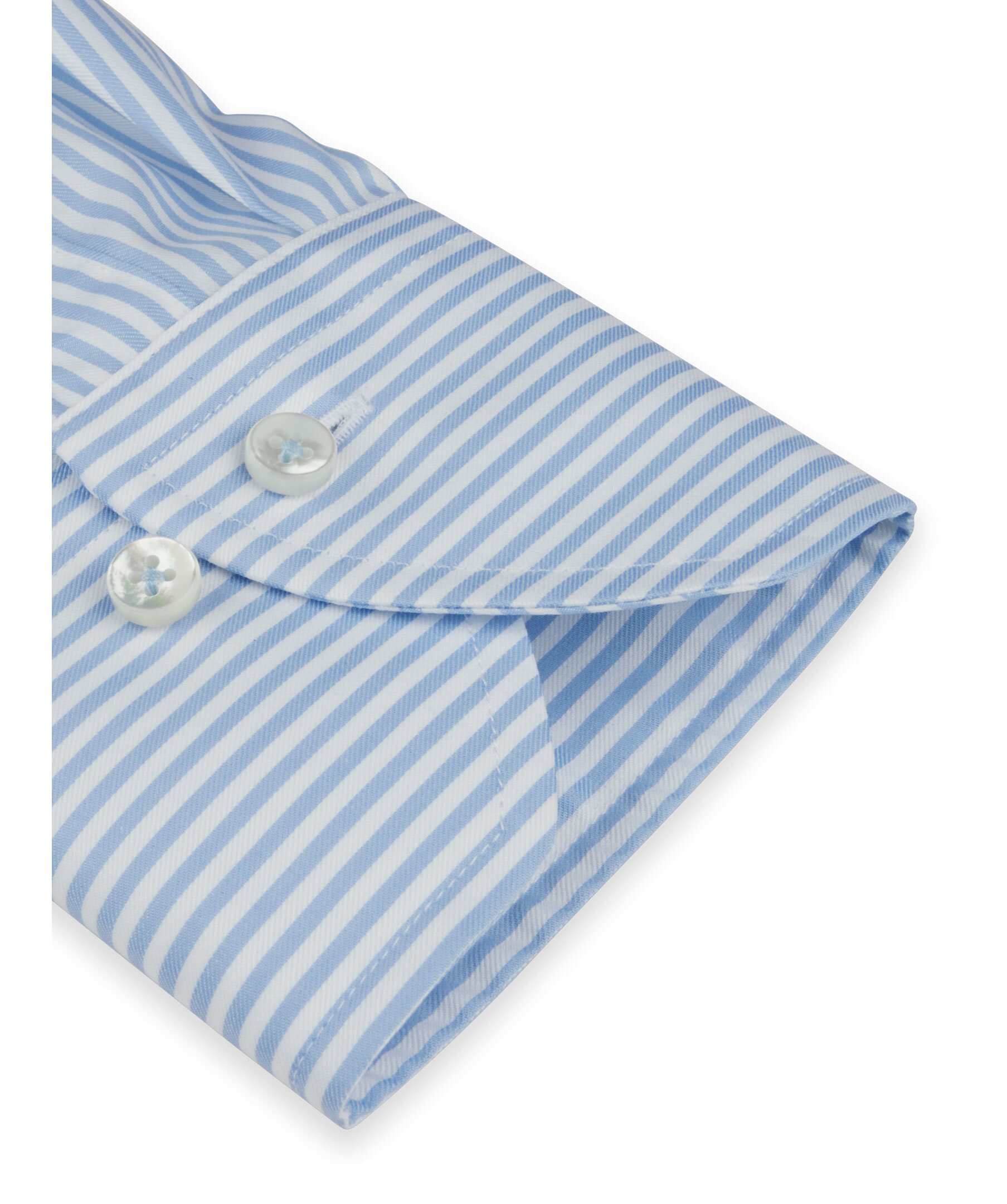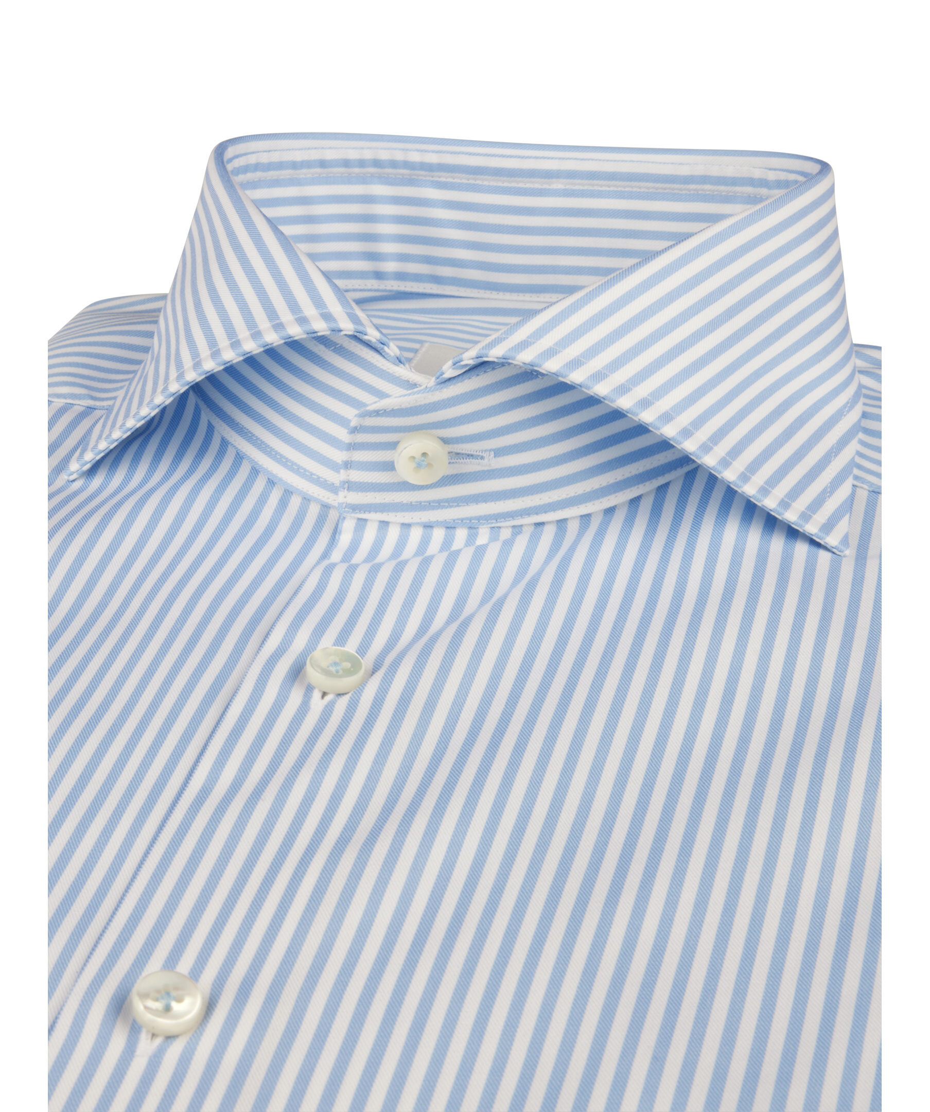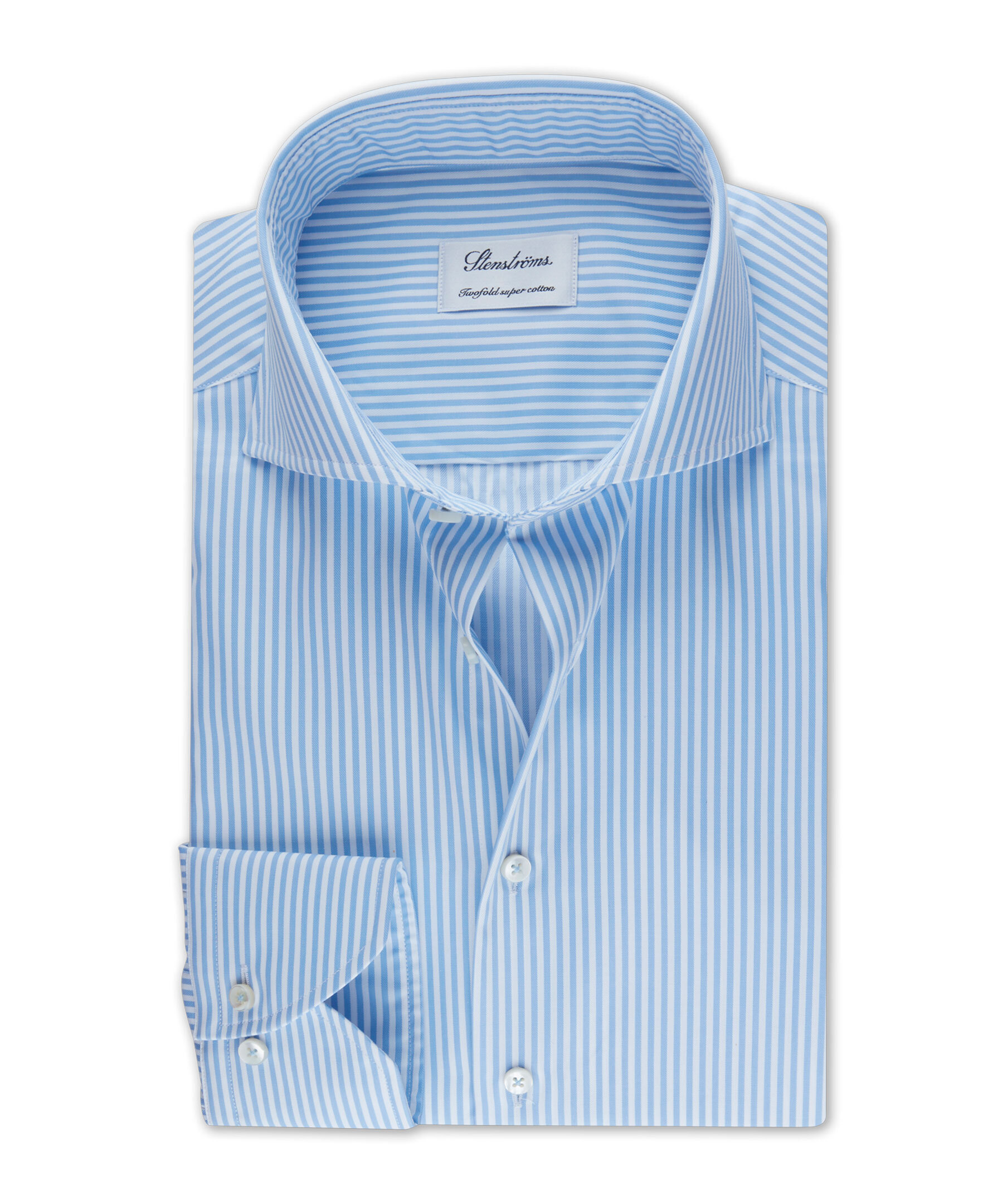 Denna randiga Fitted Body twillskjorta är tillverkad av twofold bomull och har pärlemorknappar, enkla manschetter och en cut away krage.