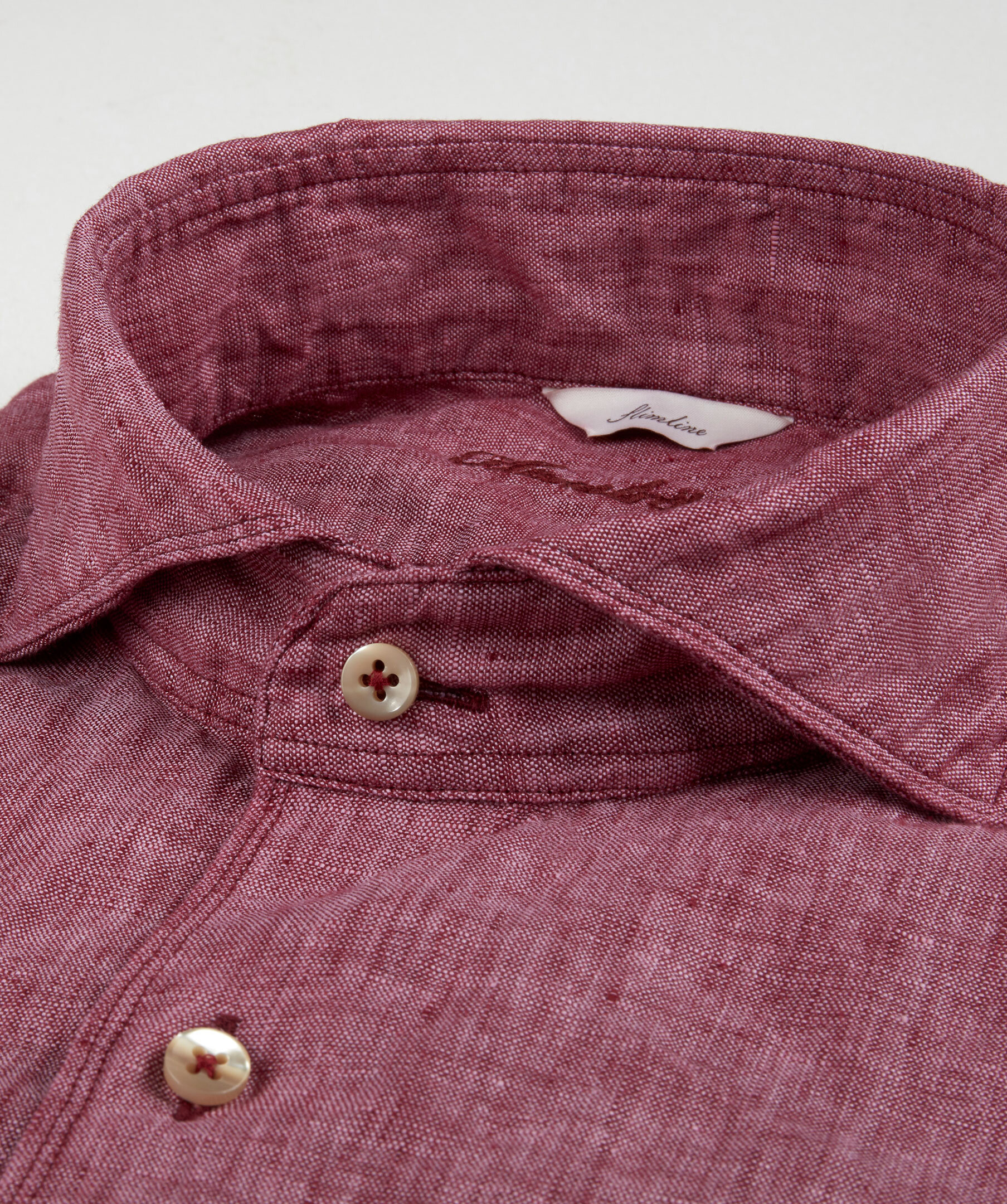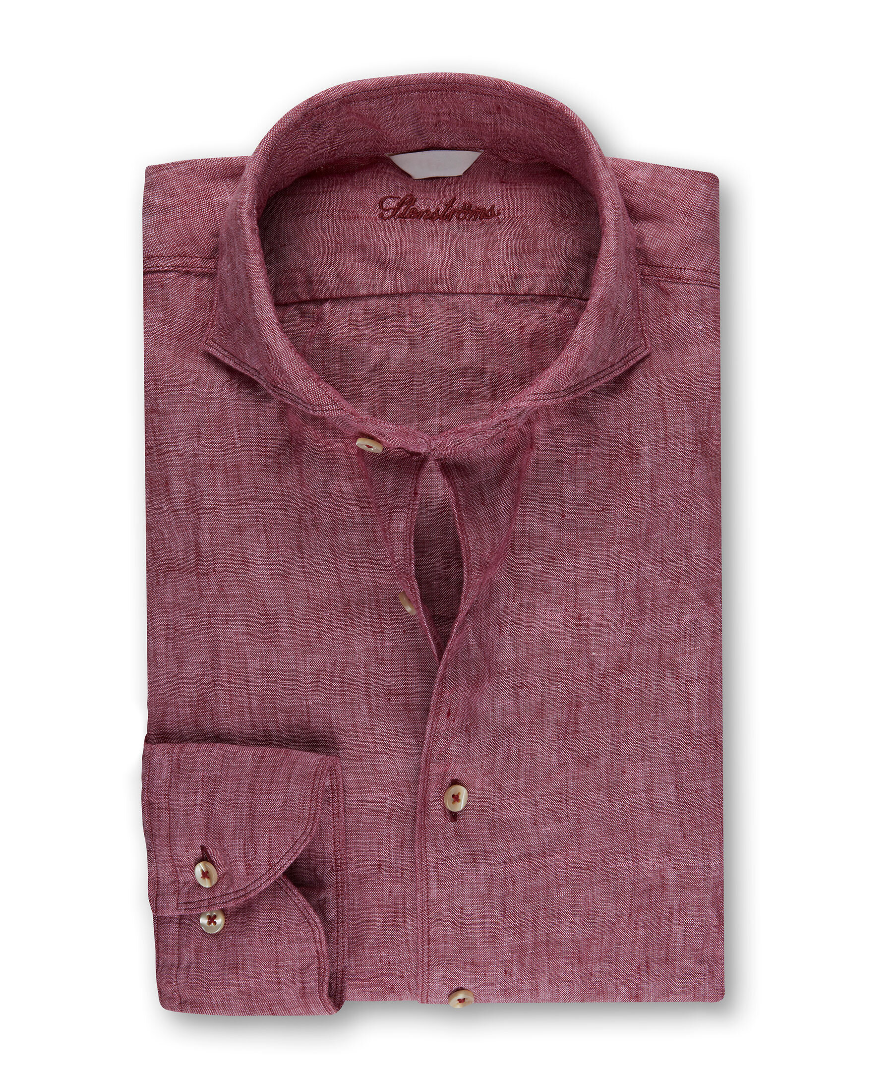 Röd skjorta från Stenströms. Tillverkad i 100% linne. Cut away krage, enkel manschett, fitted body, pärlemorknappar.