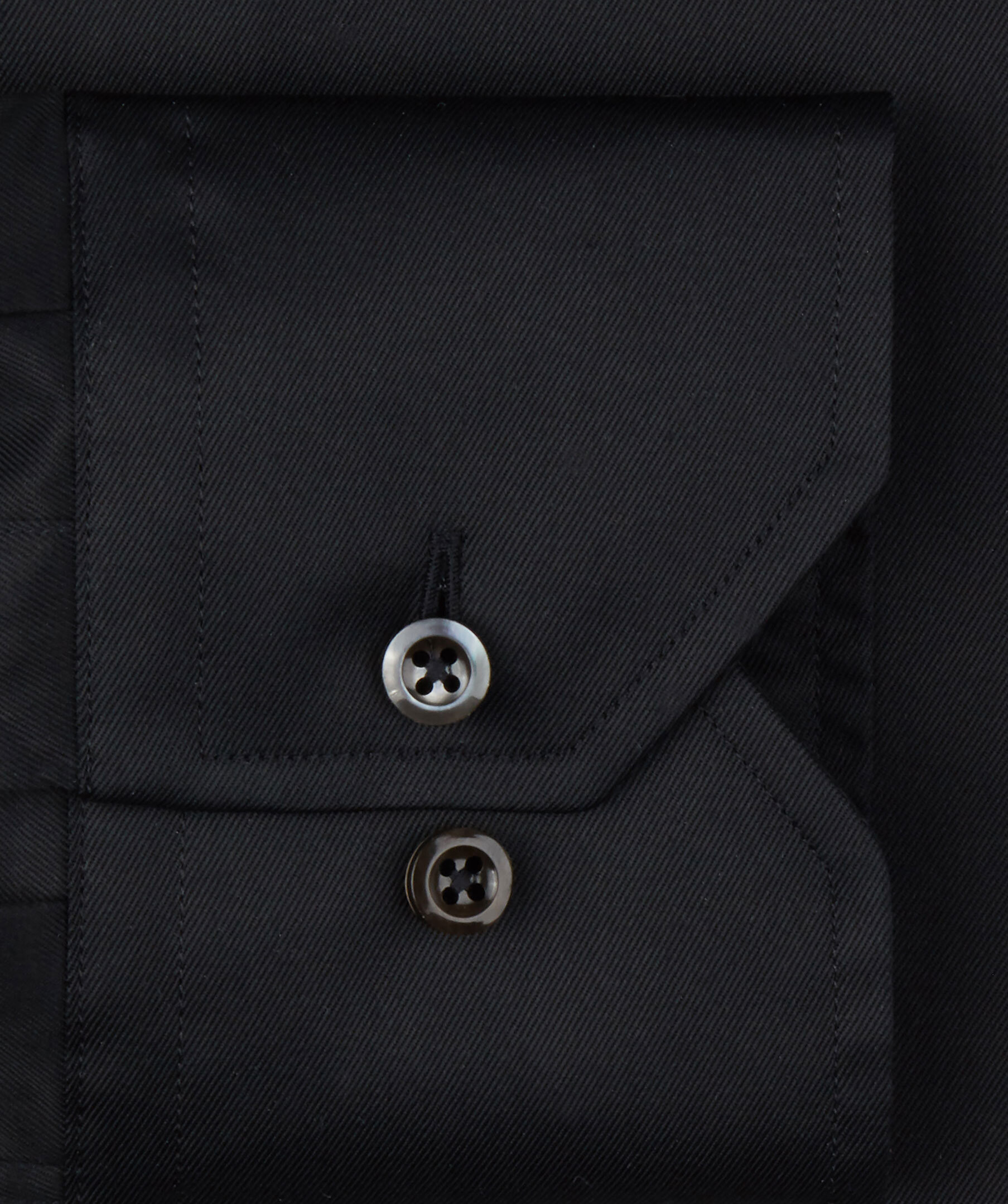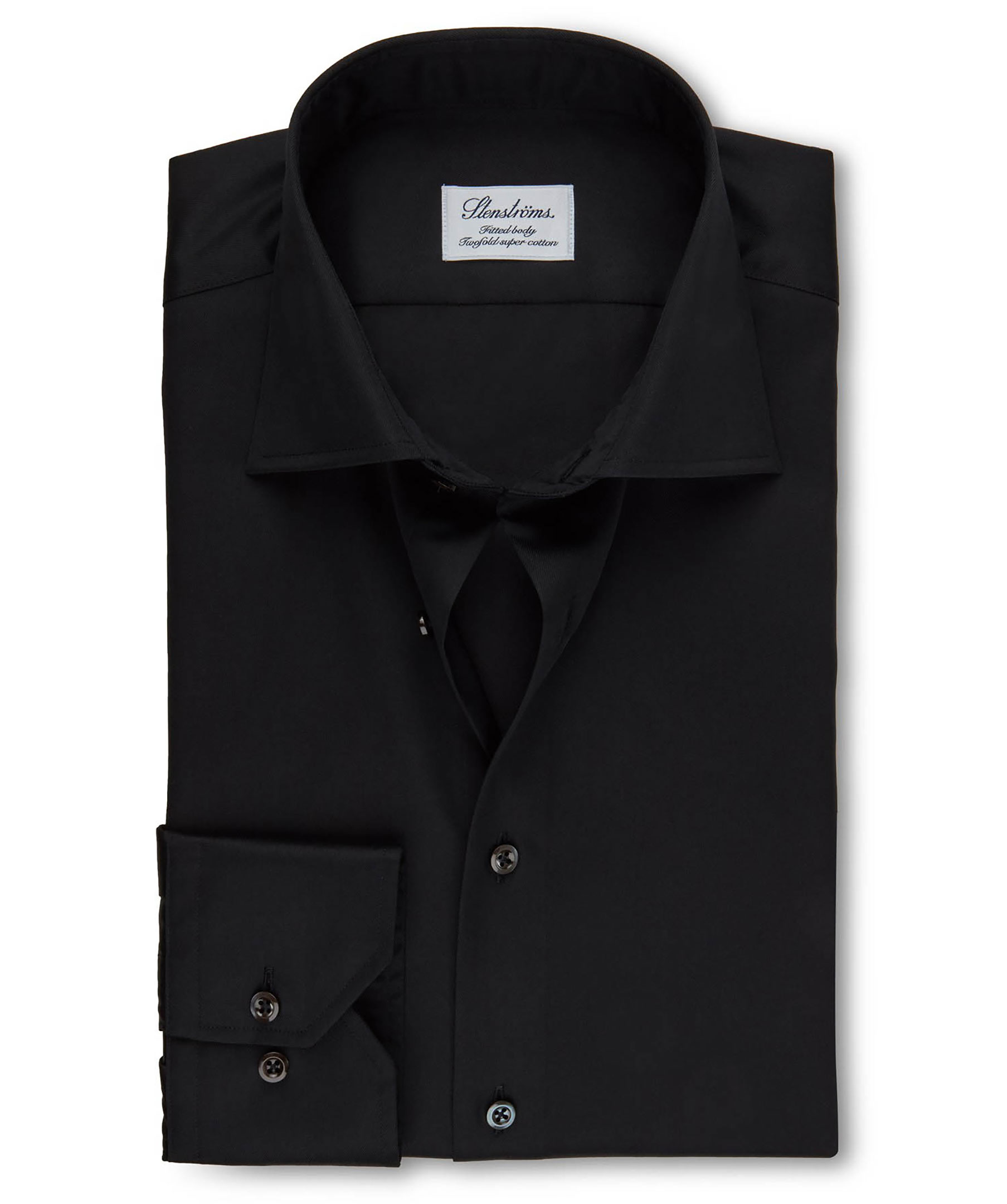 Svart skjorta från Stenströms. Fitted body, moderate cut away krage, svarta pärlemorknappar, enkel manschett. Tillverkad i 100% bomull.