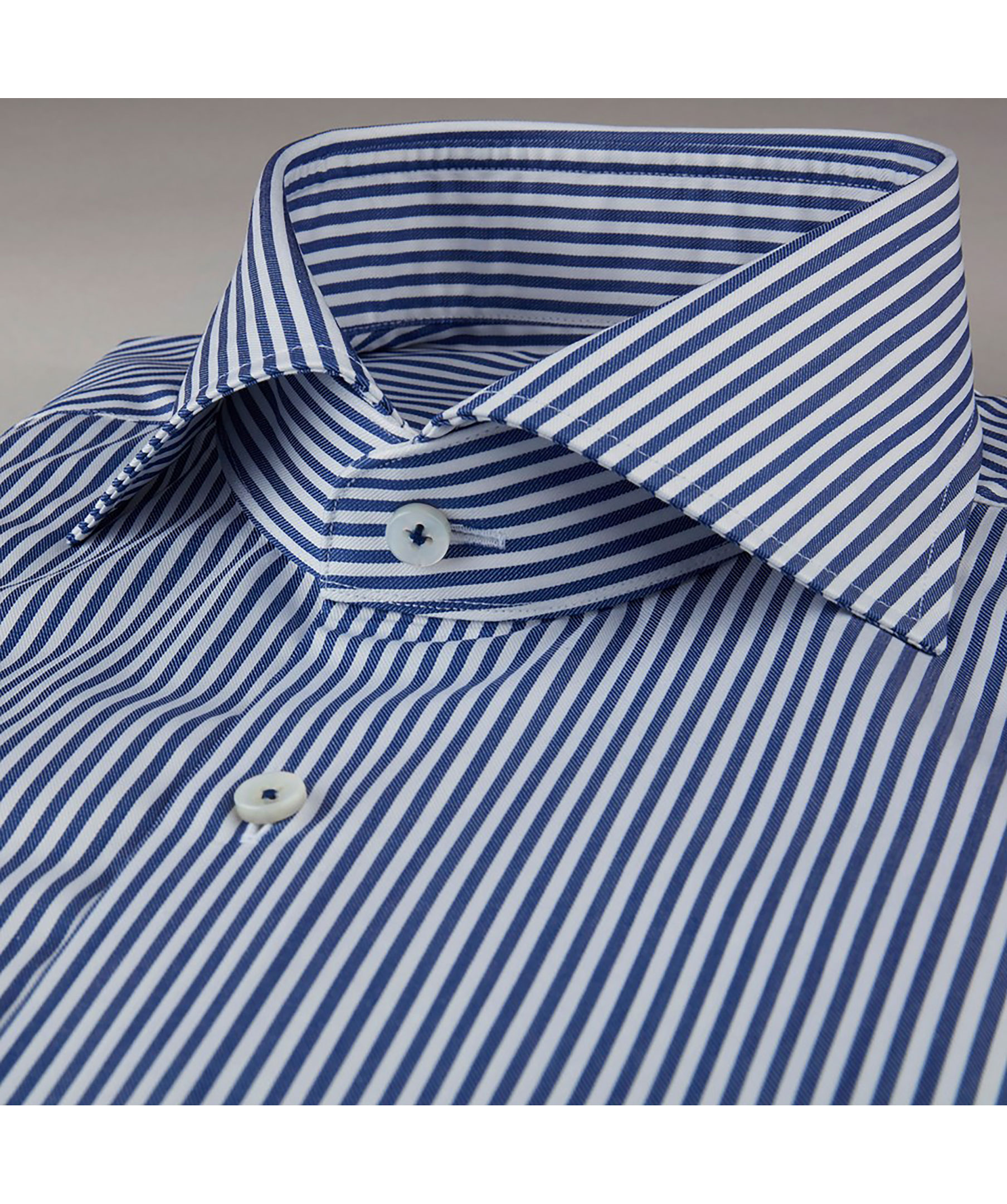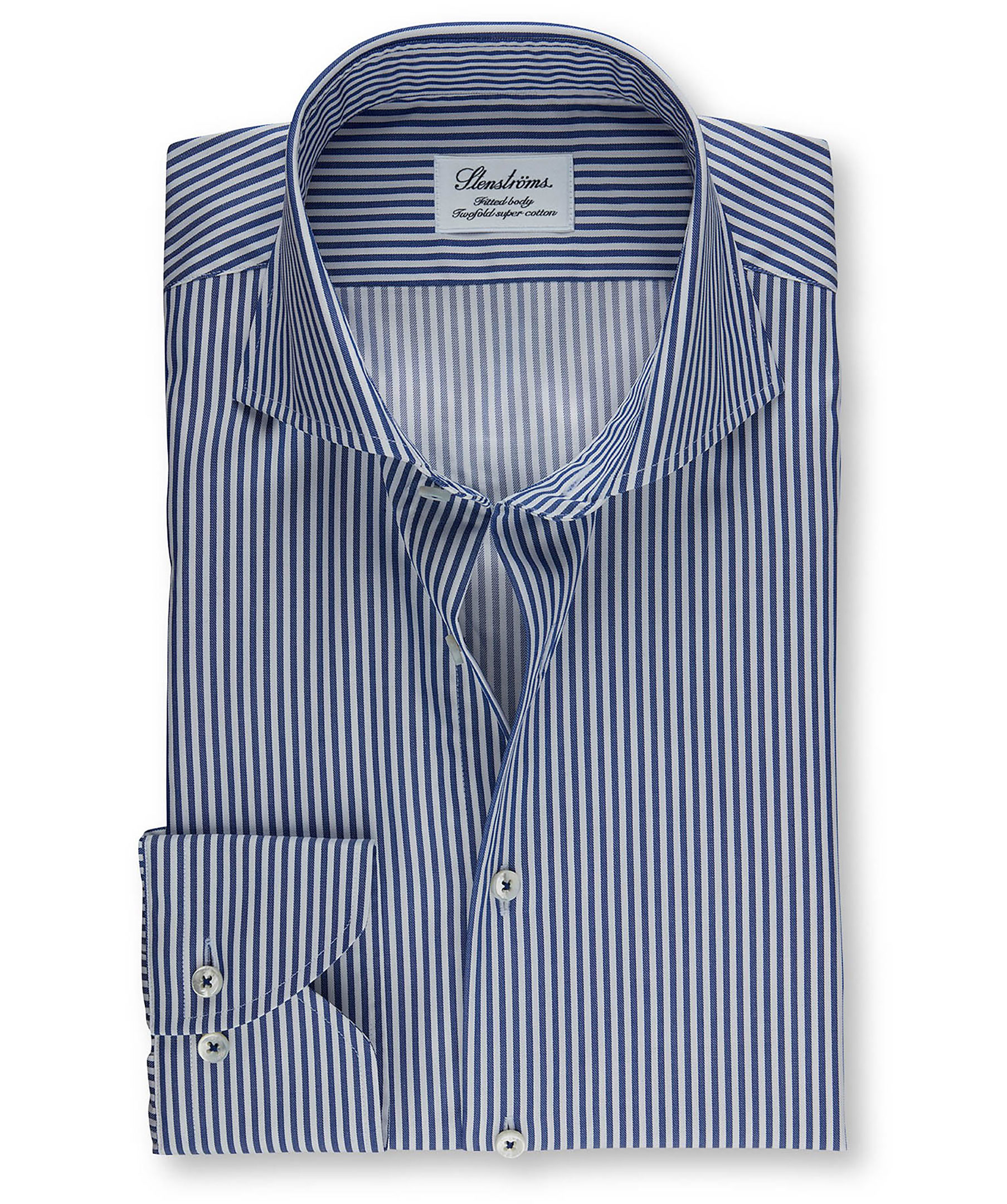 Blå/vit randig skjorta från Stenströms. Fitted body, enkel manschett, cut away krage. Tillverkad i 100% bomull.