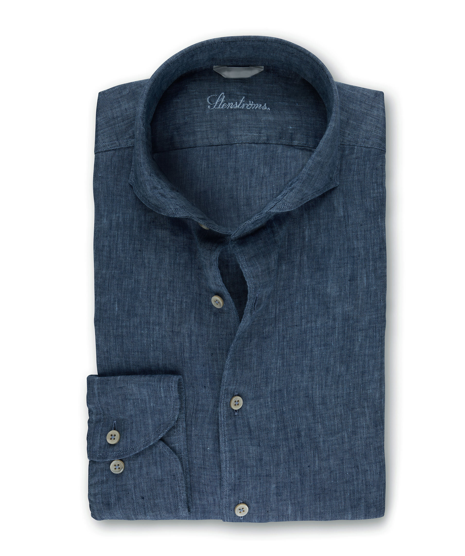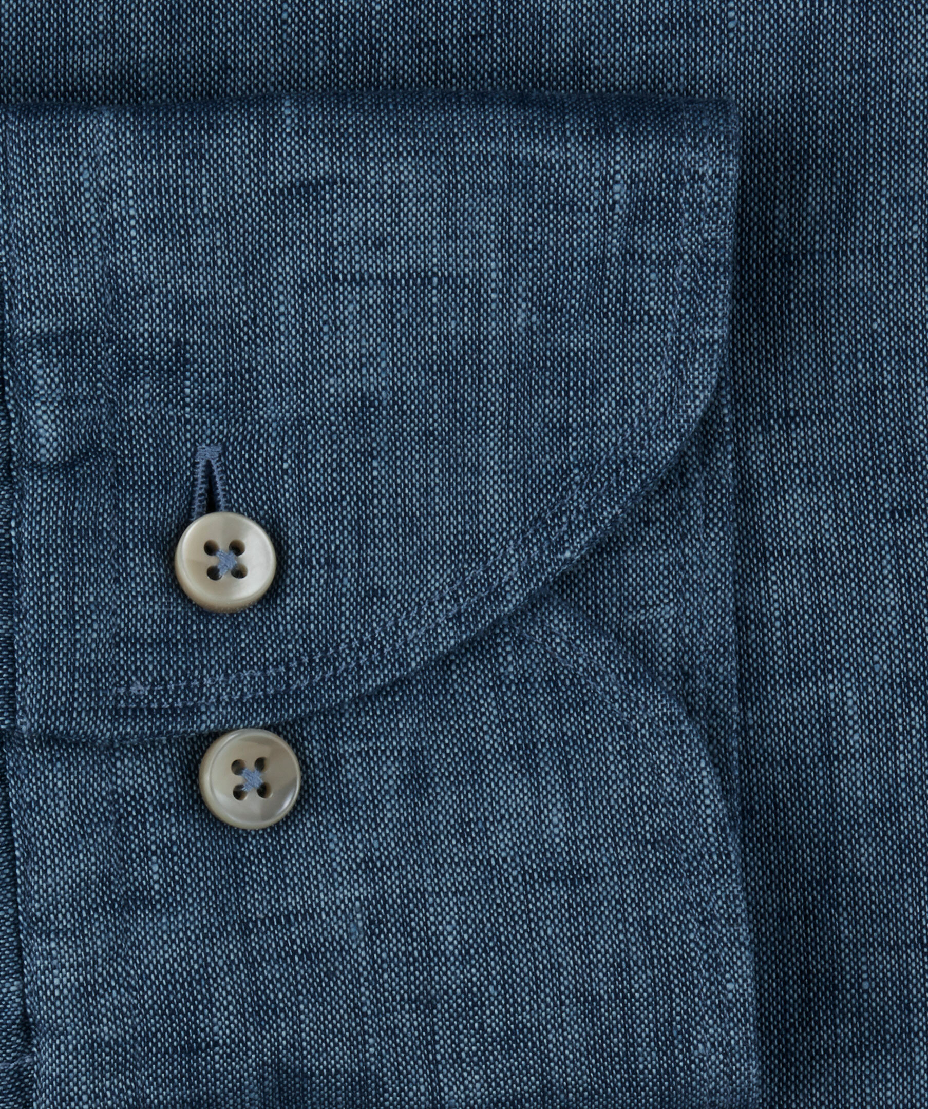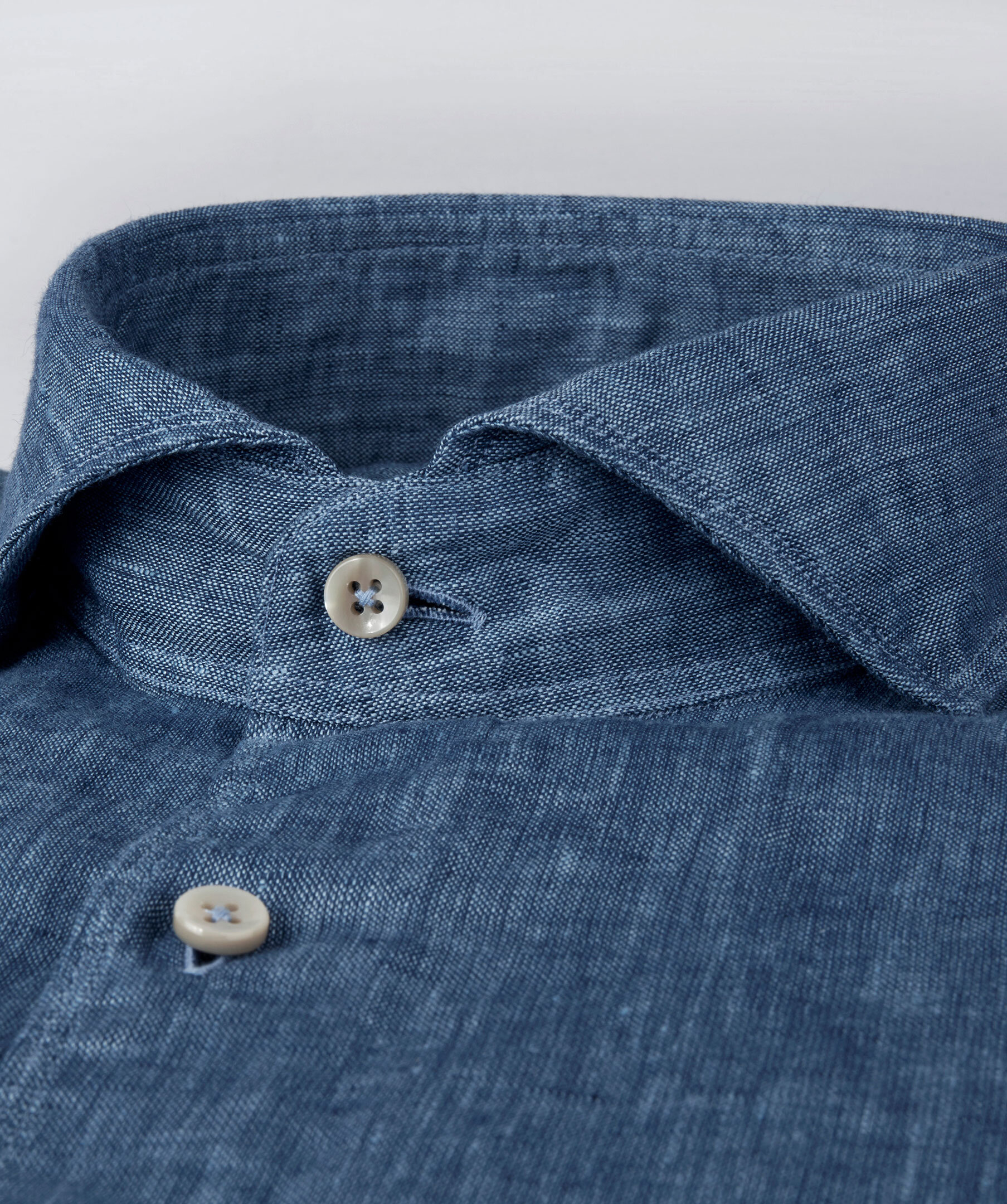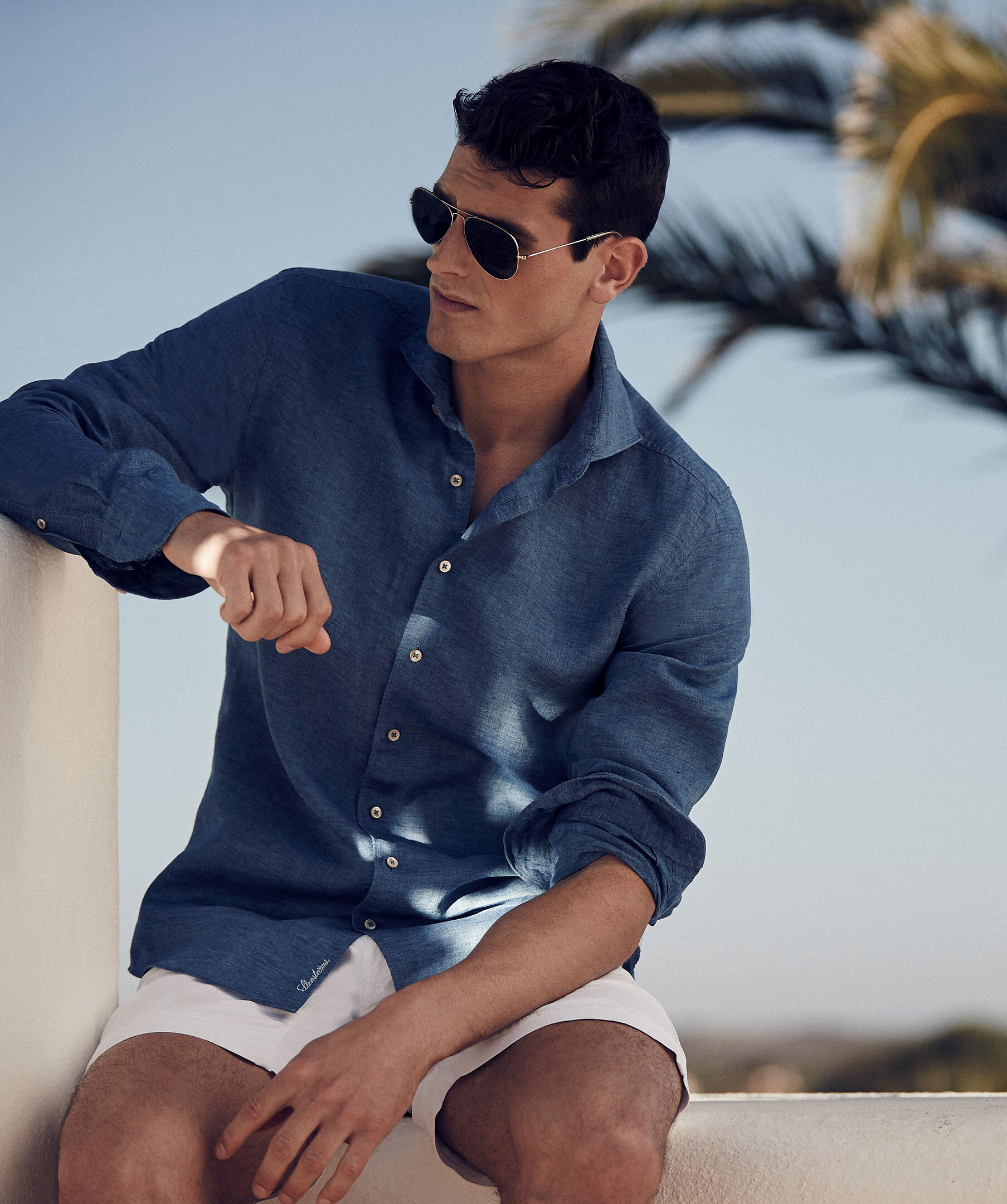 Linneskjortan är det idealiska plagget för varma sommardagar och kan bäras både på kontoret och på stranden. Den här skjortan är skuren i en något skräddarsydd passform och har en slät knappslå med beigea pärlemorknappar och enkla manschetter. Rulla upp ärmarna och bär skjortan till ett par shorts eller ett par jeans för en avslappnad stil.