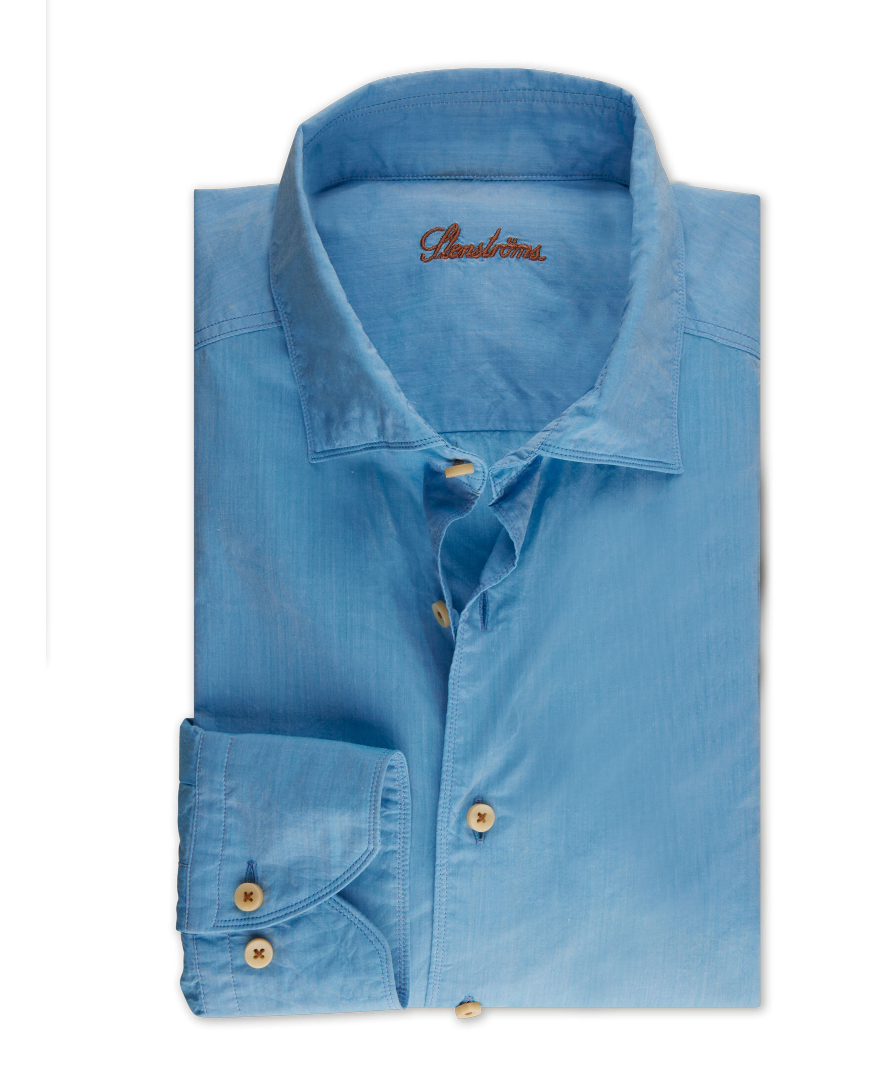 Denna casual poplinskjorta är tillverkad av linne och har pärlemorknappar, enkla manschetter och en cut away krage.