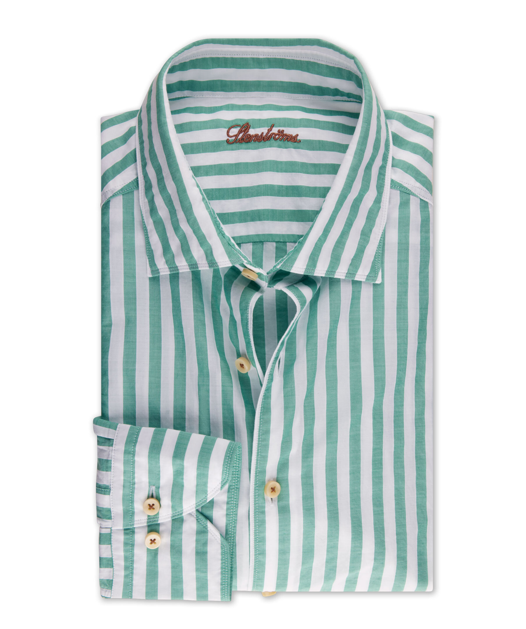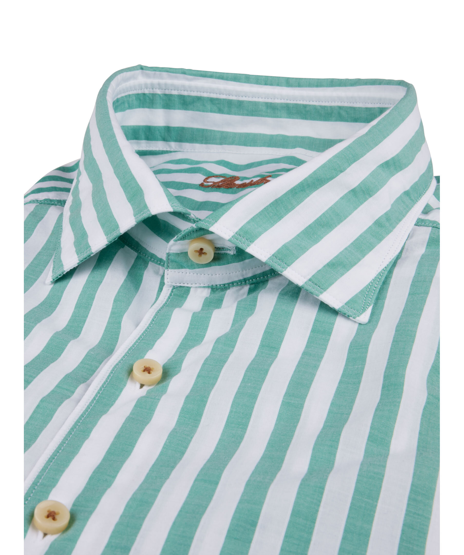 Denna casual randiga poplinskjorta är tillverkad av linne. Skjortan har pärlemorknappar, enkla manschetter och en cut away krage.