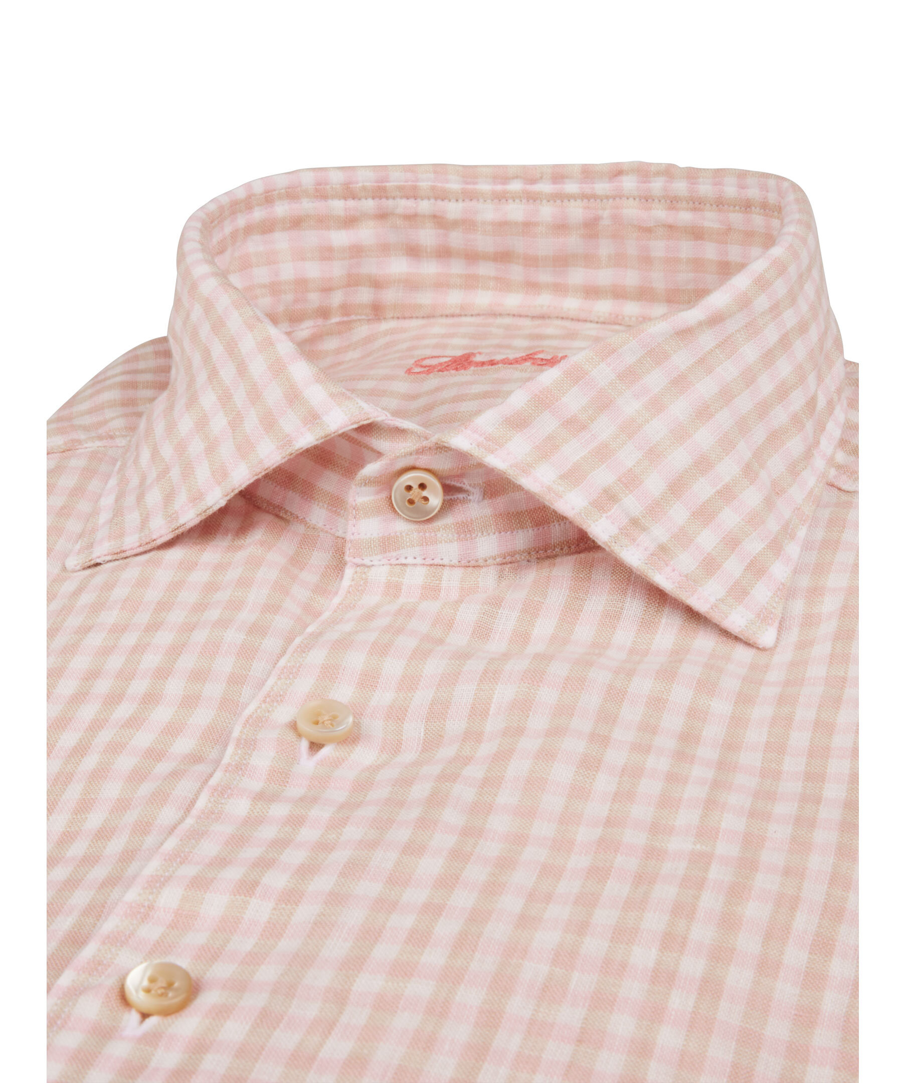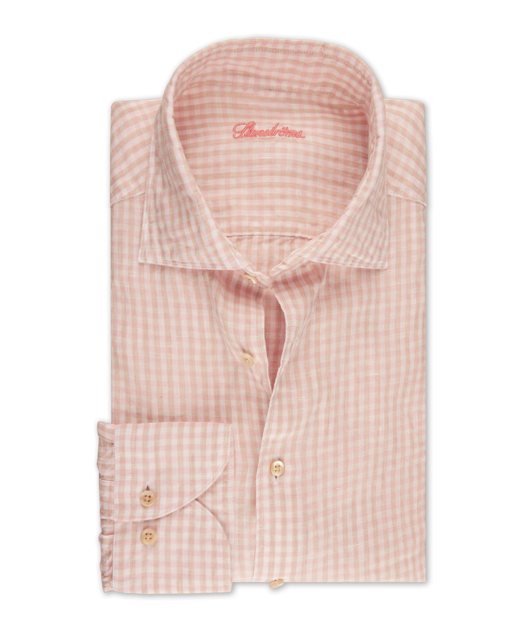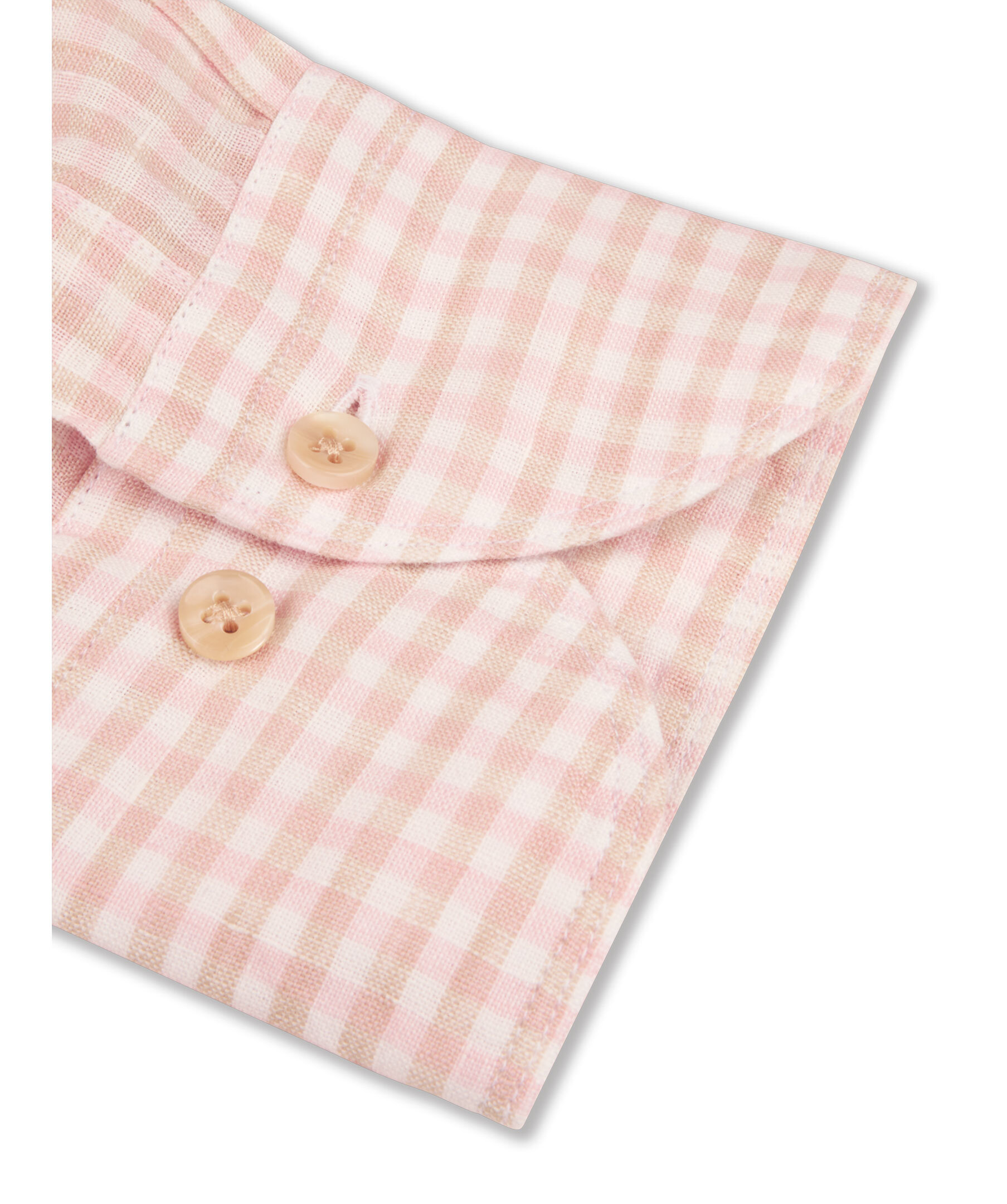 Denna rutiga skjorta är tillverkad av linne och har pärlemorknappar, enkla manschetter och en cut away krage.