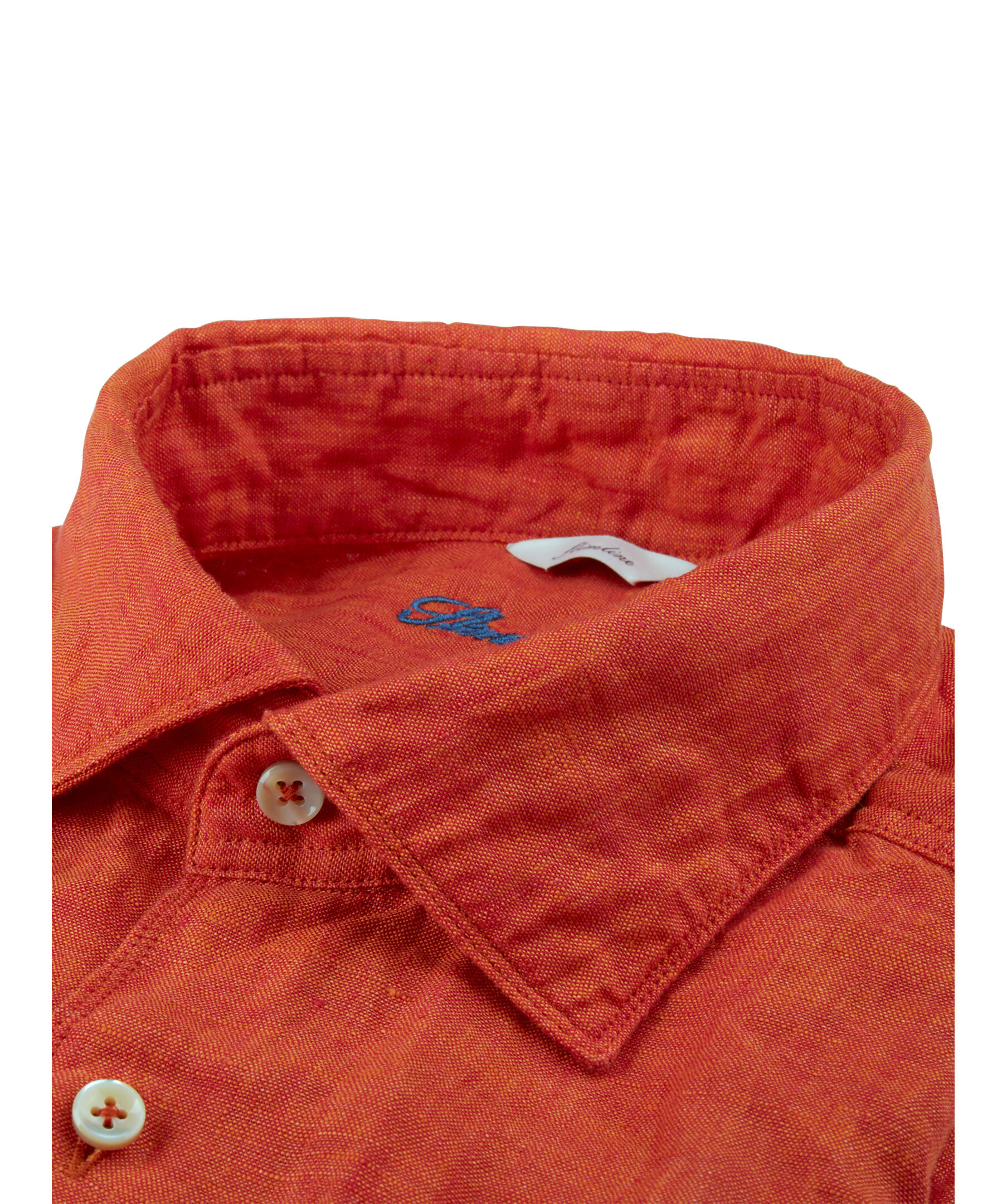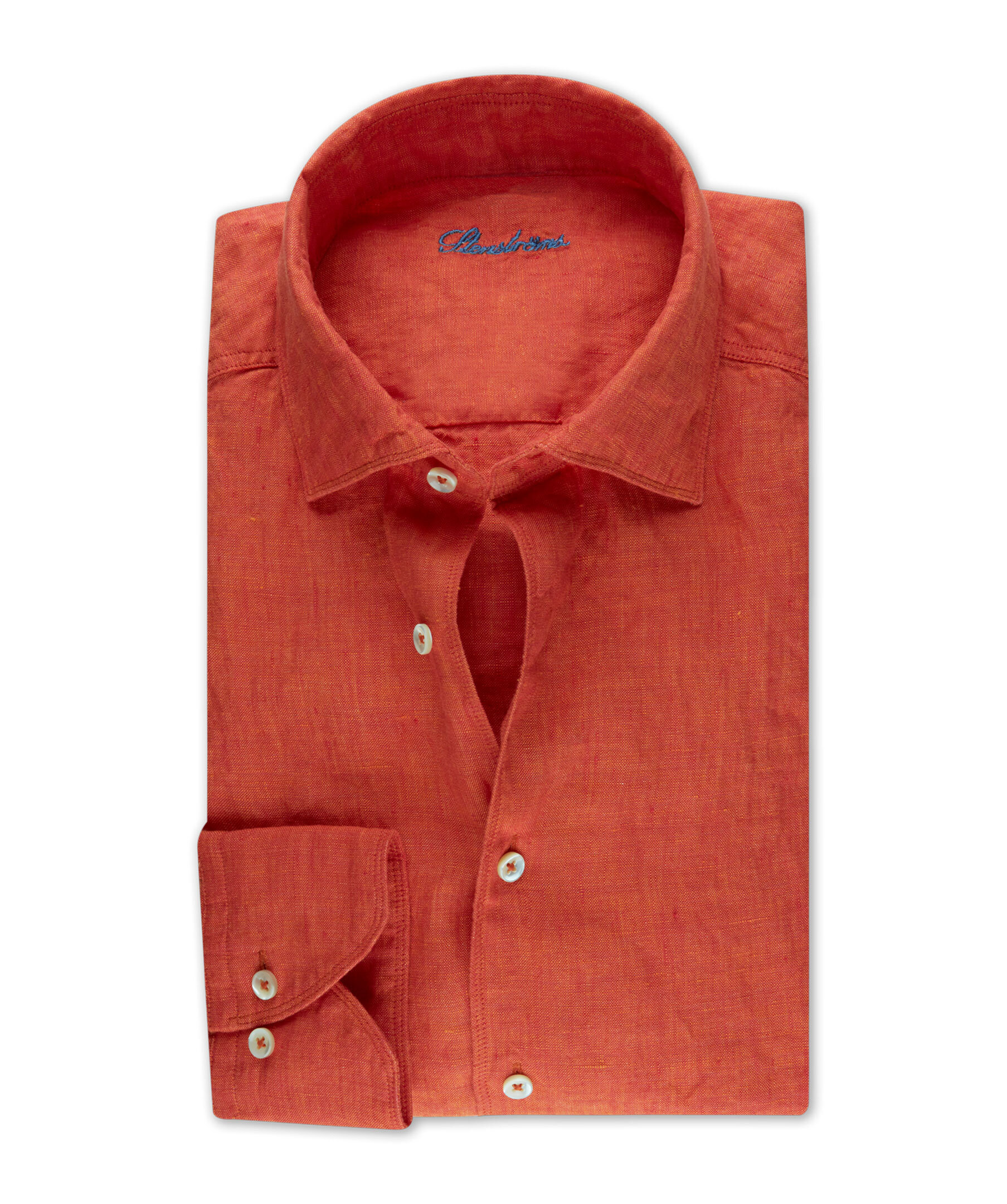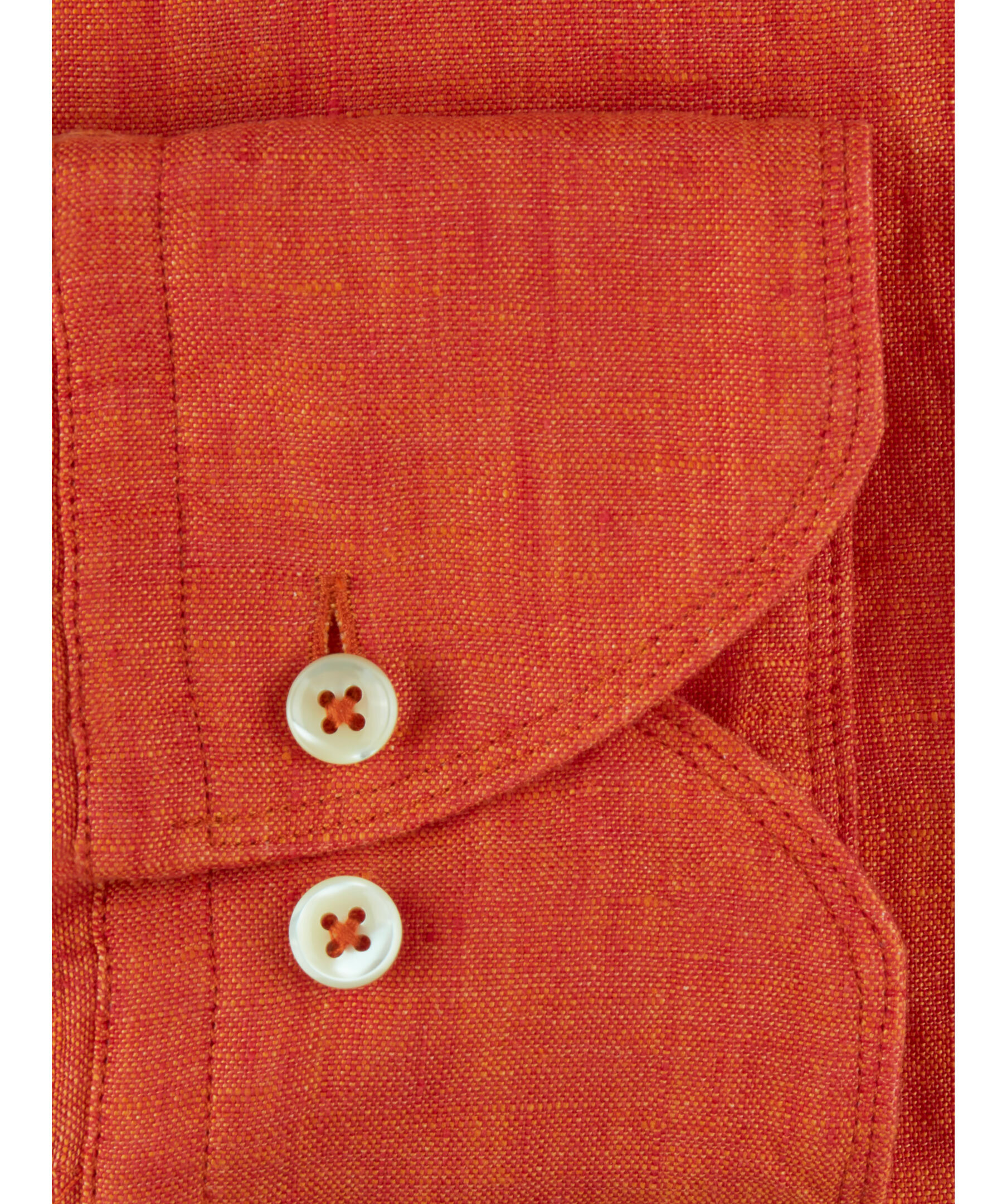Denna Fitted Body-skjorta är tillverkad av linne och pärlemorknappar, enkla manschetter och en cut away krage.