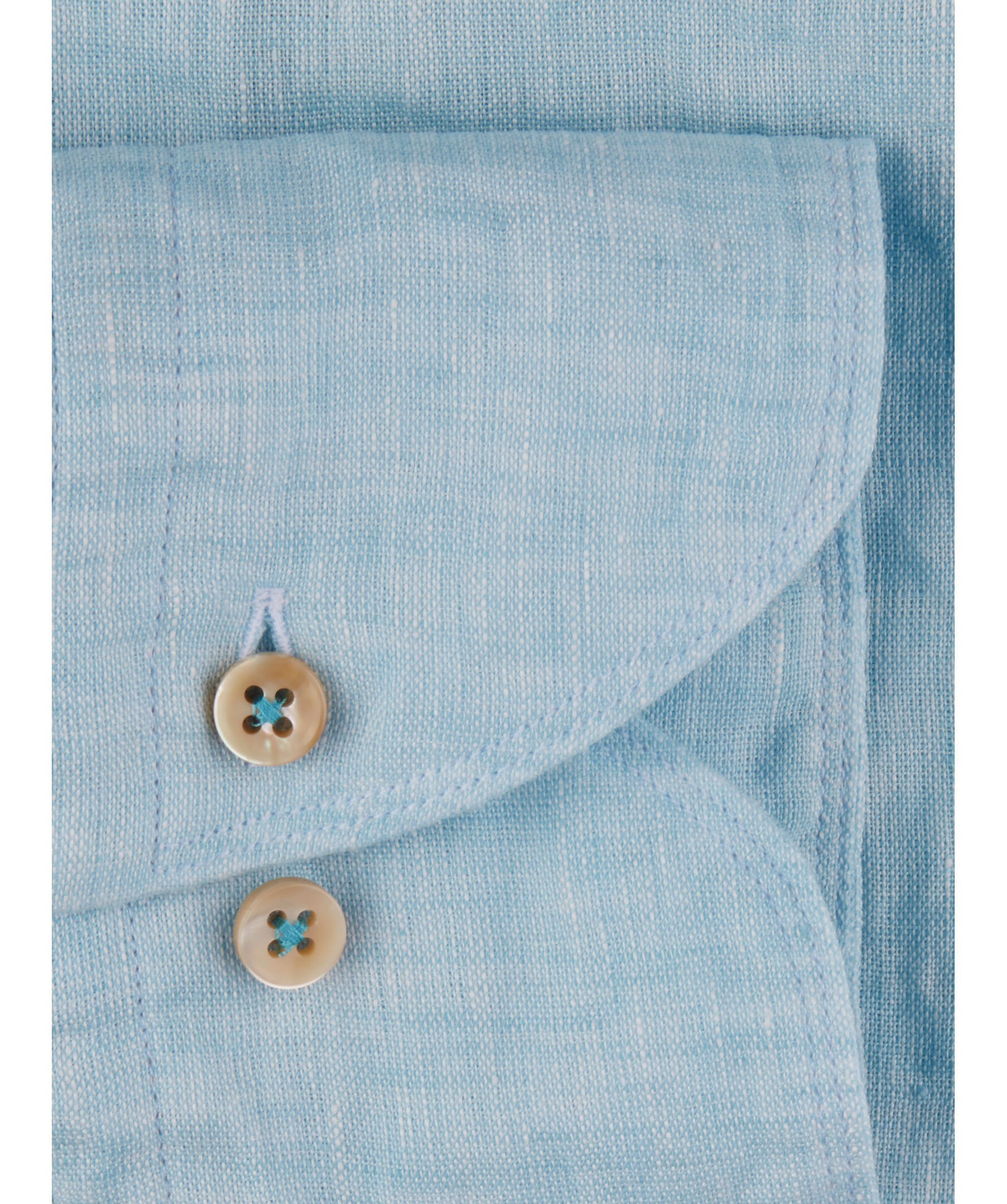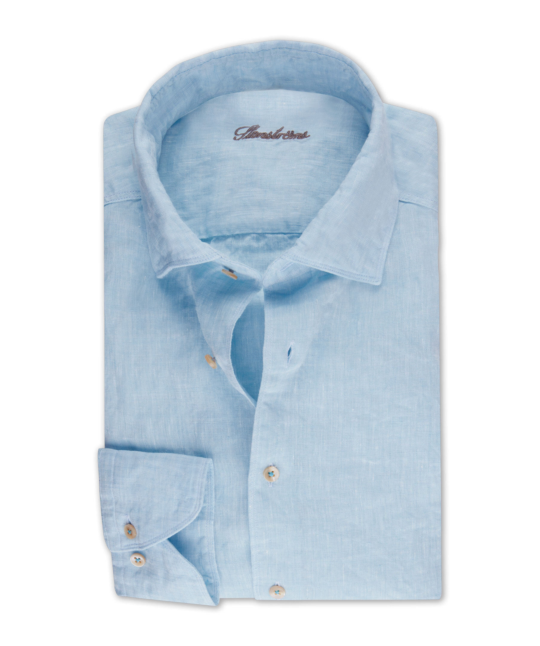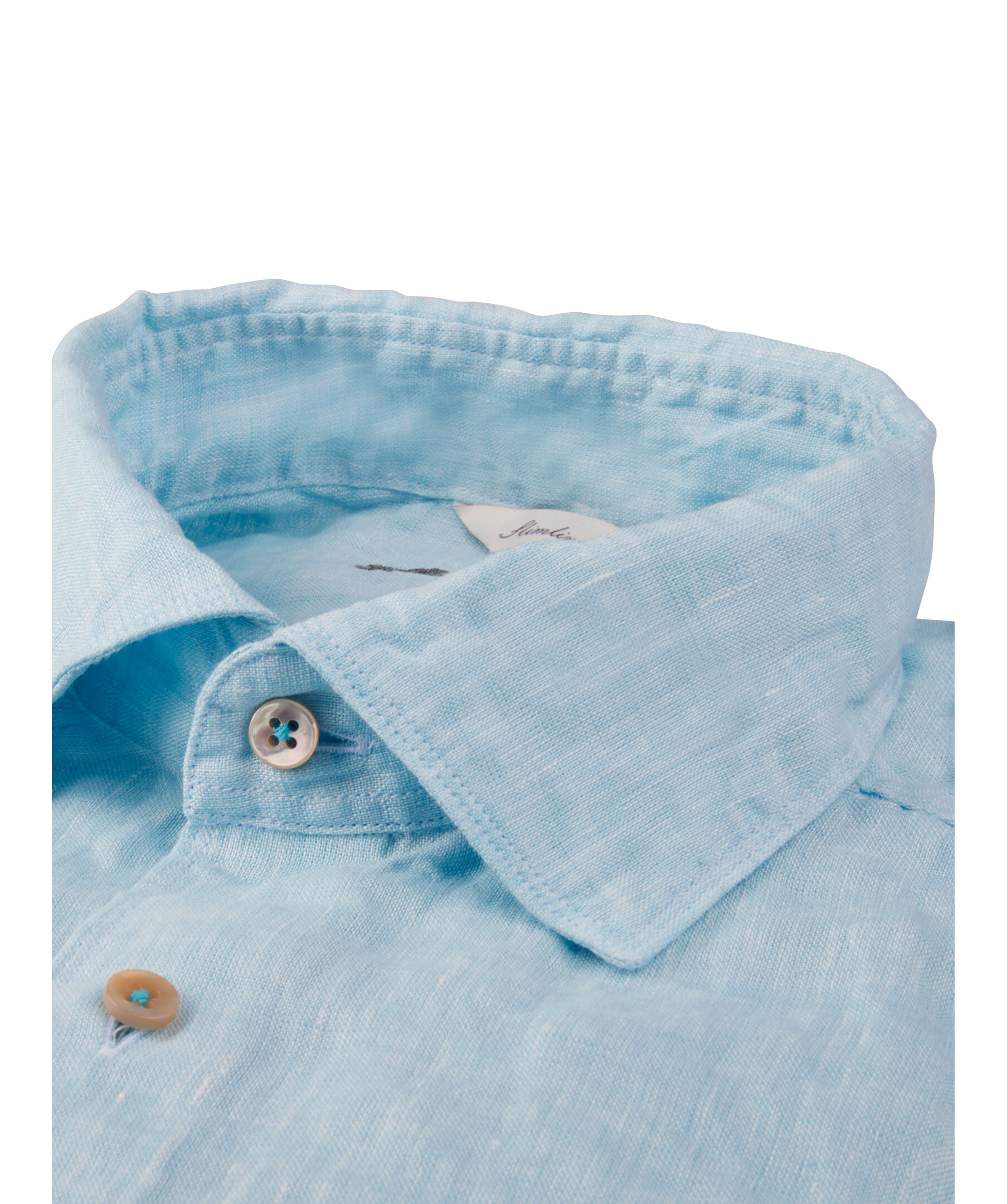 Denna Fitted Body-skjorta är tillverkad av linne och pärlemorknappar, enkla manschetter och en cut away krage.