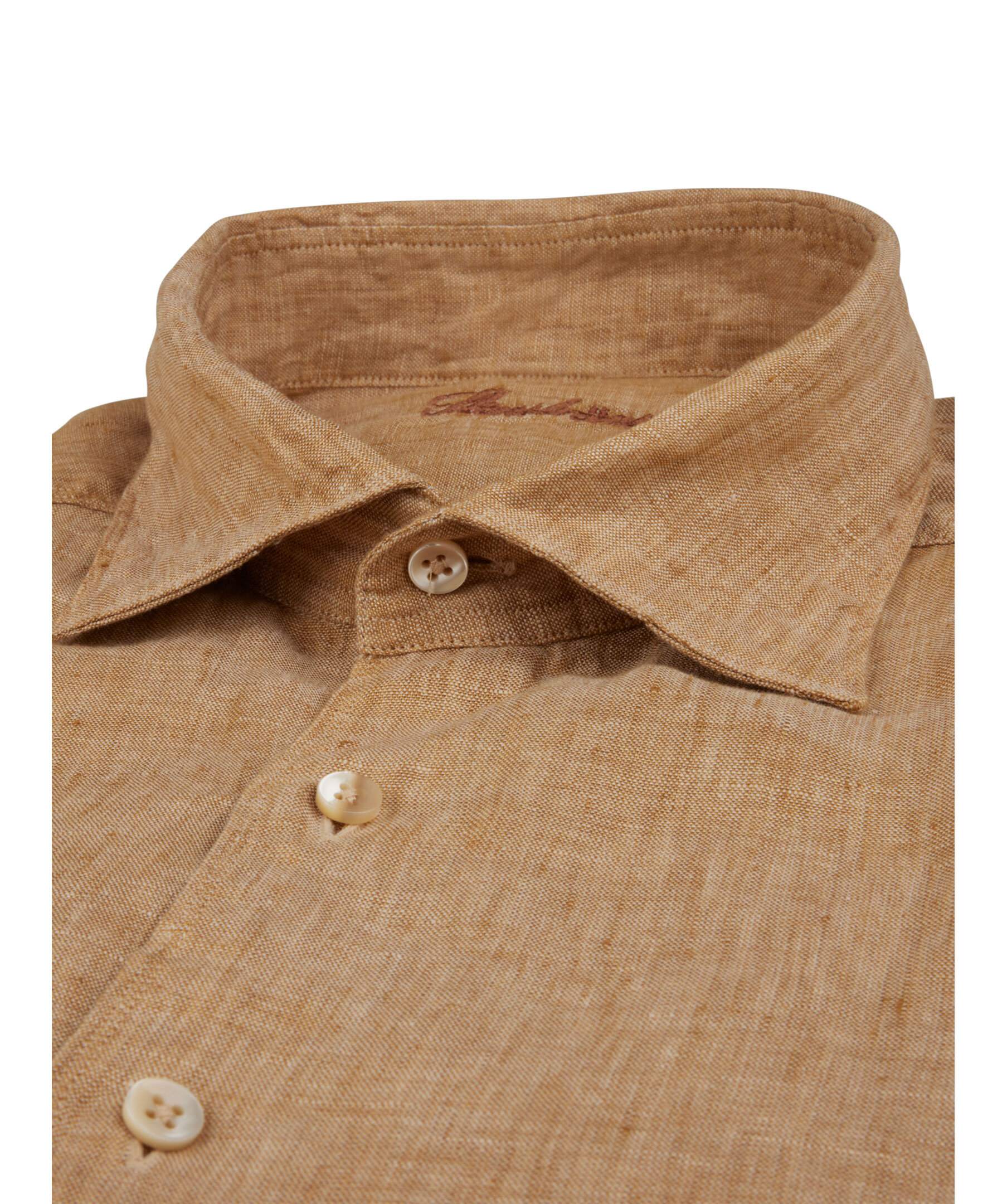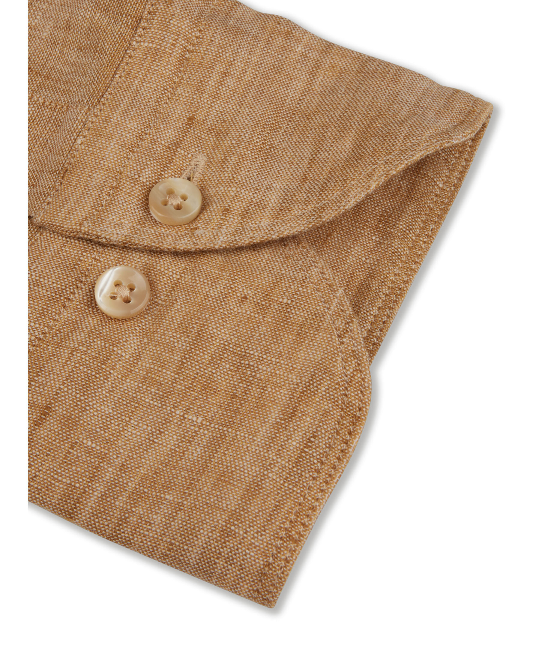 Denna Fitted Body-skjorta är tillverkad av linne och pärlemorknappar, enkla manschetter och en cut away krage.