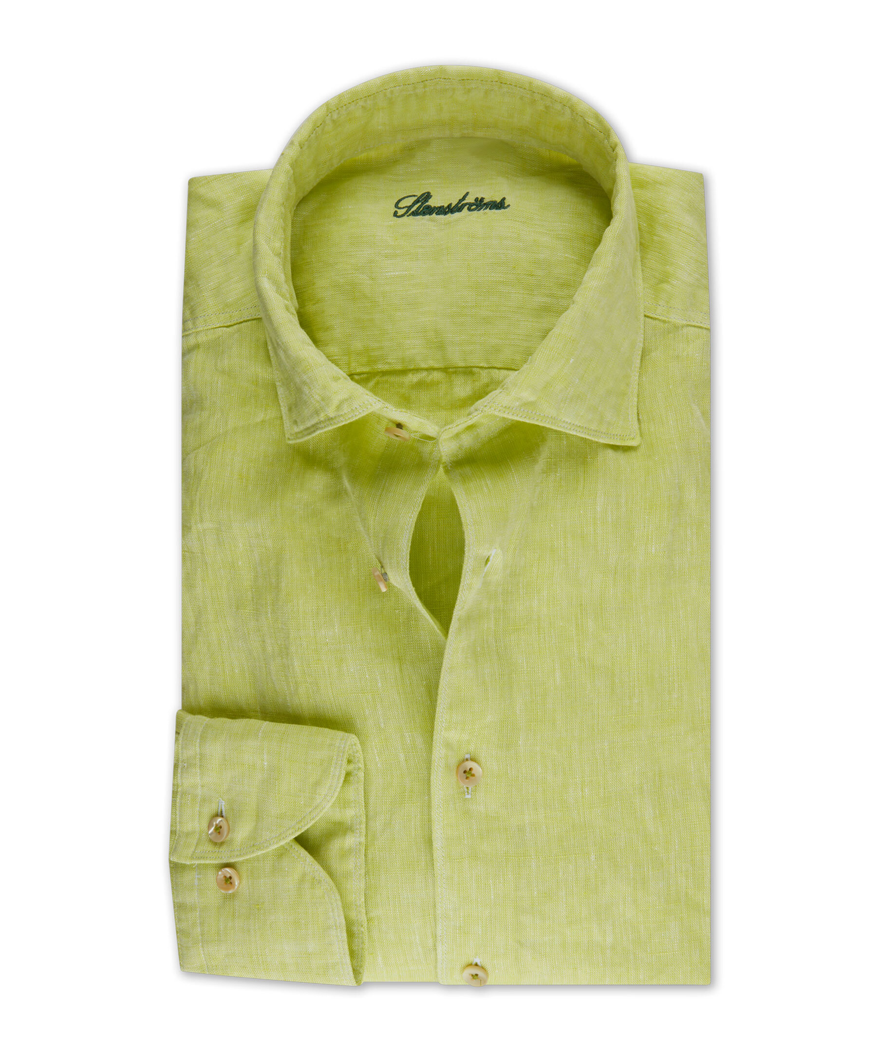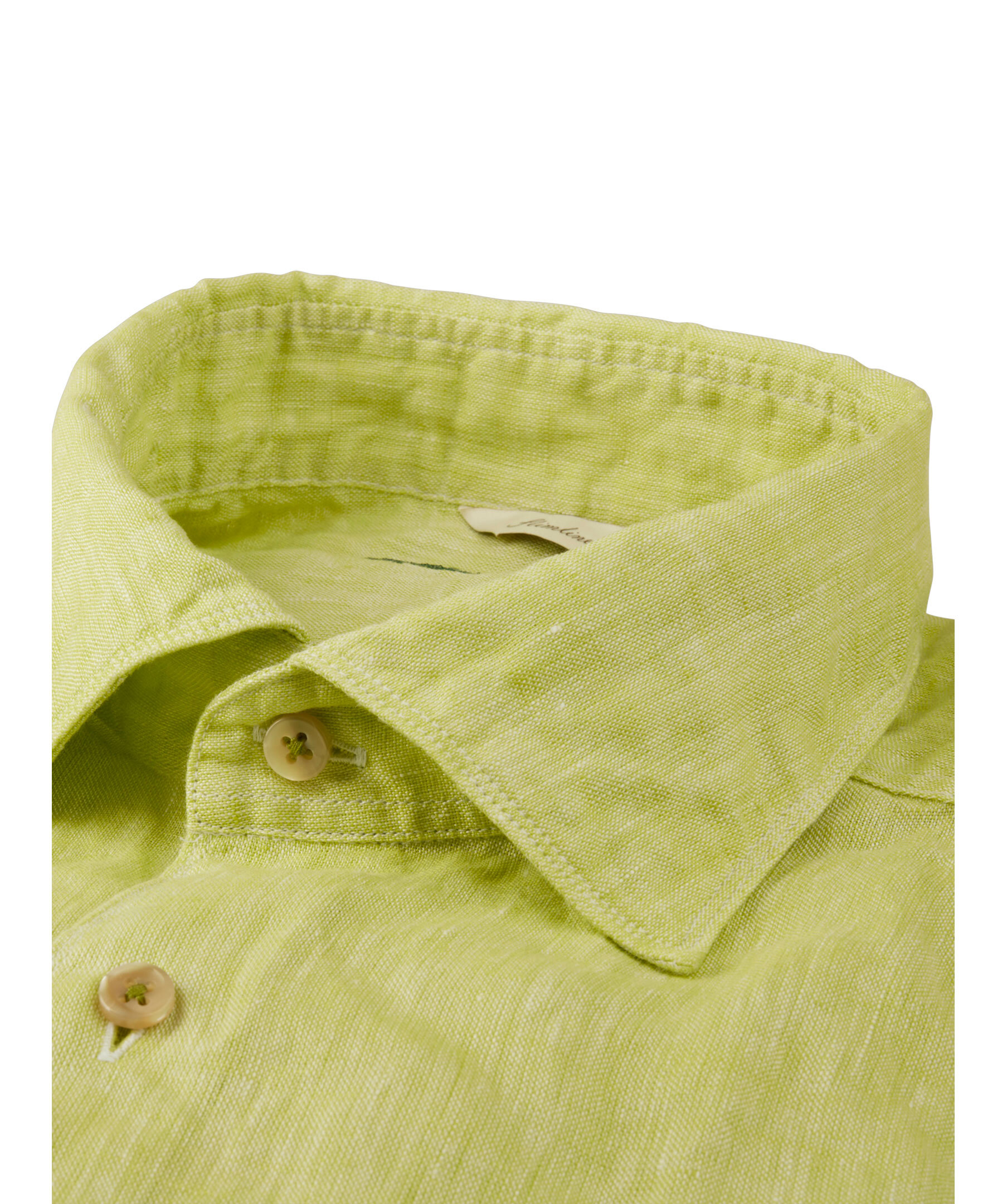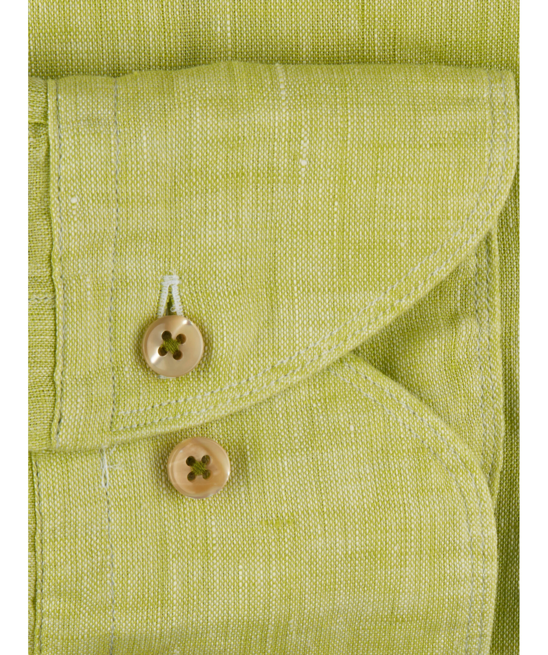 Denna Fitted Body-skjorta är tillverkad av linne och pärlemorknappar, enkla manschetter och en cut away krage.