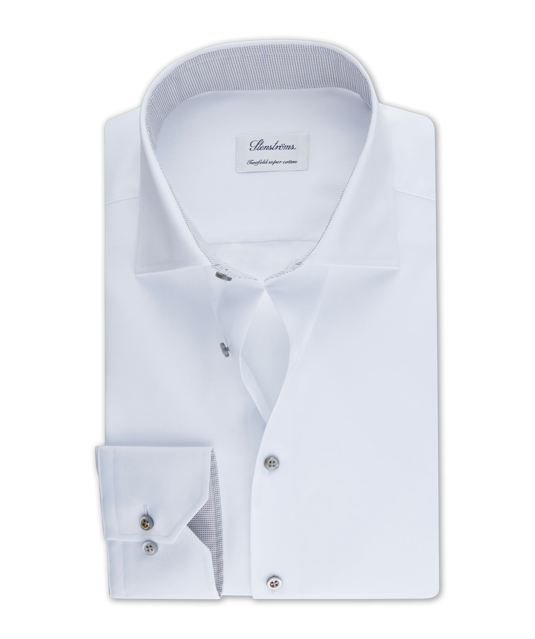 Denna Fitted Body twillskjorta är tillverkad av twofold bomull och har en kontrast i krage och manschett. Skjortan har pärlemorknappar, enkla manschetter och en cut away krage.