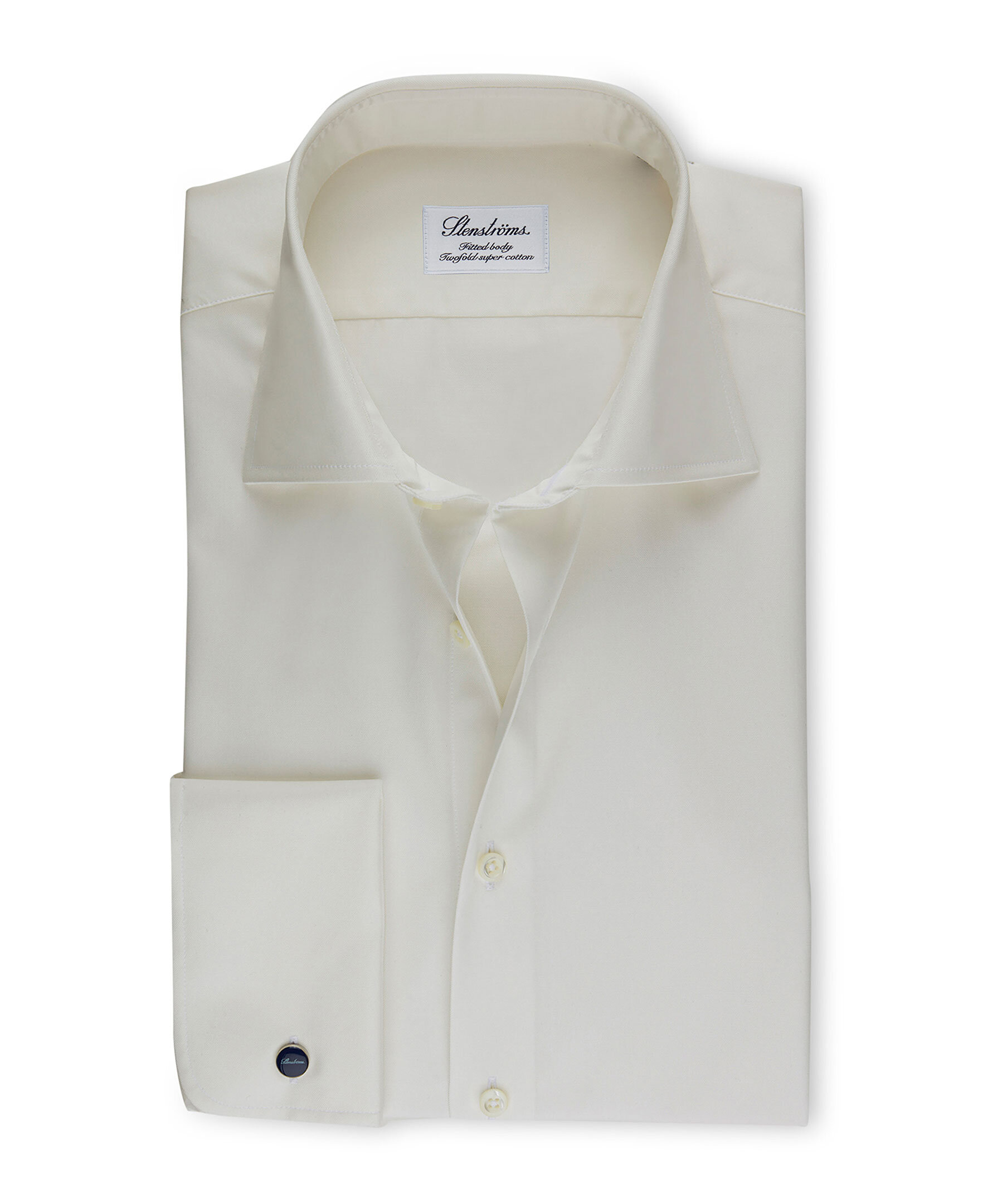 Denna klassiska skjorta från Stenströms kompletterar din garderob. Gjord av krispig twofold-bomull med en något skräddarsydd midja. Denna Fitted body skjorta har dubbla manschetter, pärlemorknappar och en cut away-krage. Vi gillar att matcha skjortan till ett par kostymbyxor.