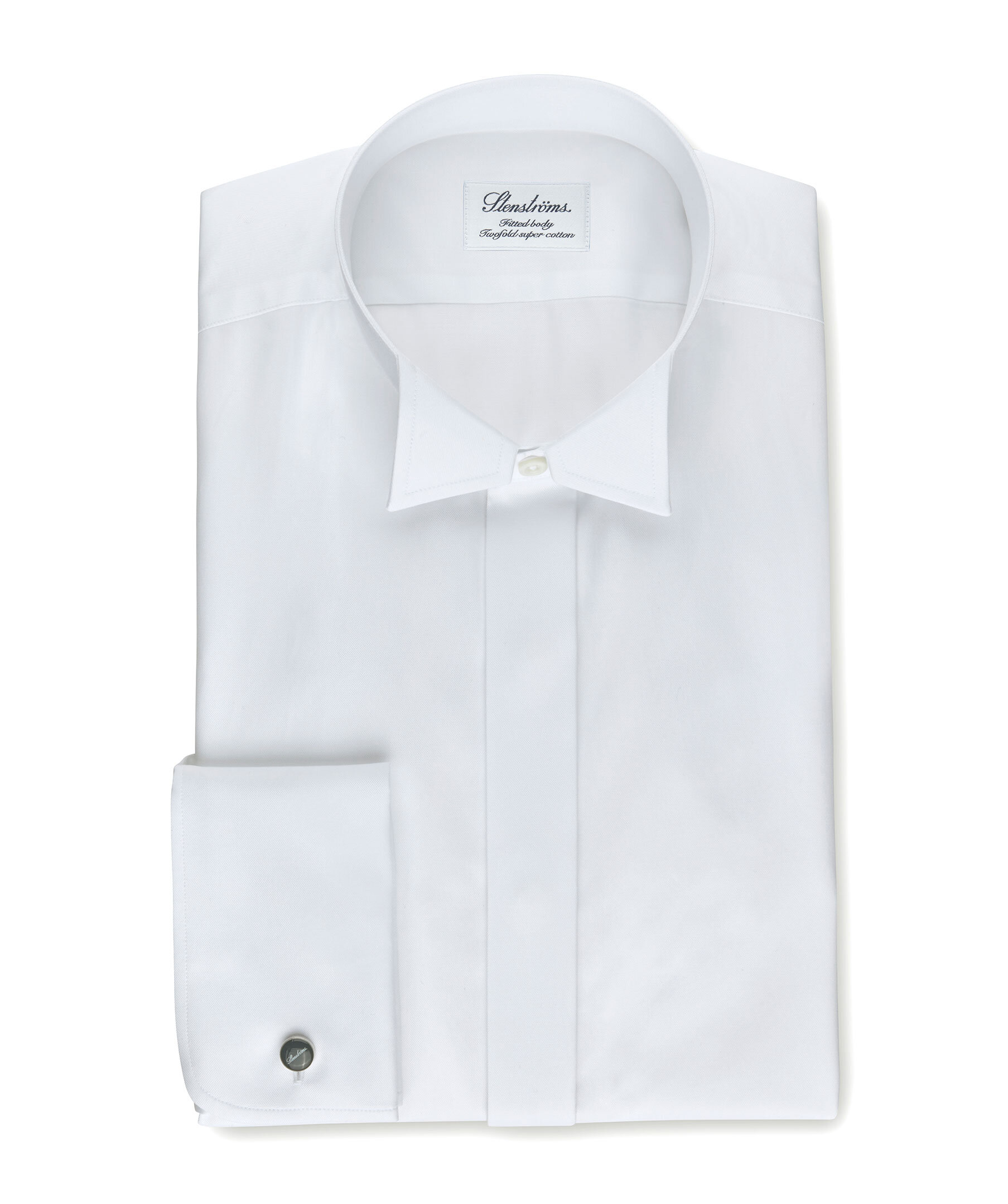 Den här eleganta smokingskjortan från Stenströms är skuren från Superior twill och designad för stil och komfort för en något skräddarsydd passform. Den är detaljerad med dold knappslå, dubbla manschetter och Pärlemorknappar.