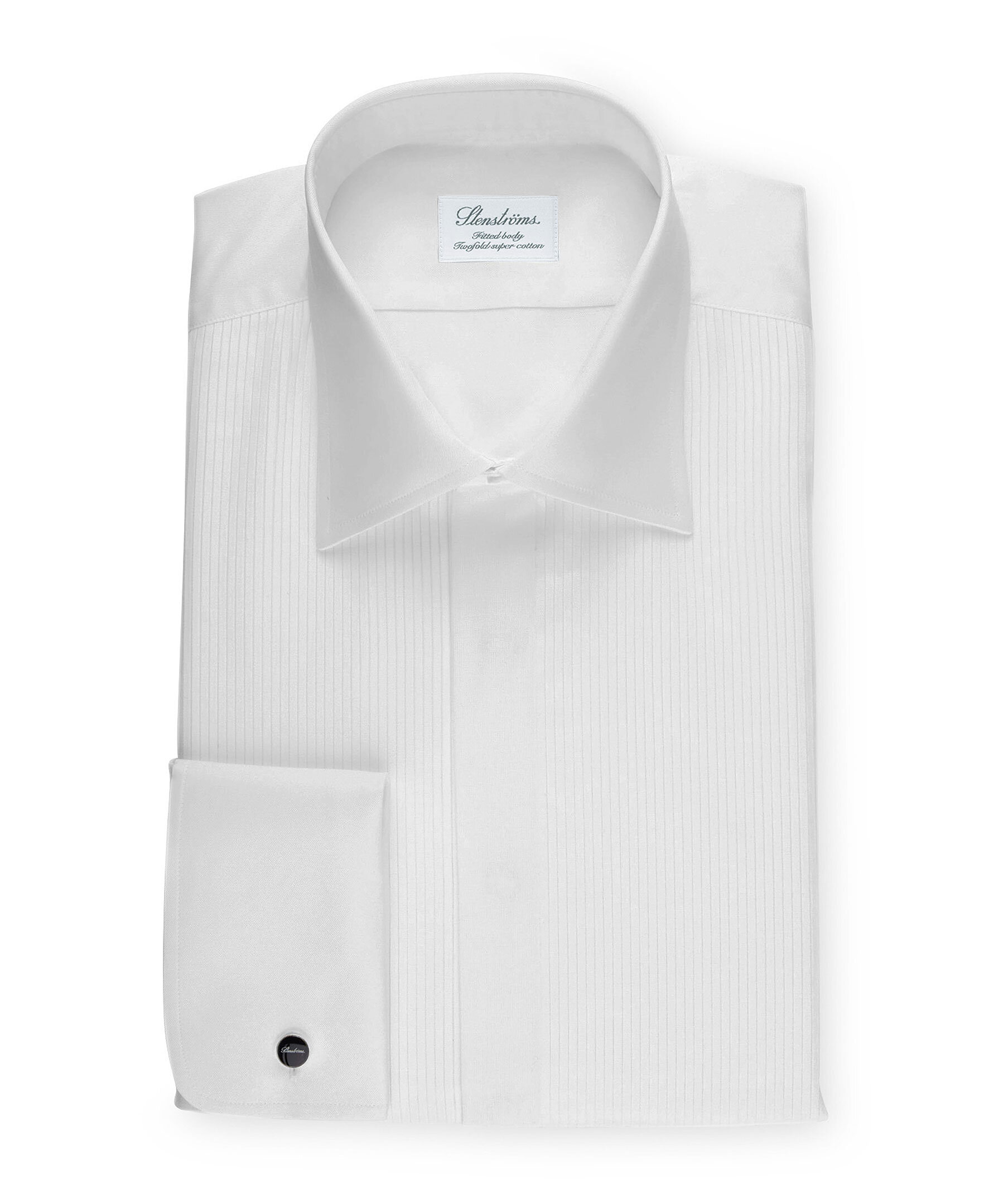 Denna eleganta aftonskjorta från Stenströms är gjord från fint twill med en veckad front, och skjortan är en fitted body med en något skräddarsydd midja. Den är detaljerad med dubbla manschetter och en klassisk wing krage.