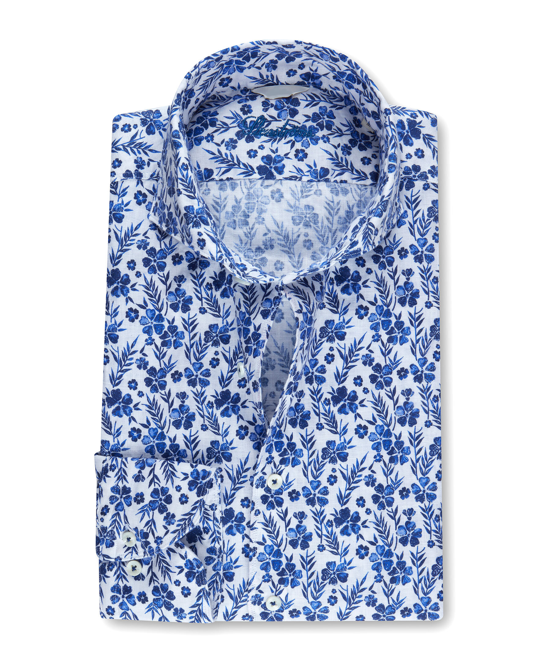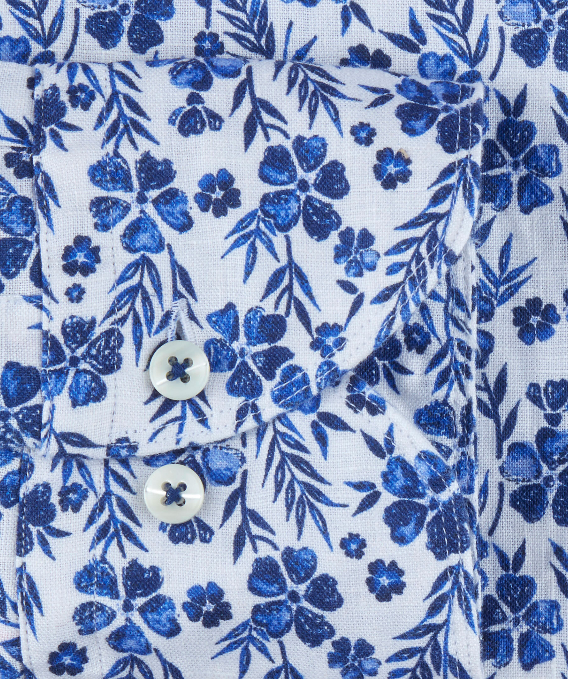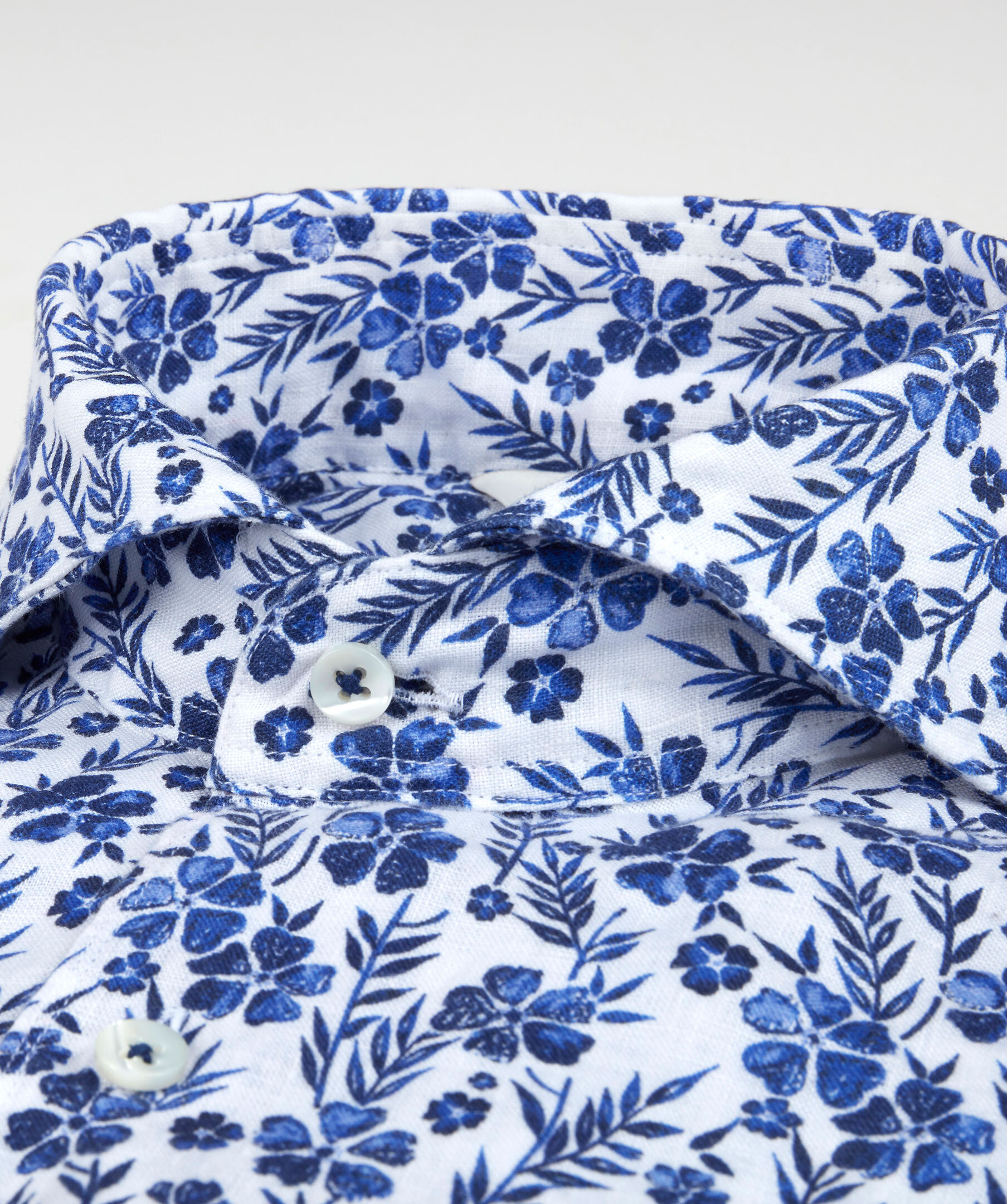 Den här ikoniska linneskjortan i modell Fitted Body är skuren för en något skräddarsydd midja och bekväm passform och detaljerad med ett mönster i blått och vitt. Den har vita pärlemorknappar, en cutaway krage och enkla justerbara manschetter. Det här är utan tvekan sommarens skjorta. Bär till vita jeans eller shorts för en avslappnad somrig look.