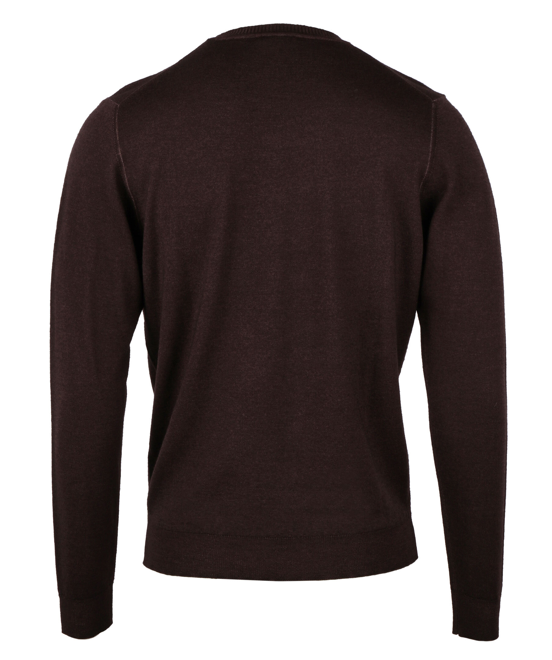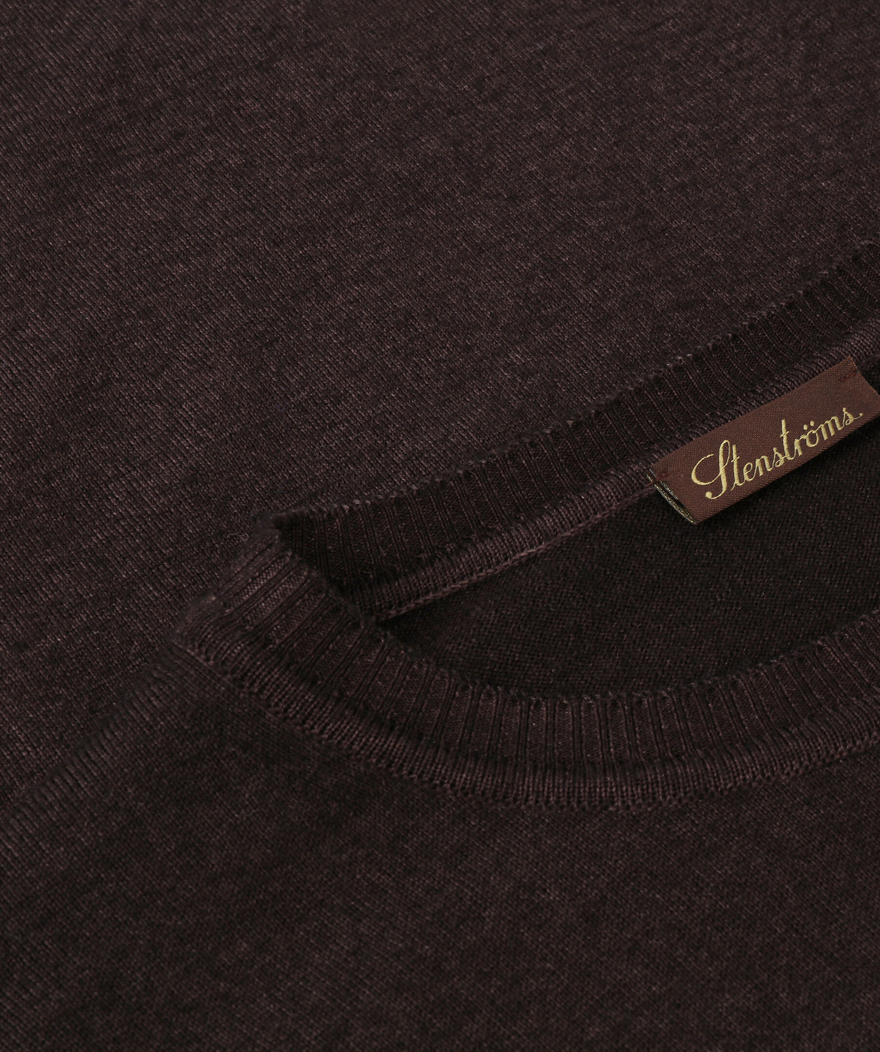 Brun finstickad pullover från Stenströms. Tröjan är gjord i 100% merinoull. Ribbstickade muddar vid krage, ärm- och plaggslut.