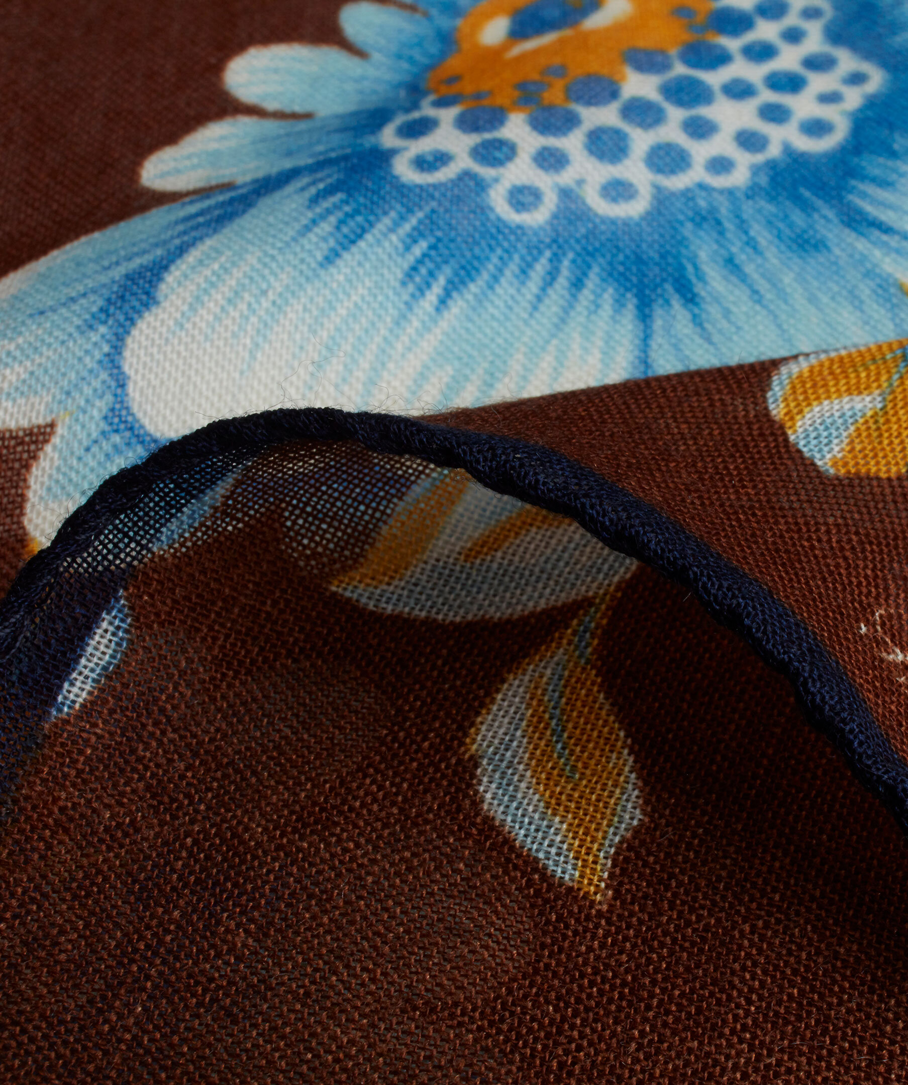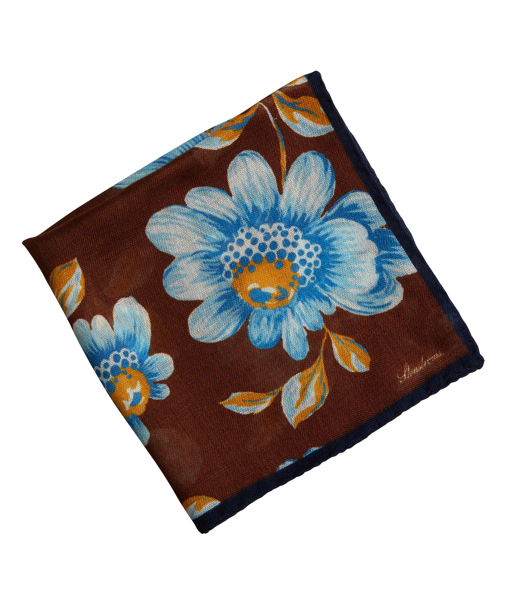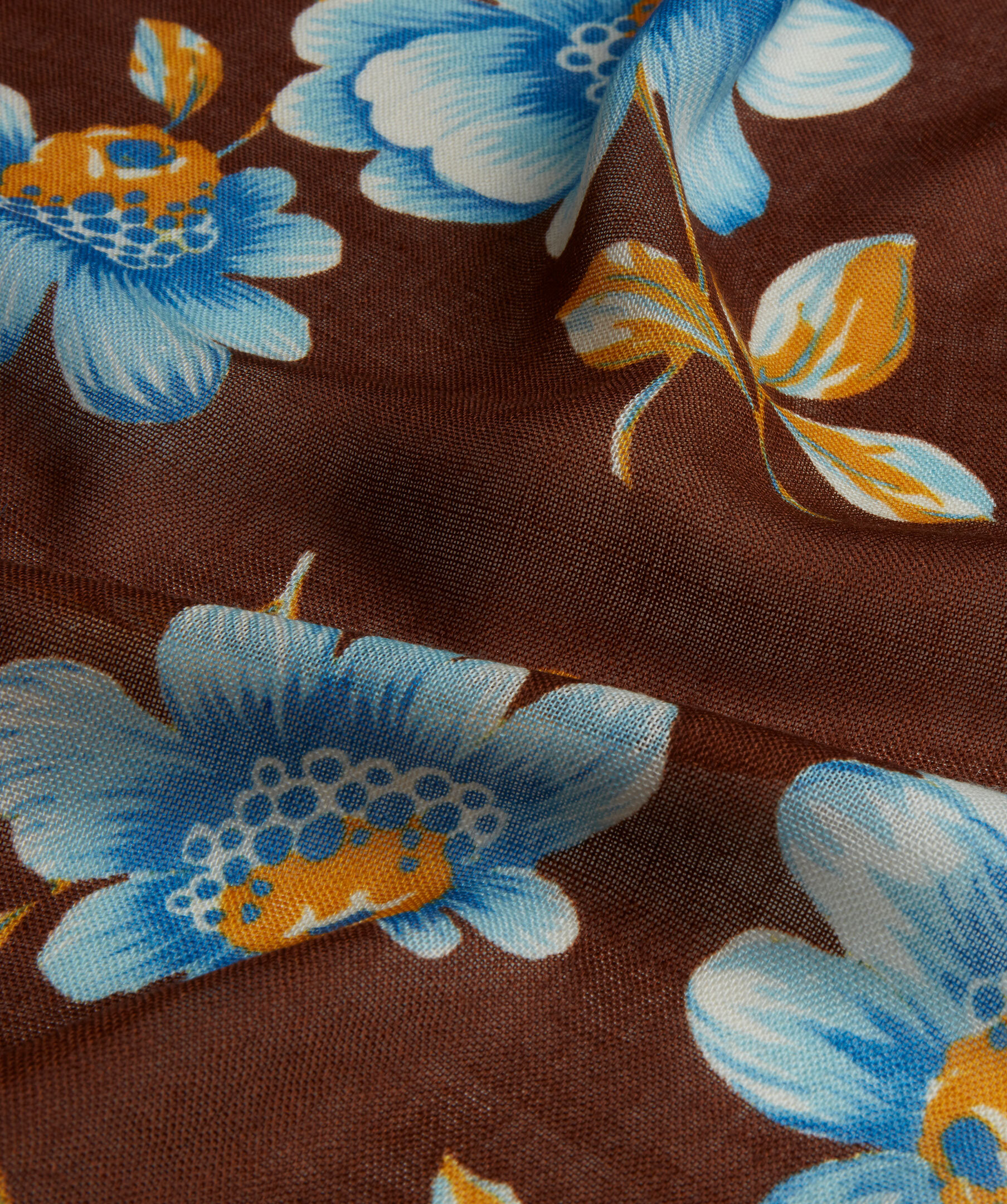 Brun mönstrad näsduk från Stenströms. Tillverkad i ull och siden. Blommigt motiv.