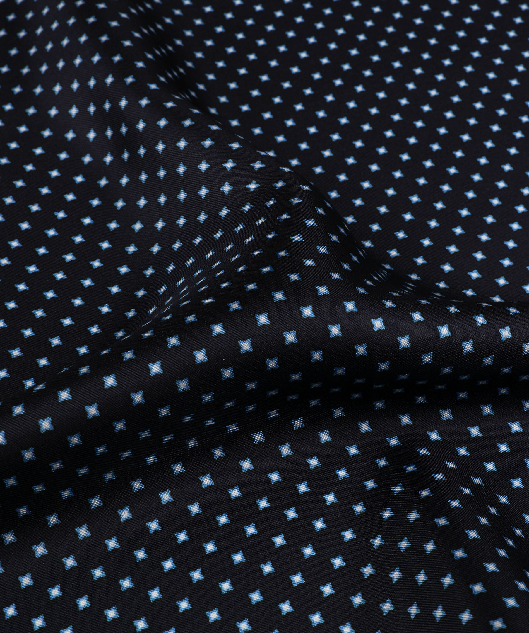 Den här näsduken från Stenströms har ett grafiskt blommönster med små former som ger en diskret detalj och adderar mönster i din stil. Den är tillverkad i Italien i lyxigt siden som matchar fint med en mörk kostym, men även med klassiska färger som brunt eller grått. Matcha med en marinblå kostym eller en udda blazer för en avslappnad men elegant look.
