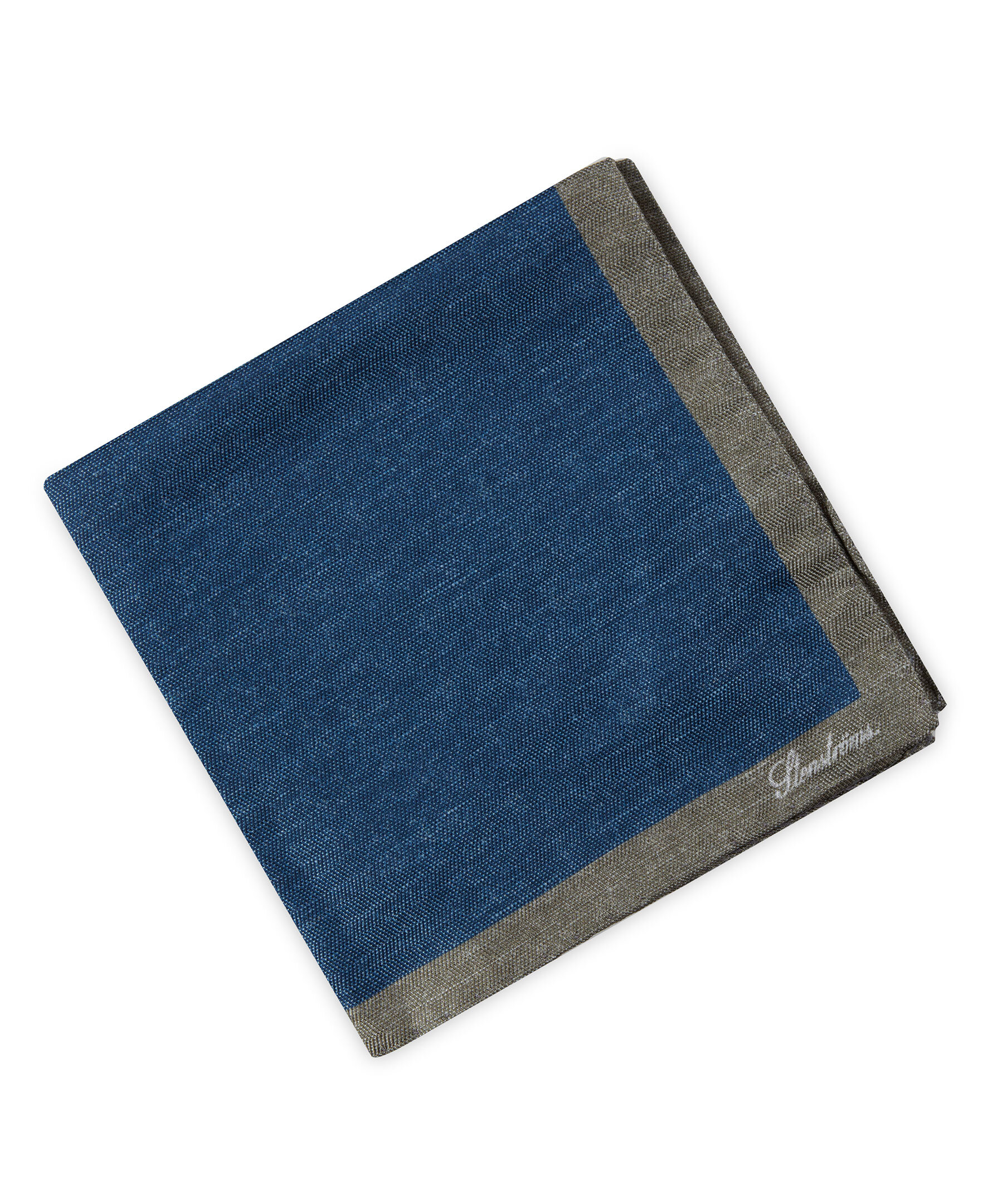 Beige näsduk tillverkad i siden och bomull. Näsduken är detaljerad med en grå ram.