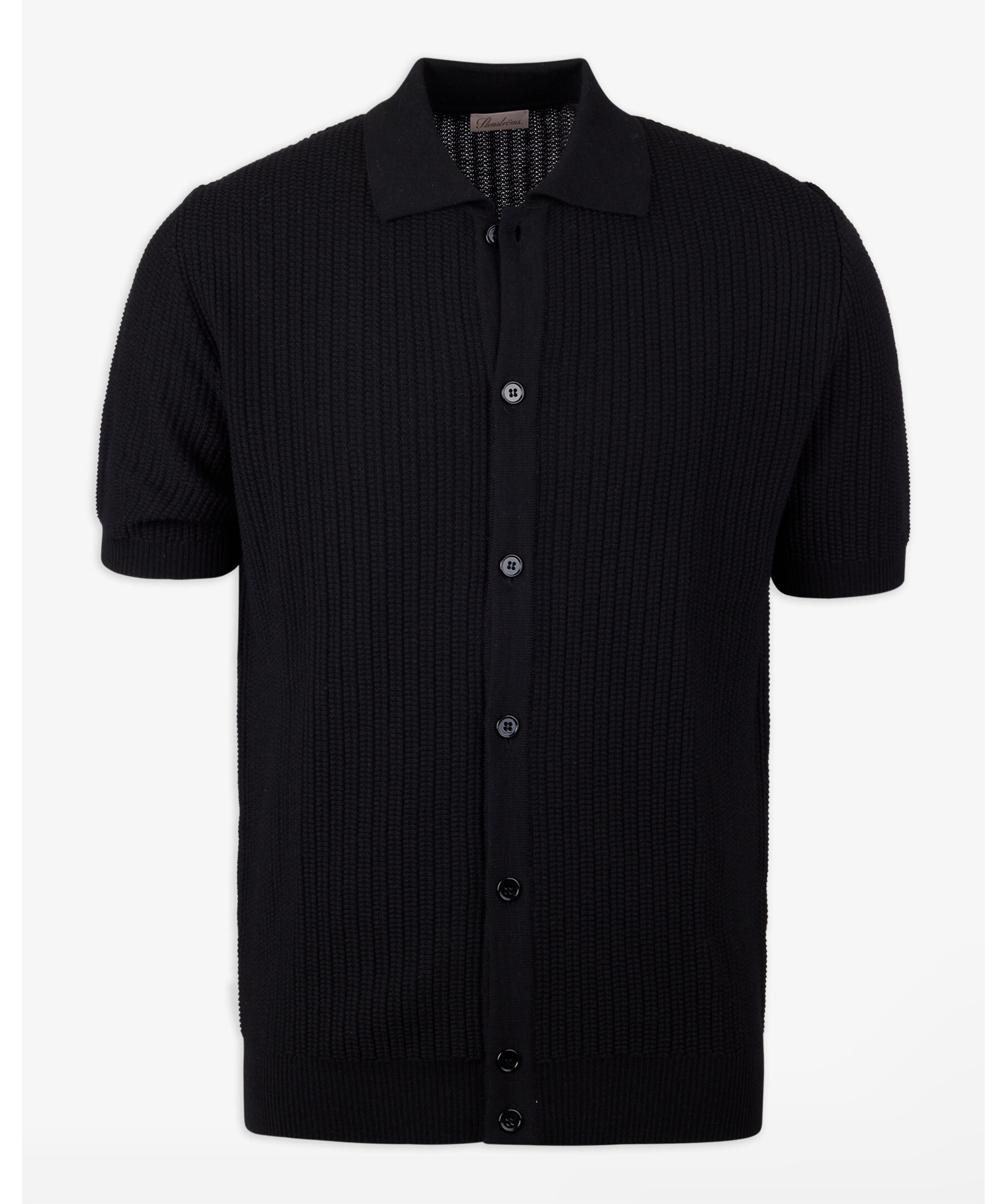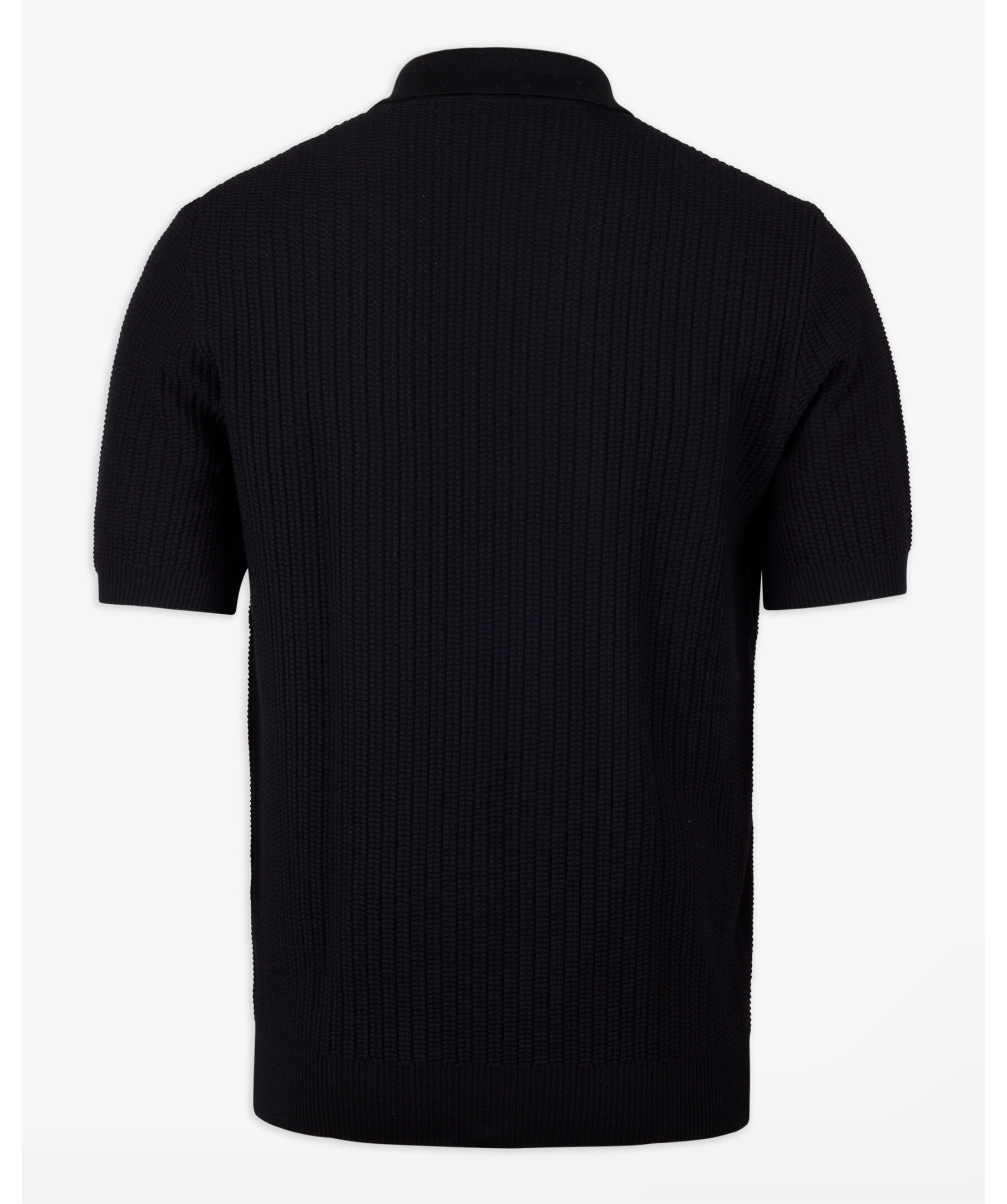Svart stickad piké från Stenströms tillverkad av merinoull. Tröjan har korta ärmar och ribbstickade detaljer vid ärm- och plaggslut.