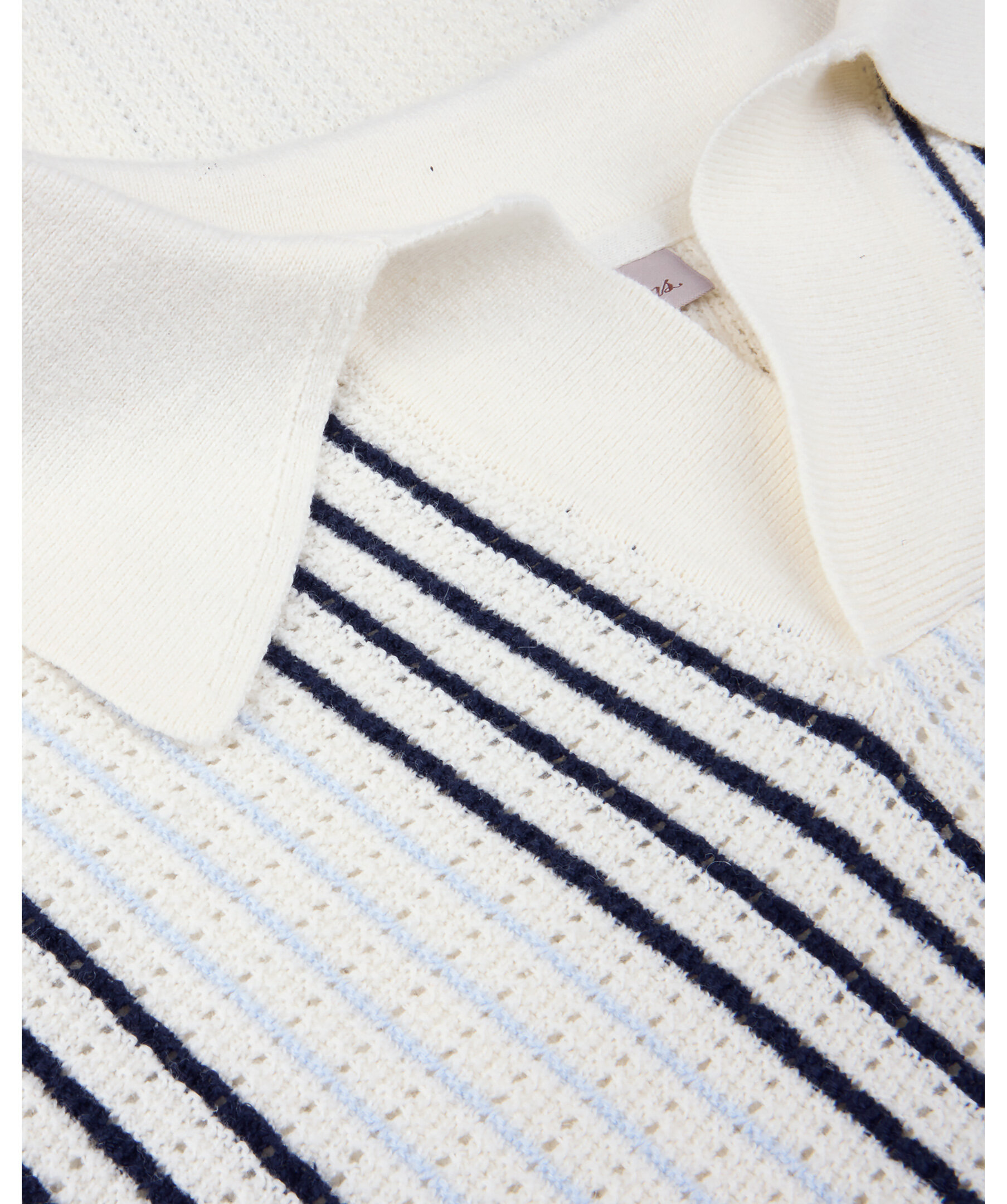 Randiga pikétröja med struktur tillverkad av linne och bomull och har korta ärmar och ribbstickade detaljer.