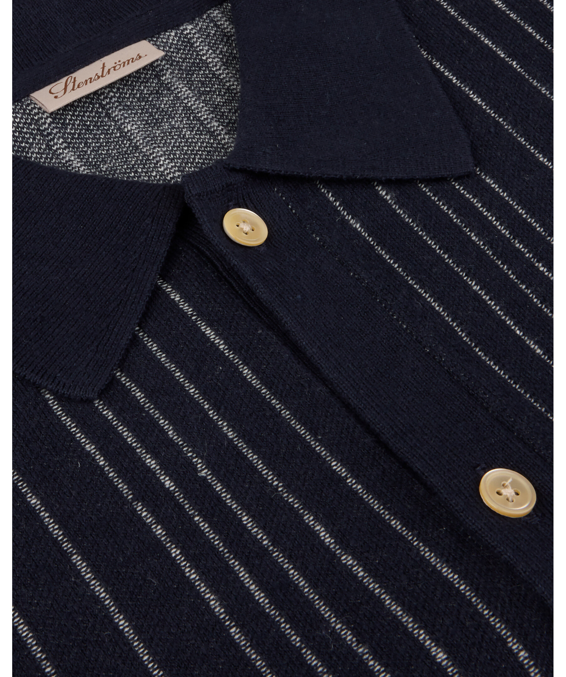 Stenströms Knitted Striped Polo - Navy