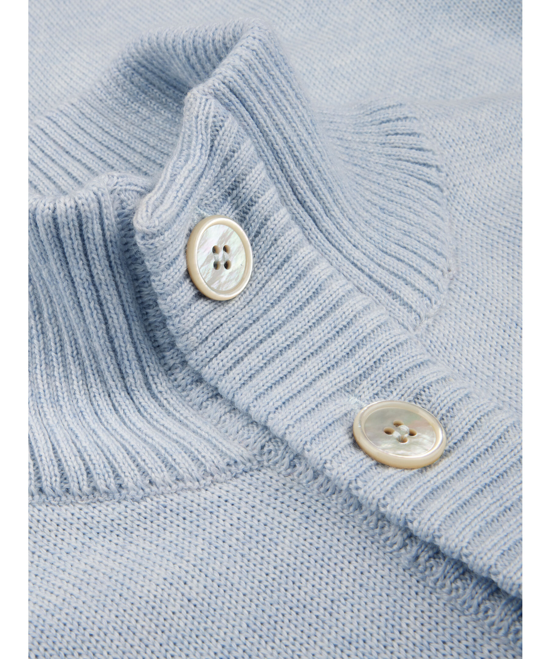 Denna cardigan är tillverkad av merinoull och har pärlemorknappar och ribstickade detaljer vid krage, ärm- och plaggslut.