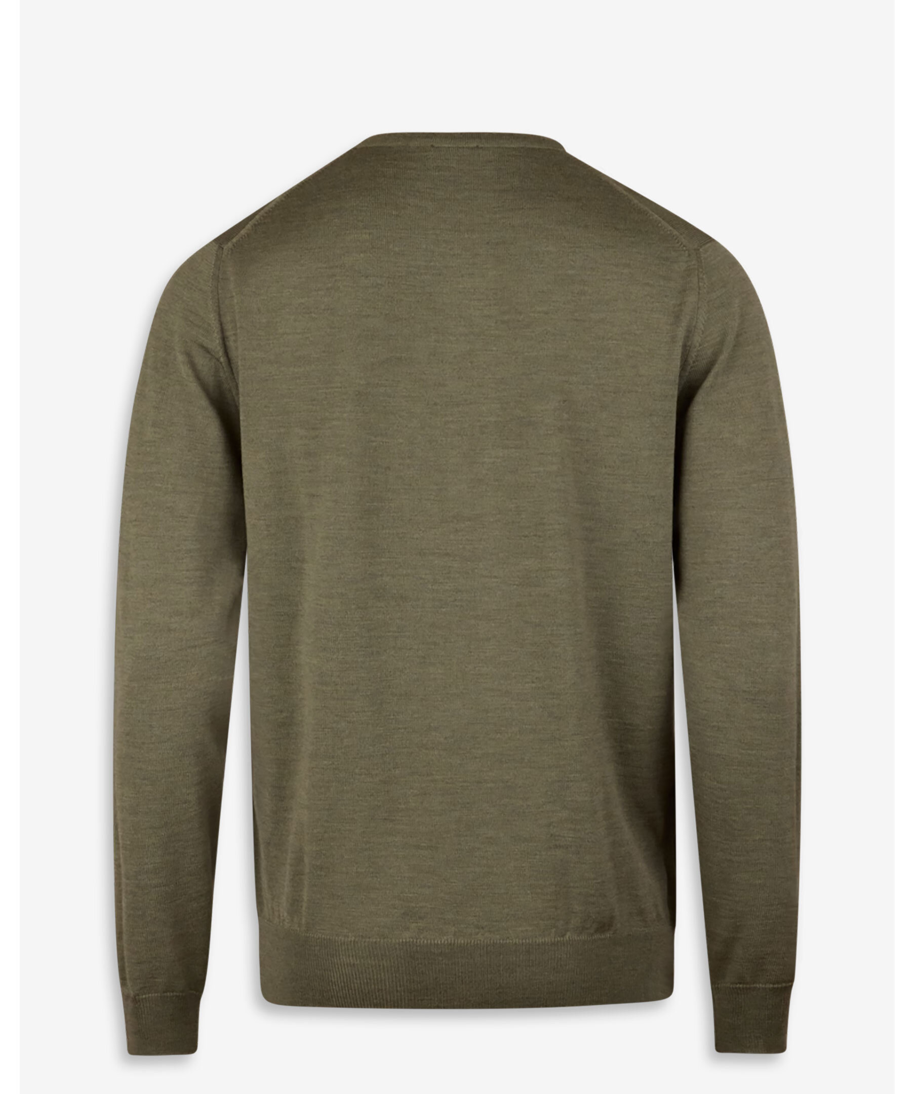 Grön rundhalsad merinoulltröja från Stenströms. Tröjan har en klassisk rund halsringning och lång ärm. Stickad i 100 % merinoull, med ribbstickade avslut vid hals, ärmslut och nederkant för en fin finish. En mångsidig tröja som fungerar lika bra över skjorta som för sig själv under svalare dagar.