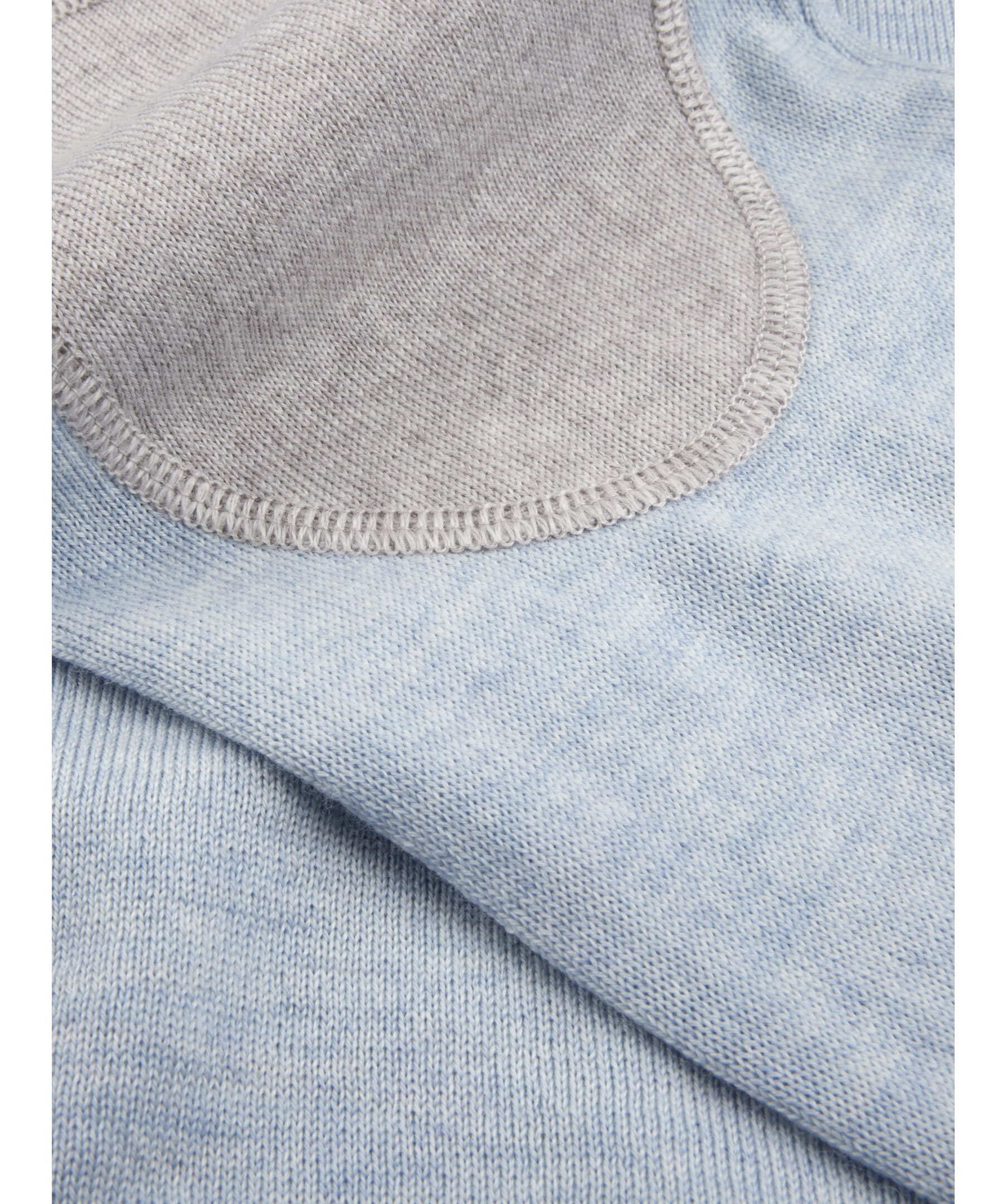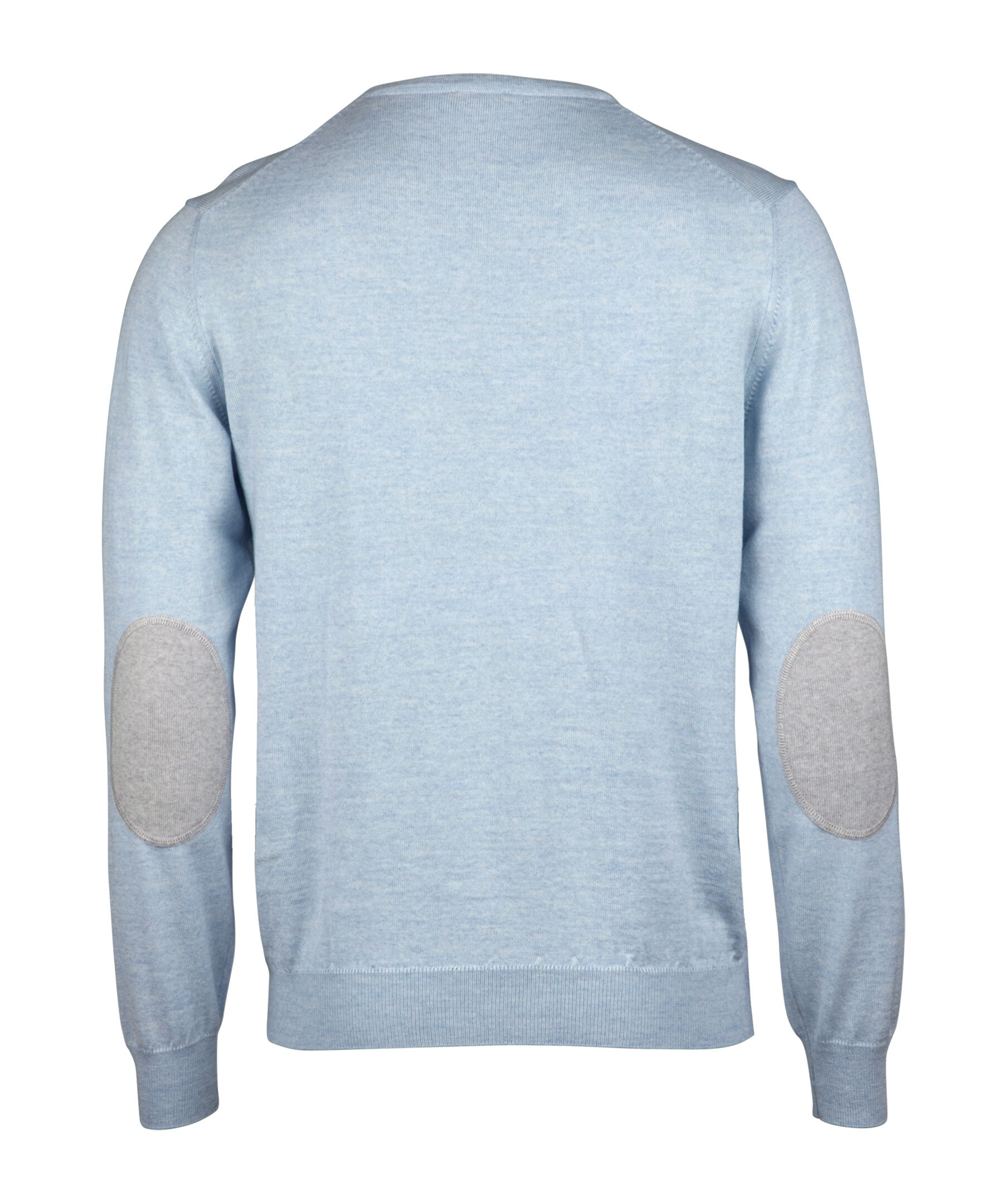 Denna rundhalsade tröja är tillverkad av merinoull och har armbågspatches och ribbstickade detaljer vid krage, ärm- och plaggslut.