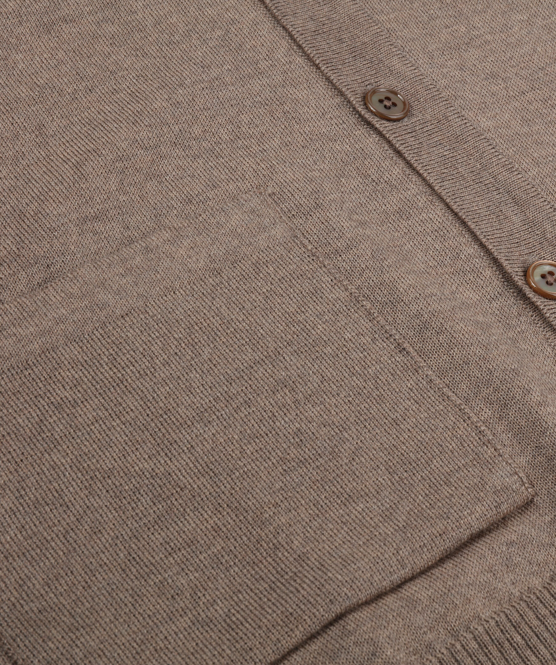 En kofta i merinoull är ett klassiskt plagg att komplettera garderoben med. Den här stickade koftan har vi valt att göra i en mjuk och värmade Merinoull. Den är detaljerad med matchande knappar i pärlemor, utanpåliggande fickor framtill och en krage. Perfekt för dagar då du vill hålla värmen, men fortfarande vara välklädd. Bär den över en skjorta eller t-shirt för en avslappnad men dressad stil.