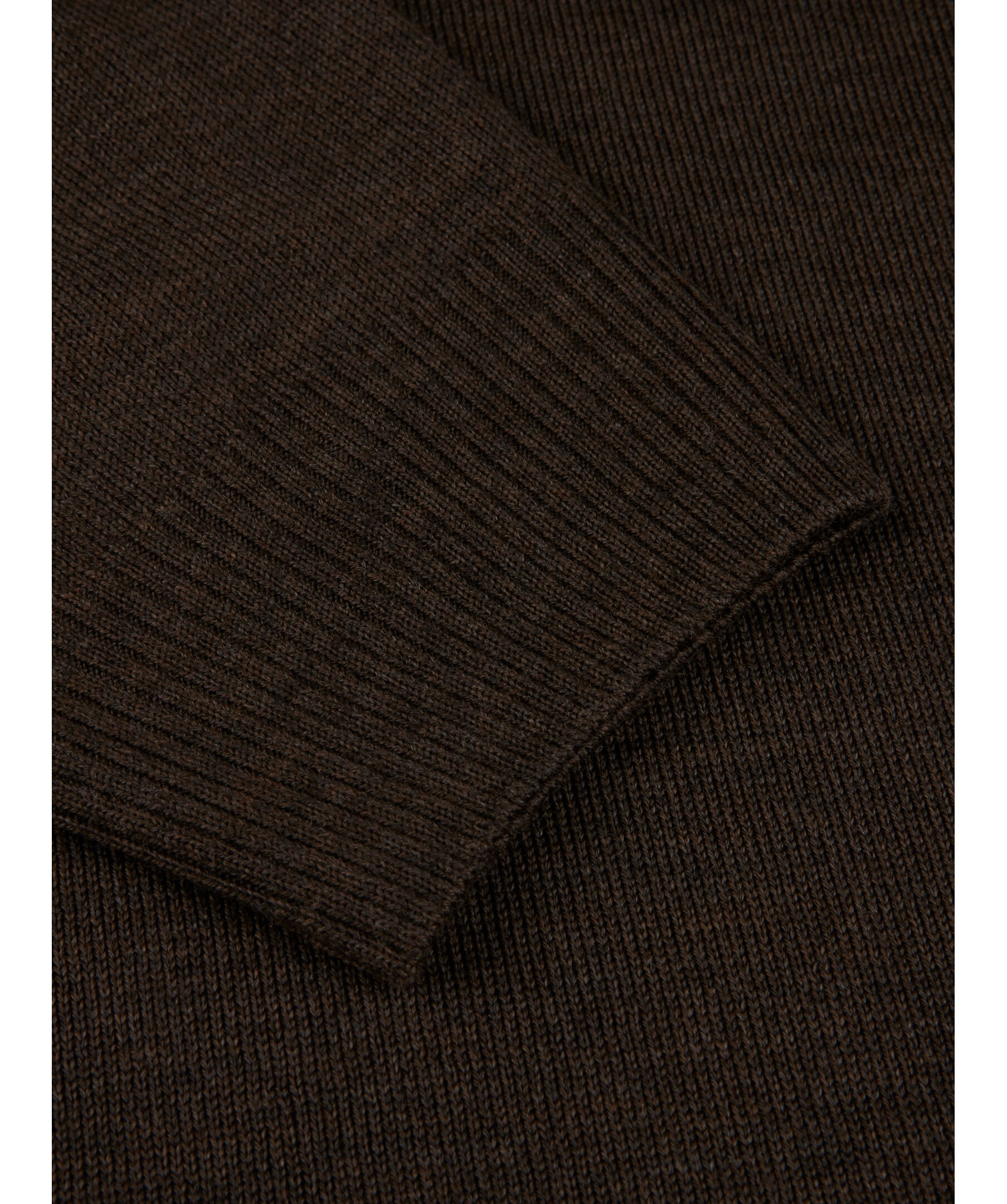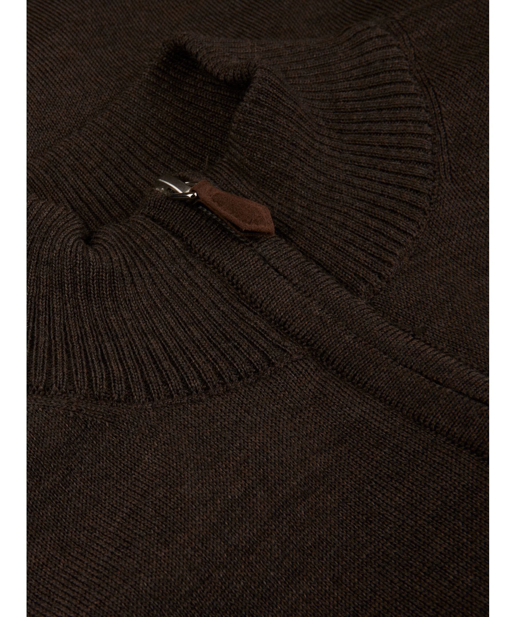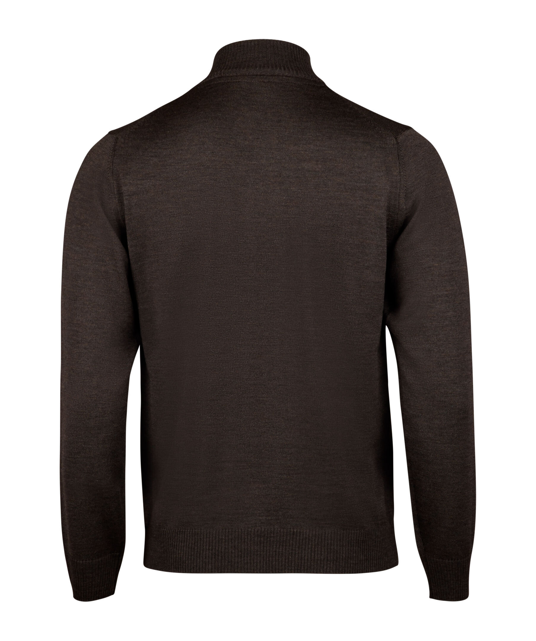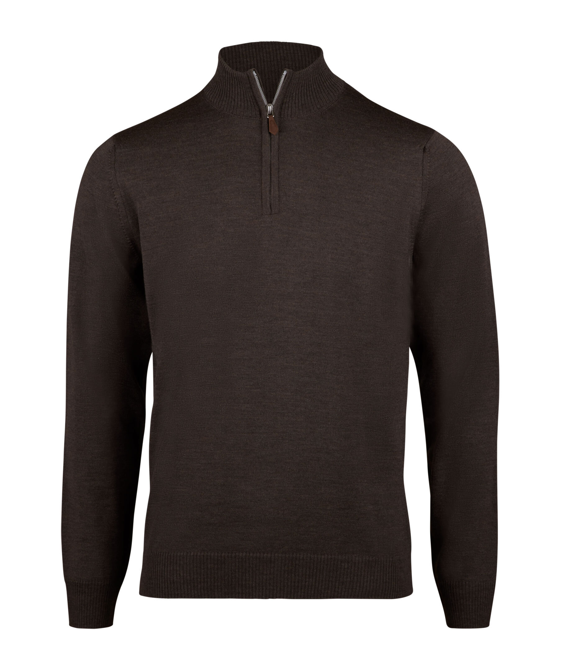 Denna half zip tröja är tillverkad av merinoull och har ribbstickade detaljer vid krage, ärm- och plaggslut.