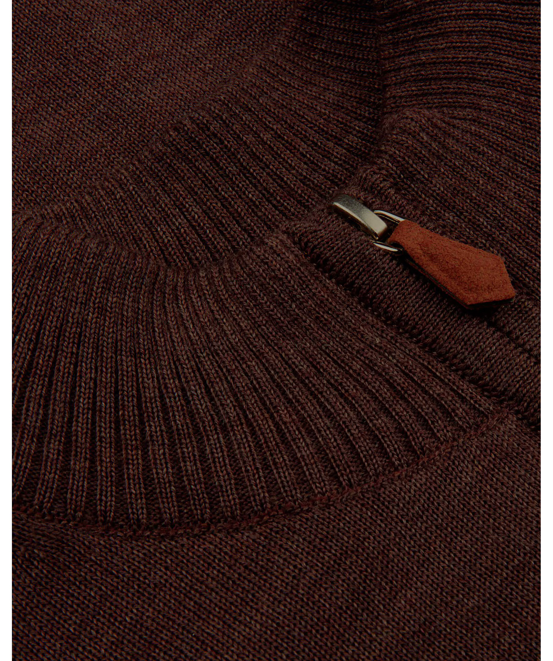Klassisk stickad tröja i merinoull från Stenströms. Tröjan stängs med en halv dragkedja framtill, kragen är ribbstickad och värmer runt halsen.