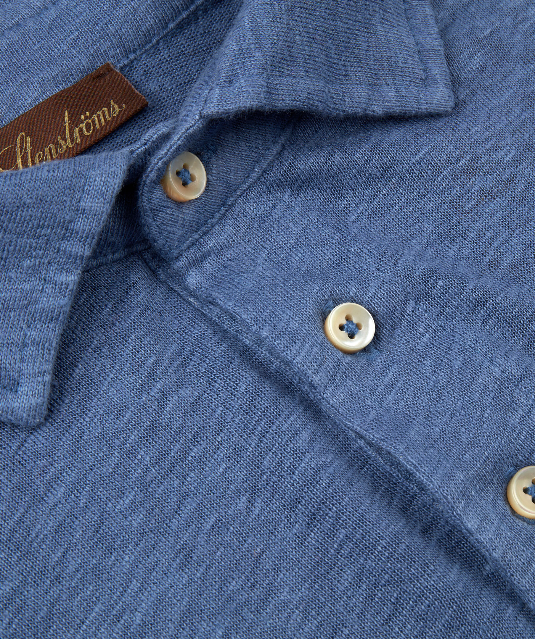 En klassisk kortärmad piké är ett nyckelplagg i var mans garderob. Den här tröjan är gjord i 100% linne jersey och har en lätt och andningsbar känsla, perfekt för varma dagar. Den har en knäppning med tre knappar i beige pärlemor. Den här pikén är perfekt för helgens utflykter. Bär den till chinos i en basfärg som ljusbeige.