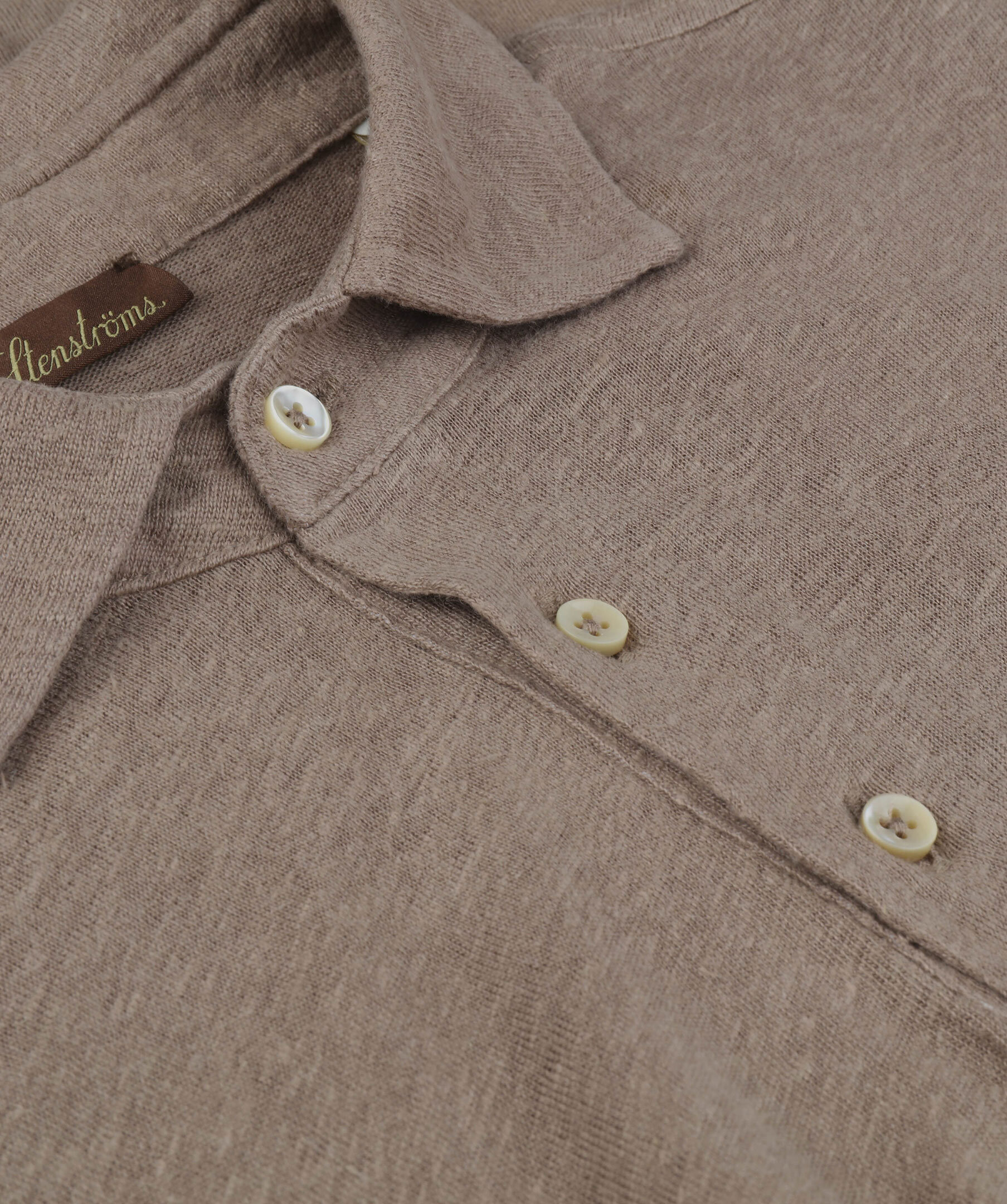 En klassisk kortärmad piké är ett nyckelplagg i var mans garderob. Den här tröjan är gjord i 100% linne jersey och har en lätt och andningsbar känsla, perfekt för varma dagar. Den har en knäppning med tre knappar i beige pärlemor. Den här pikén är perfekt för helgens utflyker. Bär den till chinos i en basfärg som ljusbeige.
