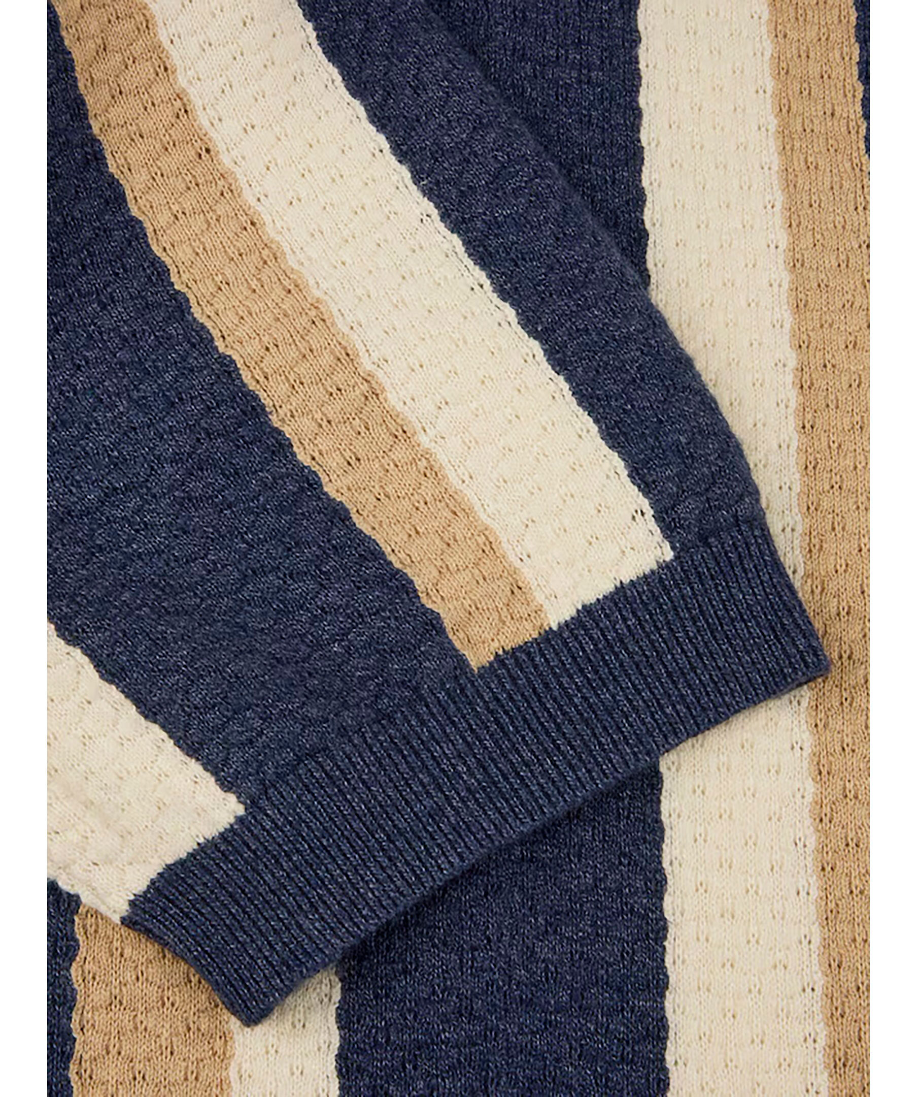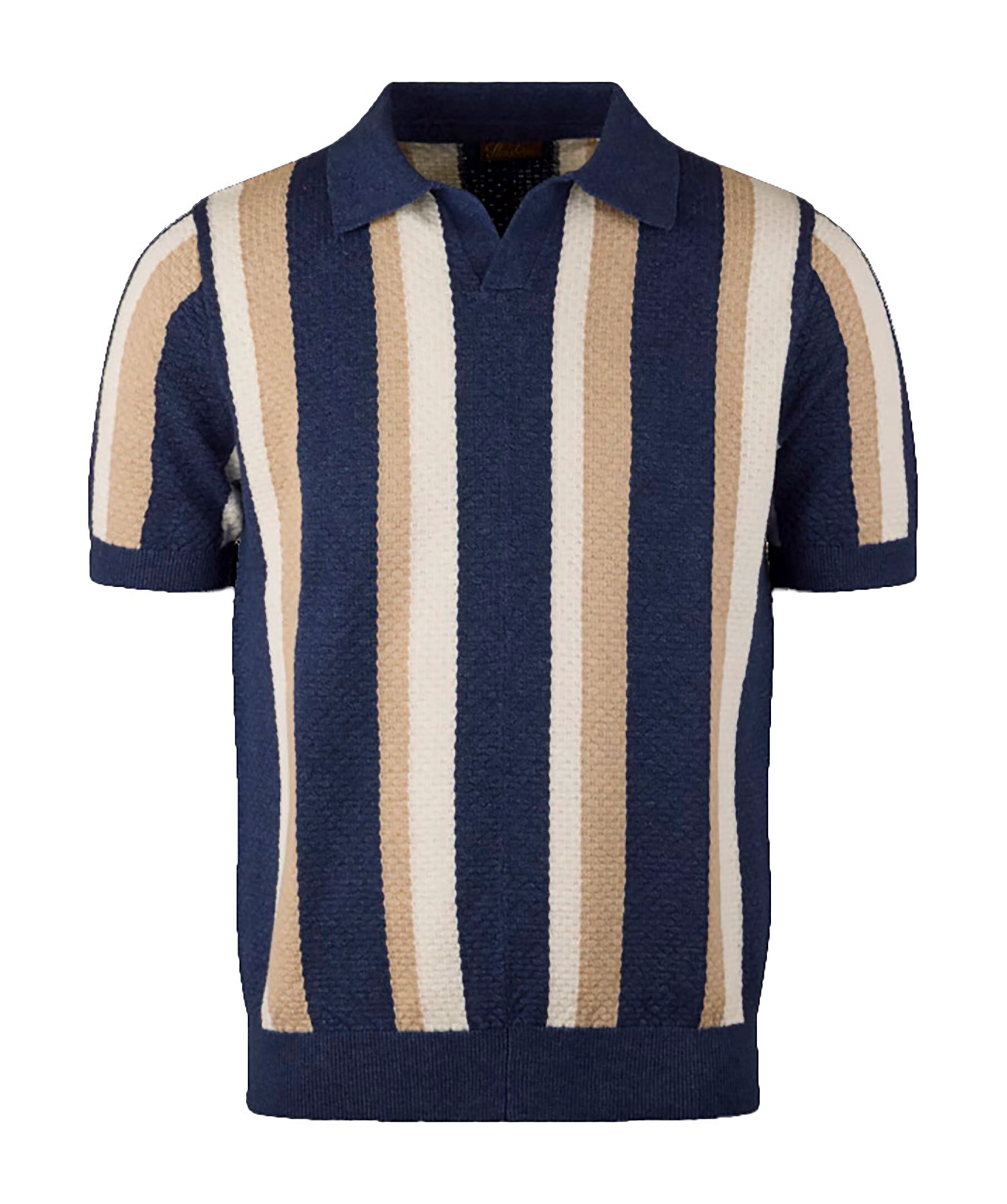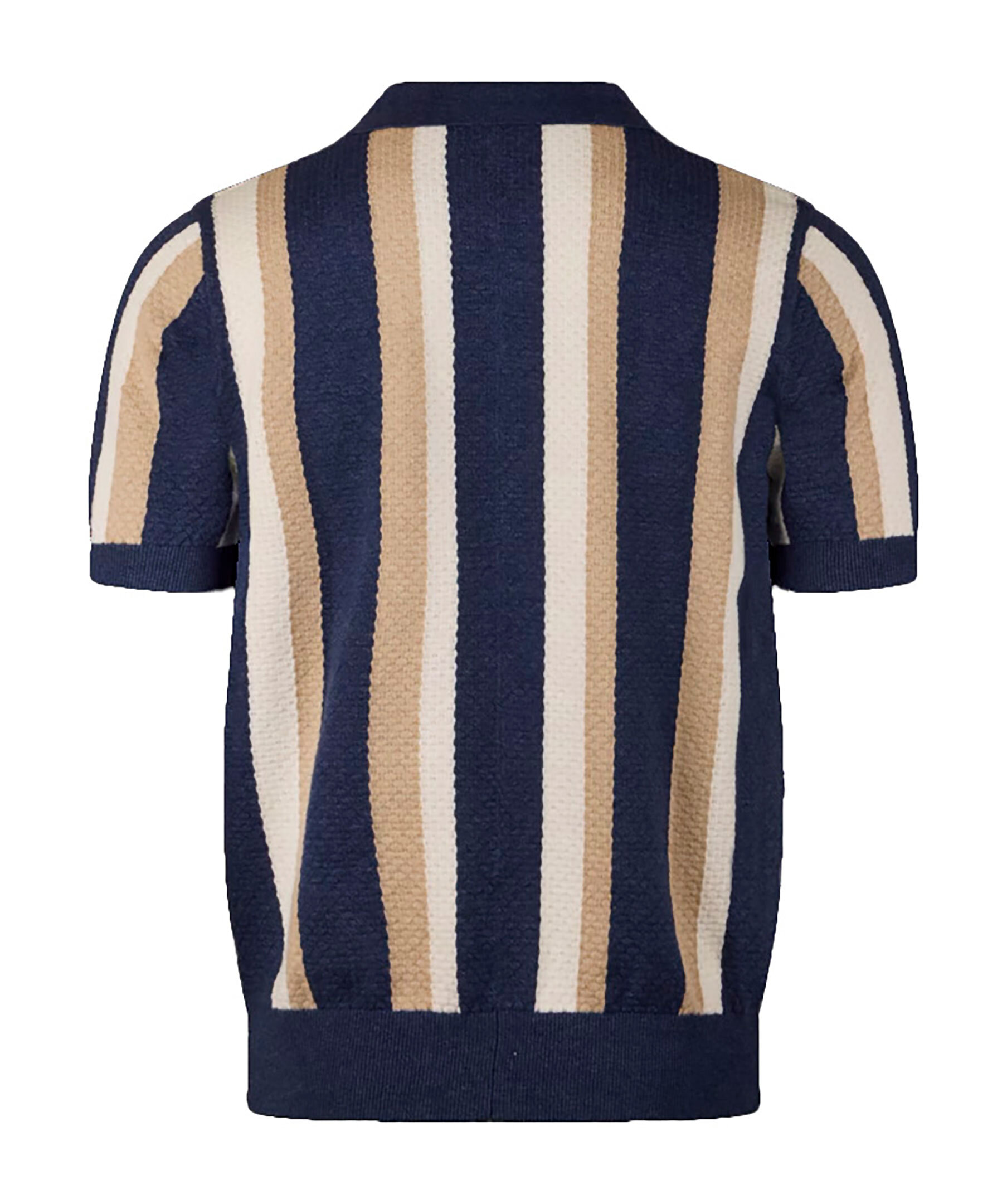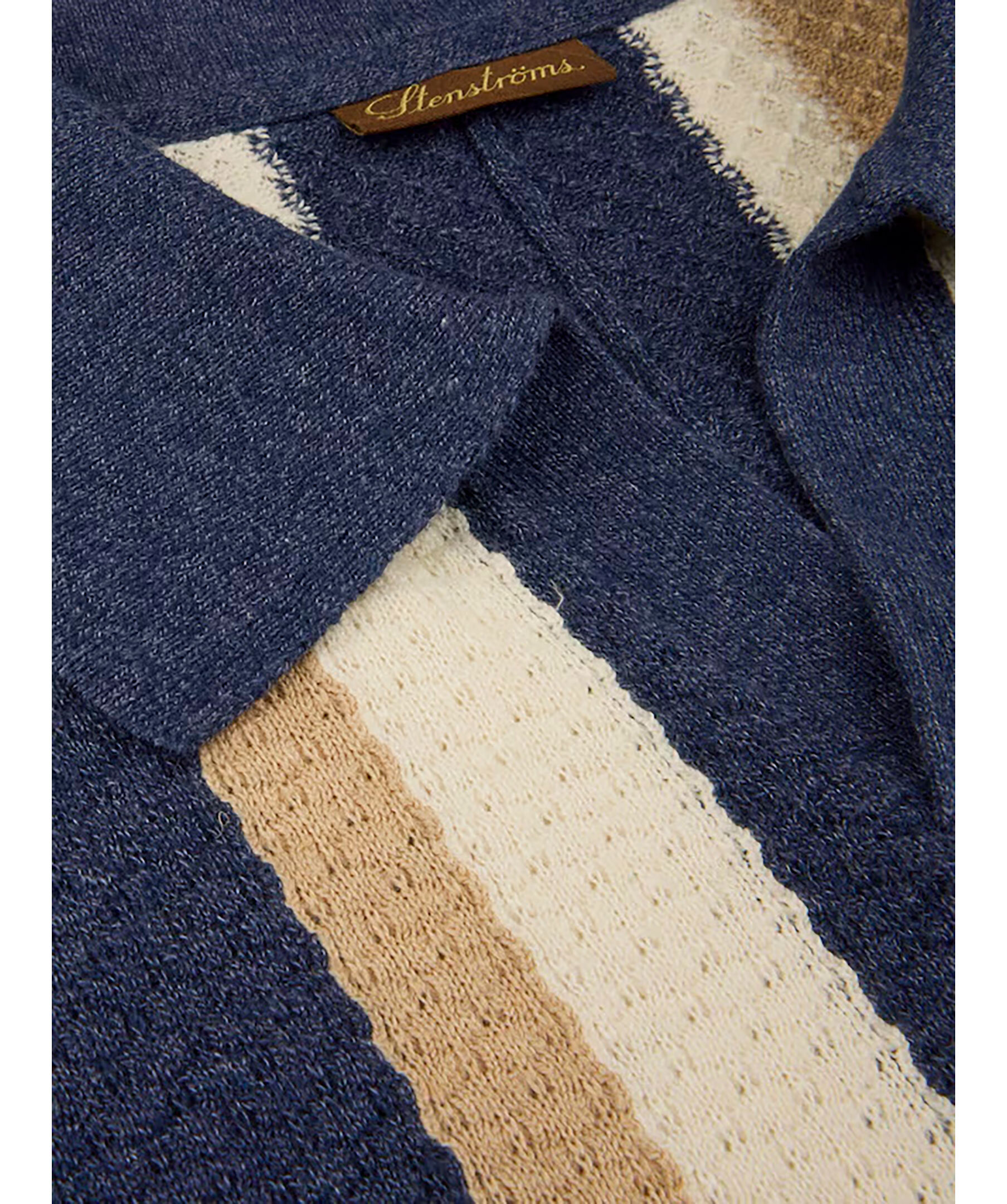 Mörkblå randig piké från Stenströms. Pikén har struktur och ränder i beige och vitt. Korta ärmar och ribbstickade detaljer. Tillverkad av en hampablandning.