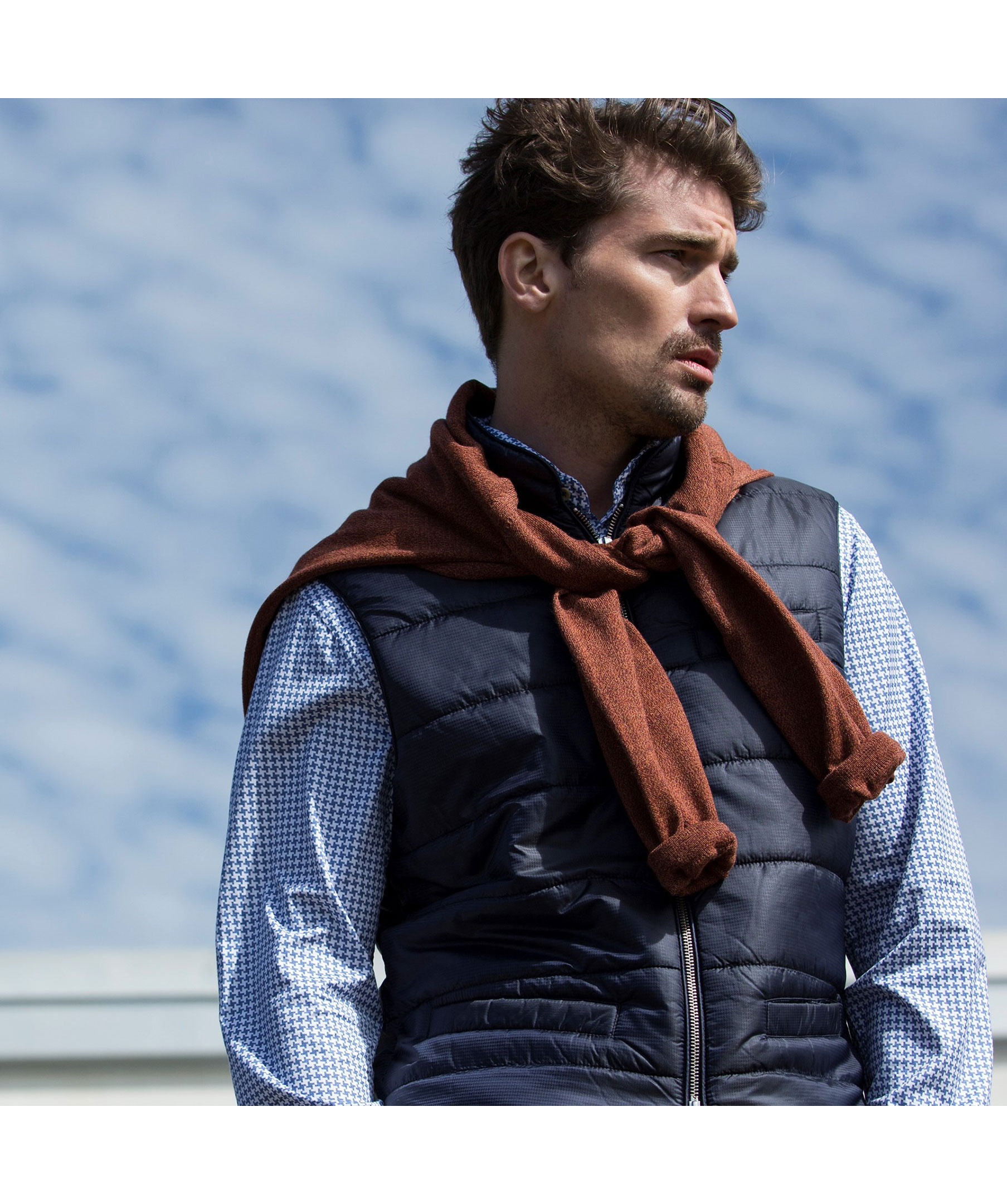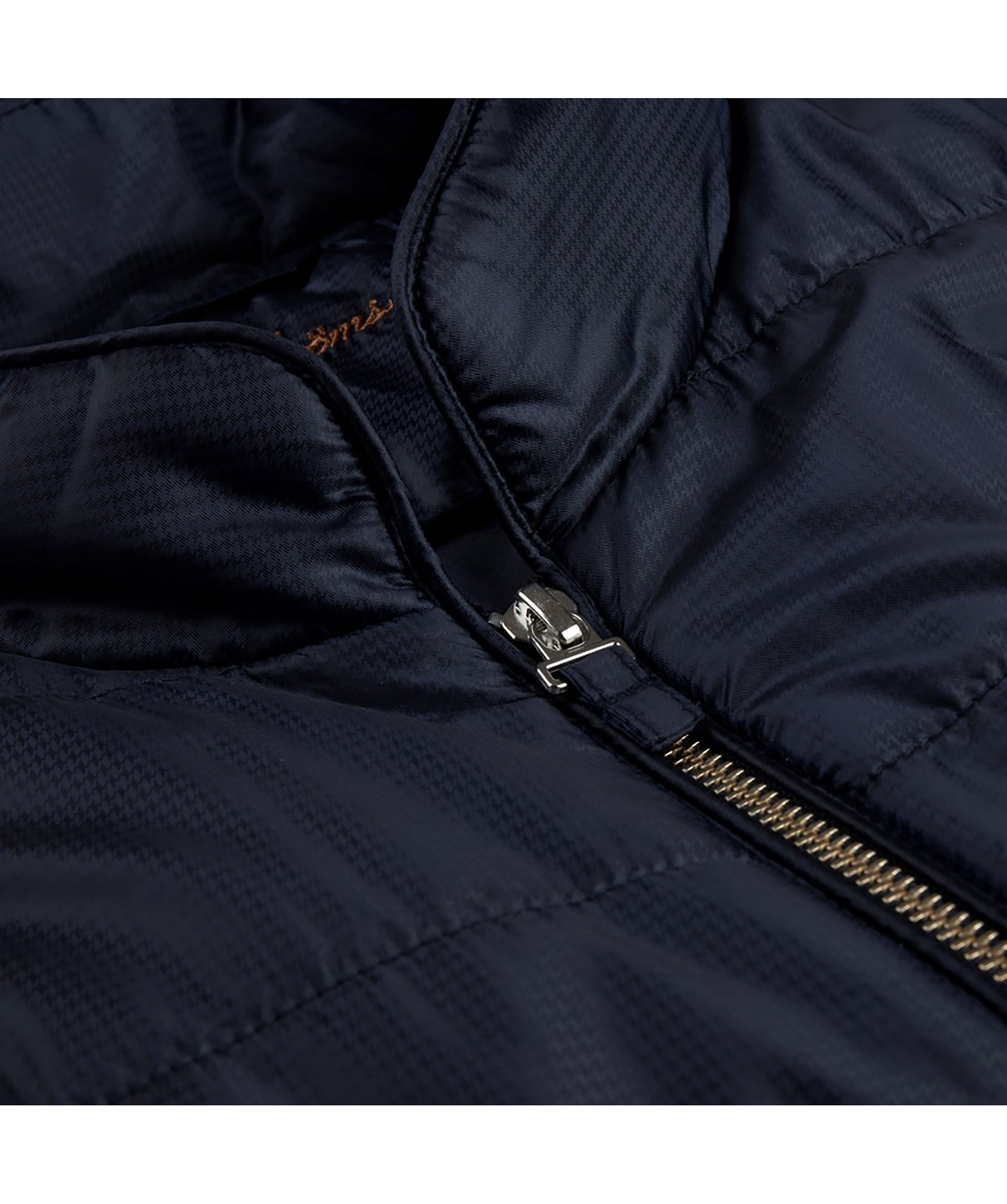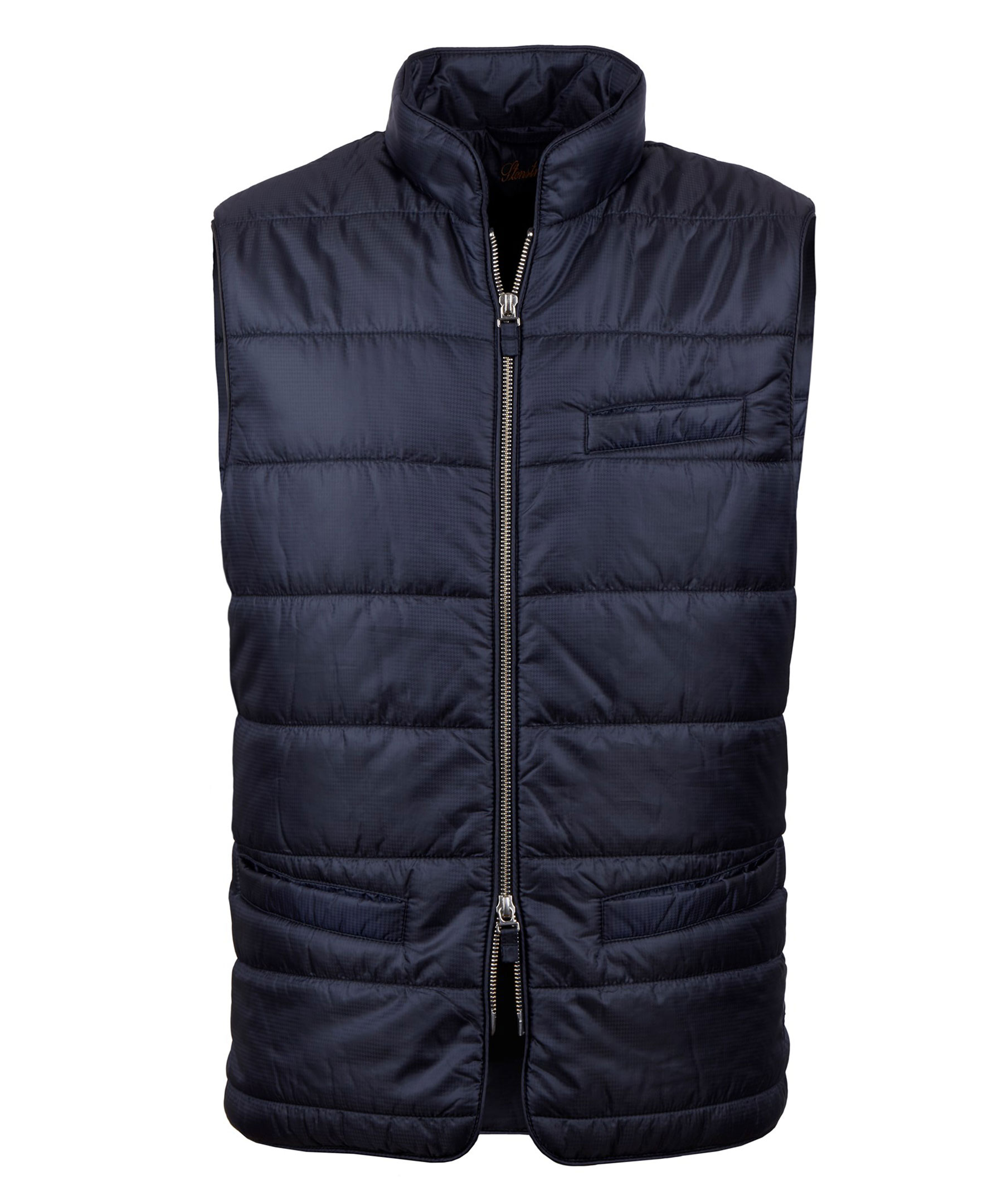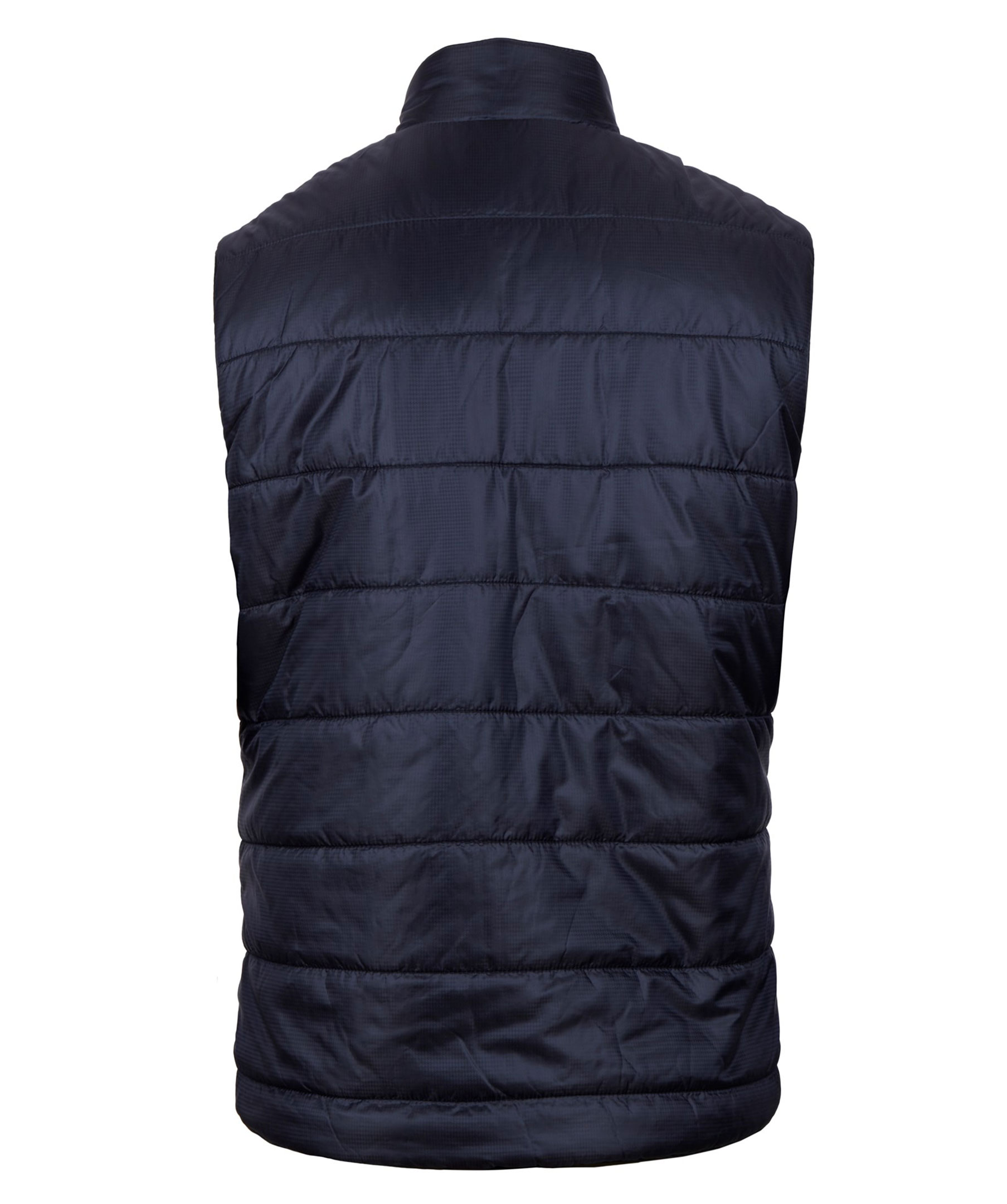 Marinblå fodrad väst från Stenströms. Hög krage, två framfickor, bröstficka samt två innerfickor. Tillverkad i polyester.