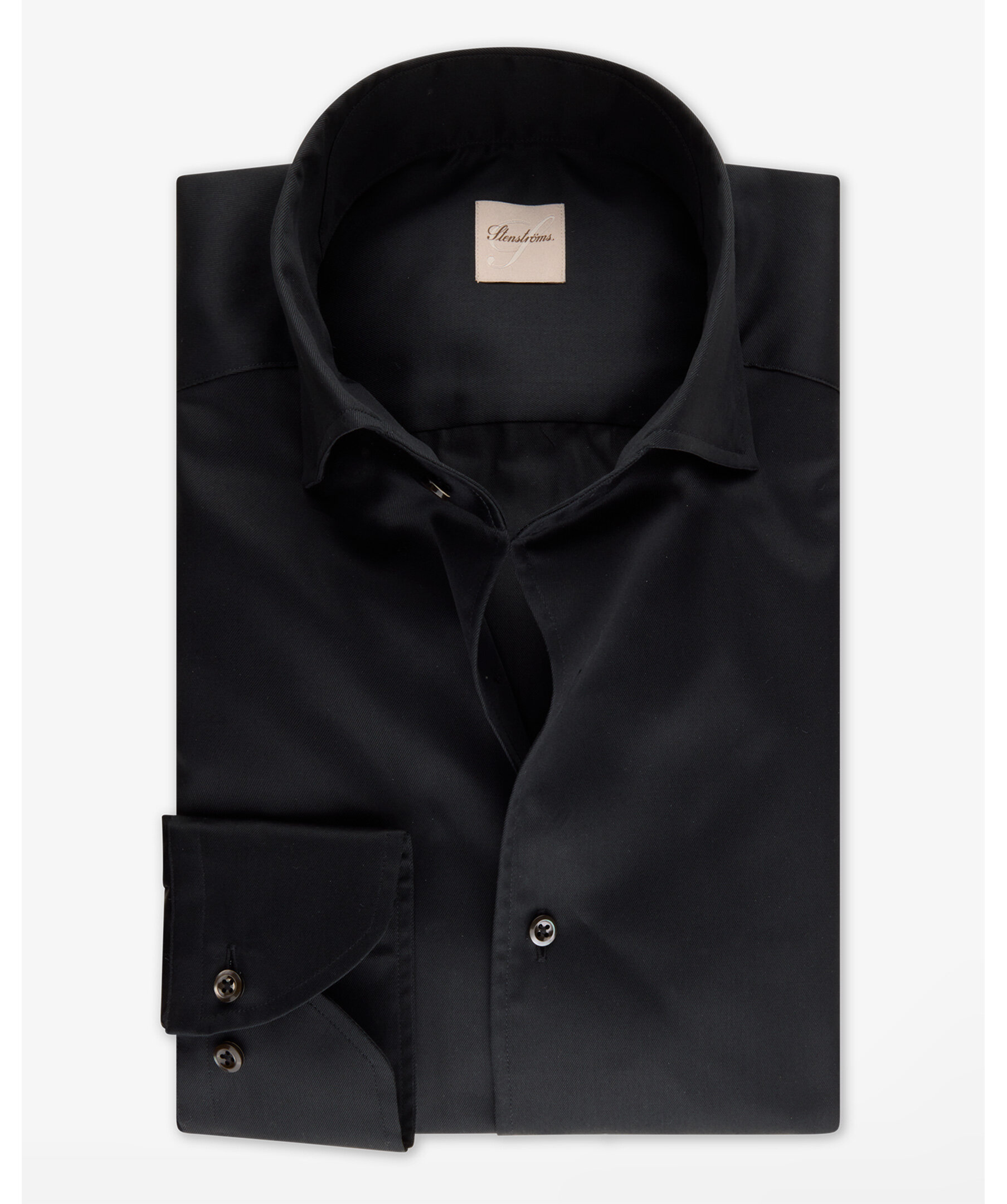 Svart twillskjorta från Stenströms tillverkad av twofold bomull. Skjortan har pärlemorknappar, enkla manschetter och en helskuren krage.