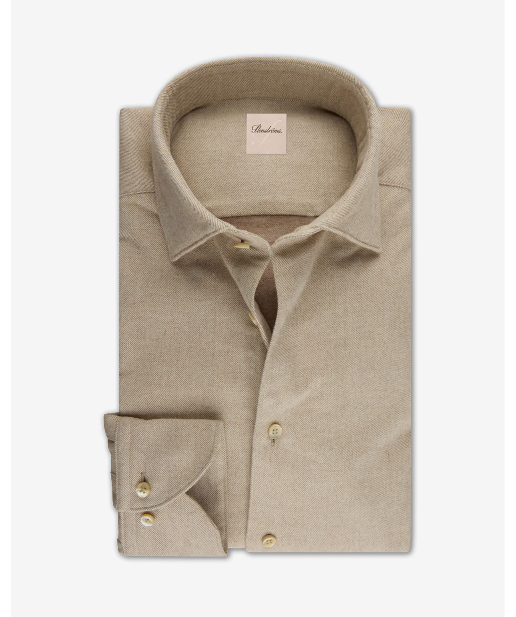 Beige flanellskjorta från Stenströms. Skjortan har en regular fit med cut away-krage och enkla manschetter. Tillverkad i mjuk dubbeltvinnad bomull för extra komfort och lyster. Perfekt för både vardag och festliga tillfällen.