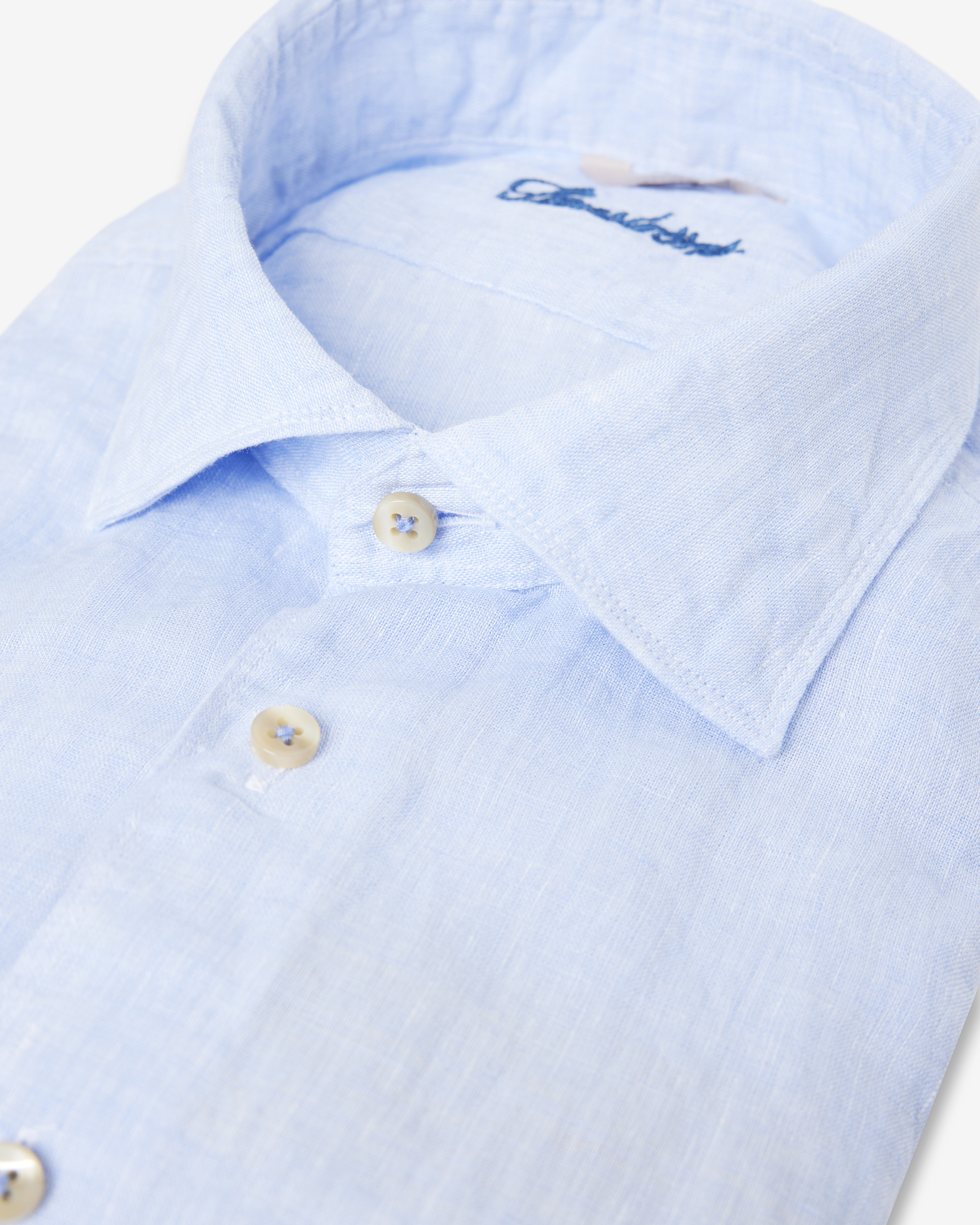 Casual skjorta tillverkad av linne. Skjortan har pärlemorknappar, enkla manschetter och en cut away krage.