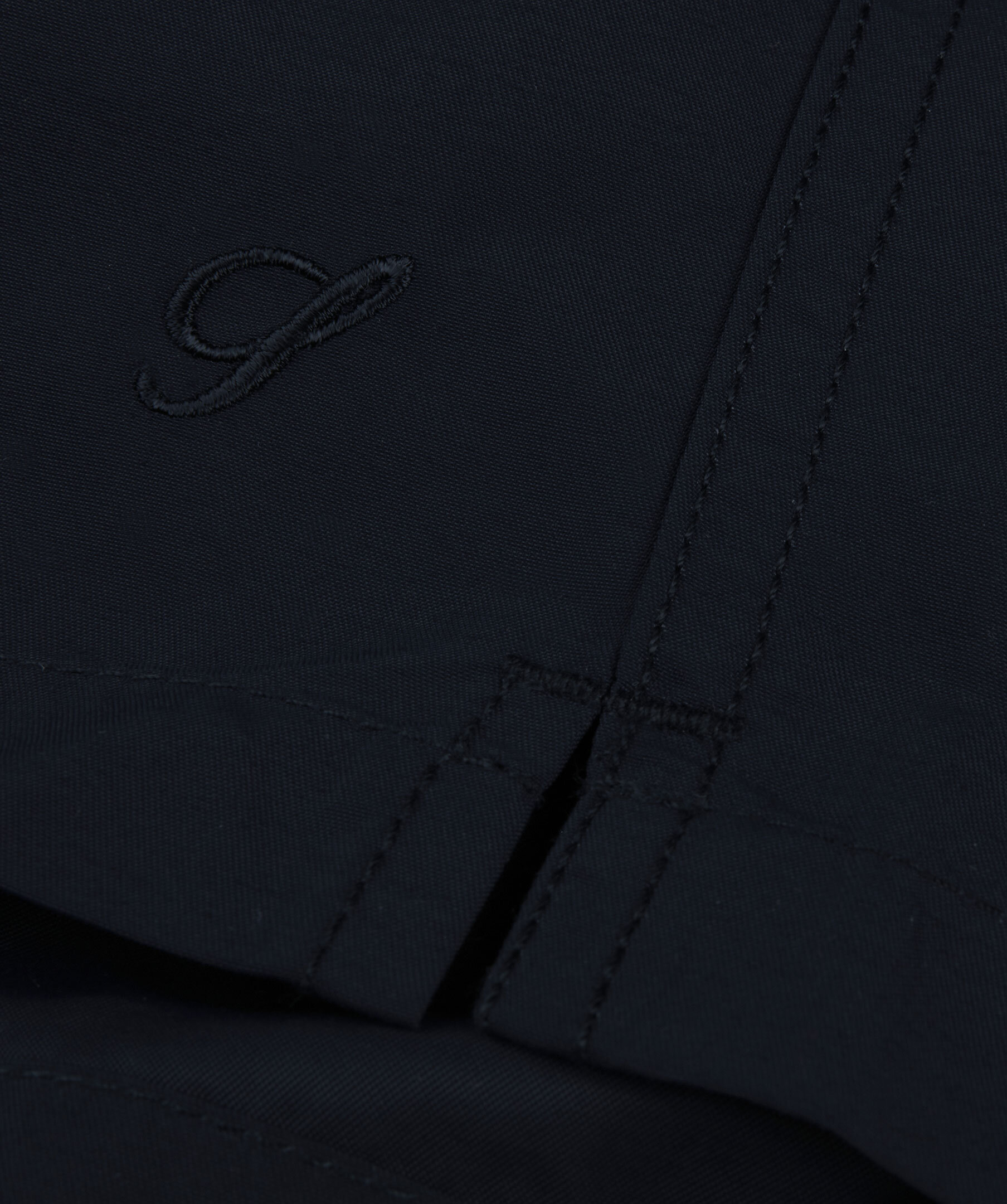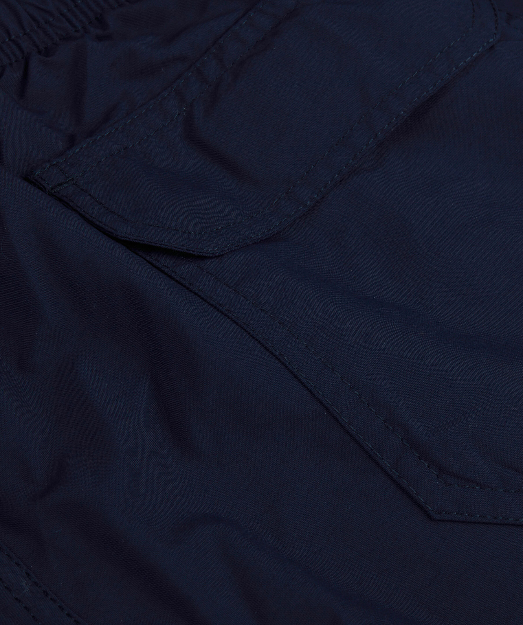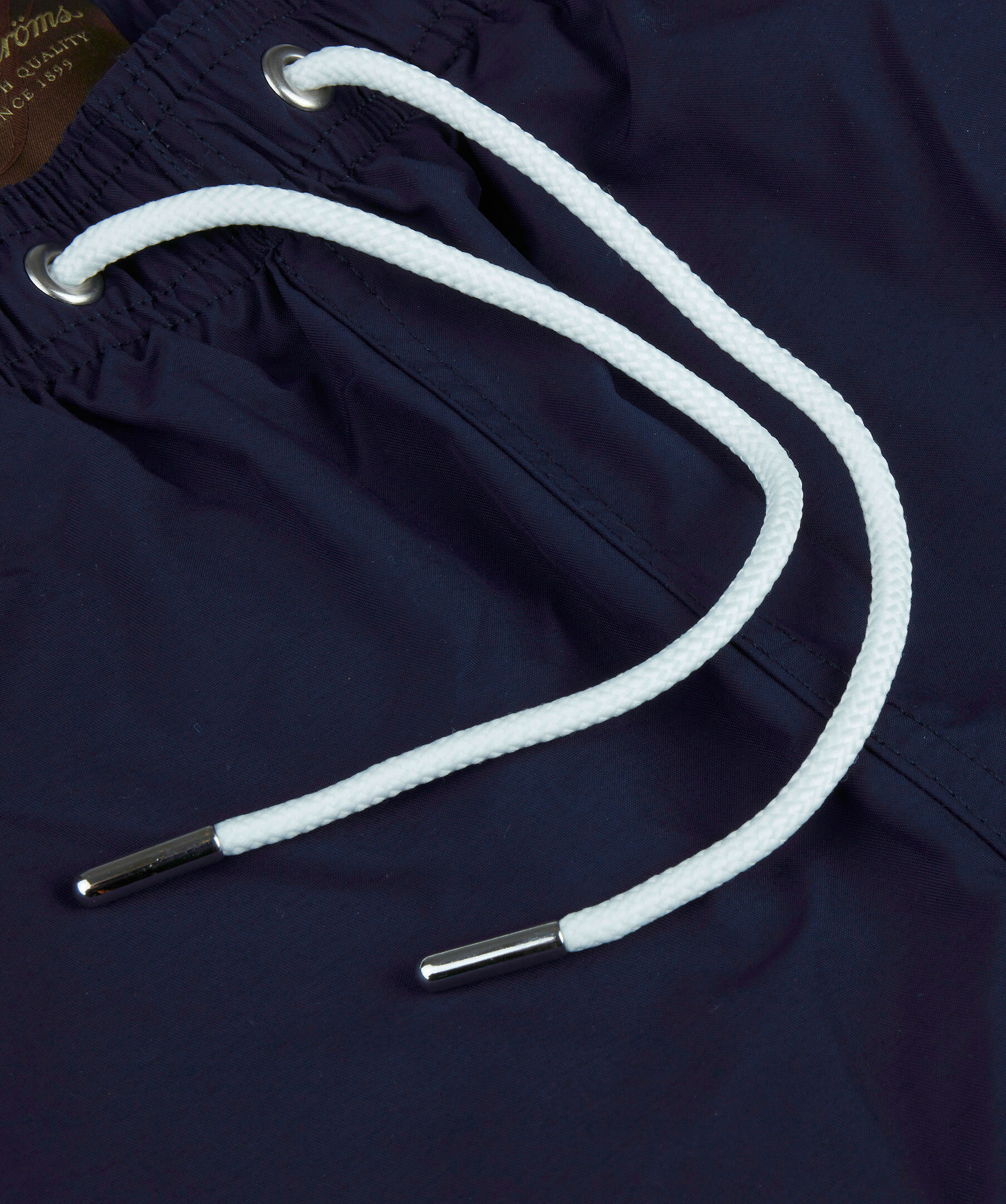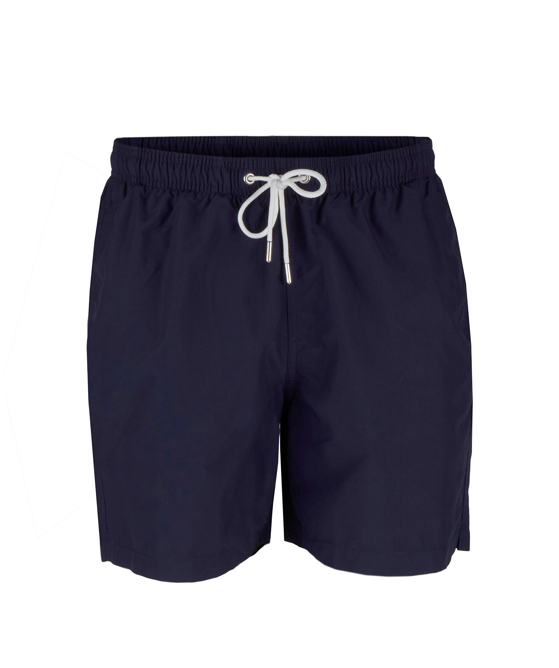 Badshortsen har en klassisk marinblå nyans som passar till det mesta. Shortsen är av 100% Nylon som torkar snabbt efter ett dopp i det blå och har en skön och matt yta. Shortsen har en krispigt vit kontrasterande dragsko i midjan för att justera passformen och andra smarta detaljer som sidfickor och en bakficka.