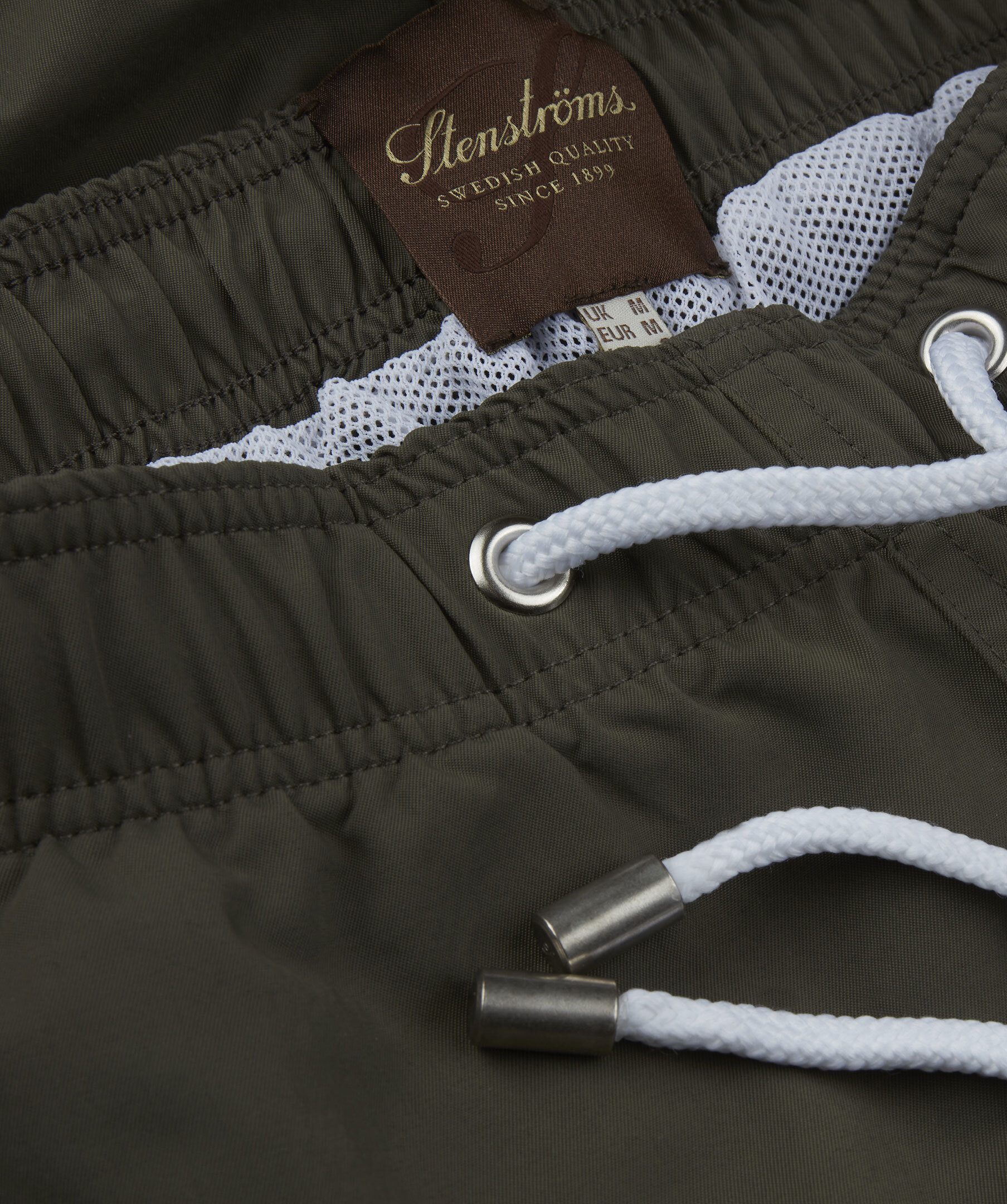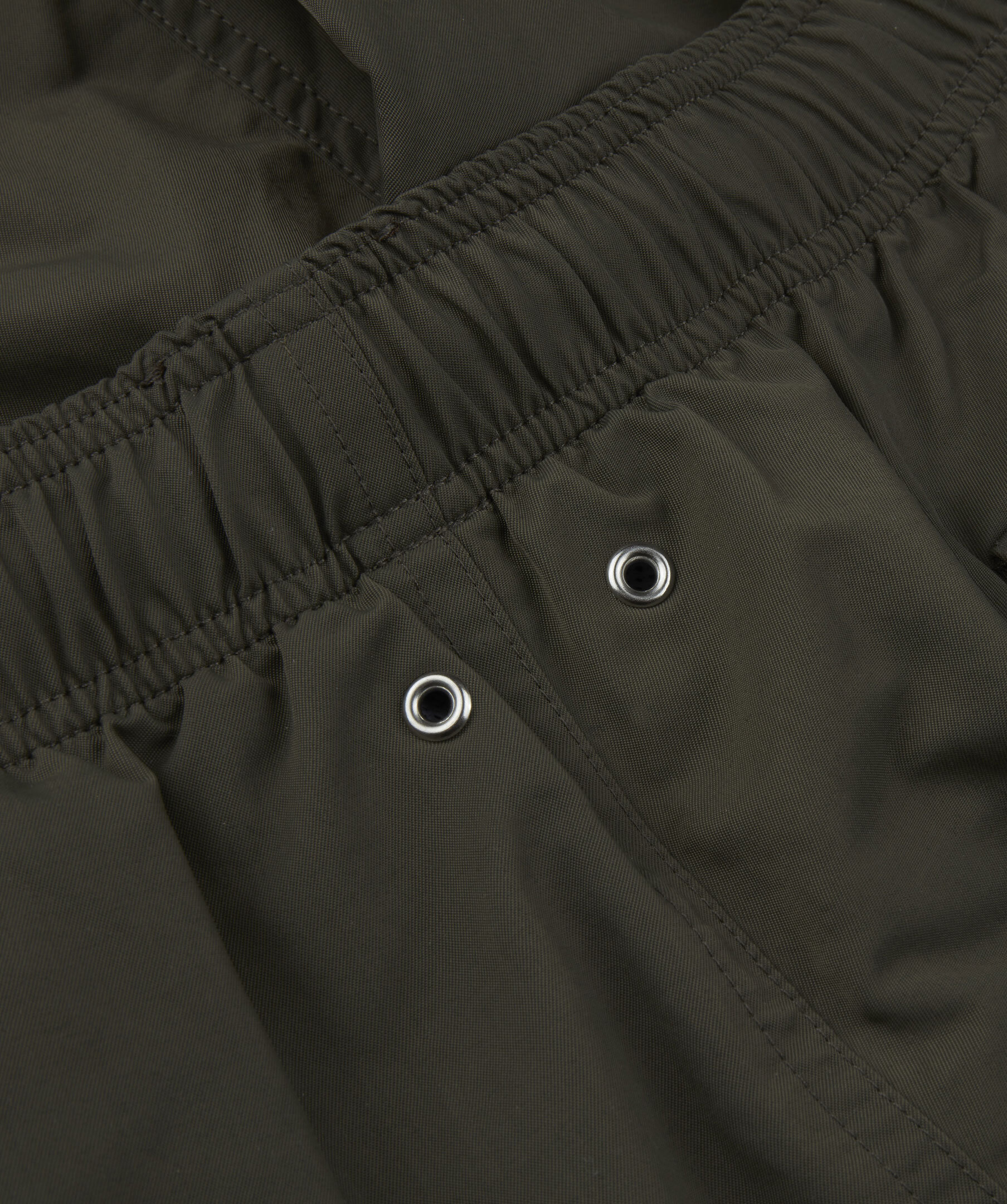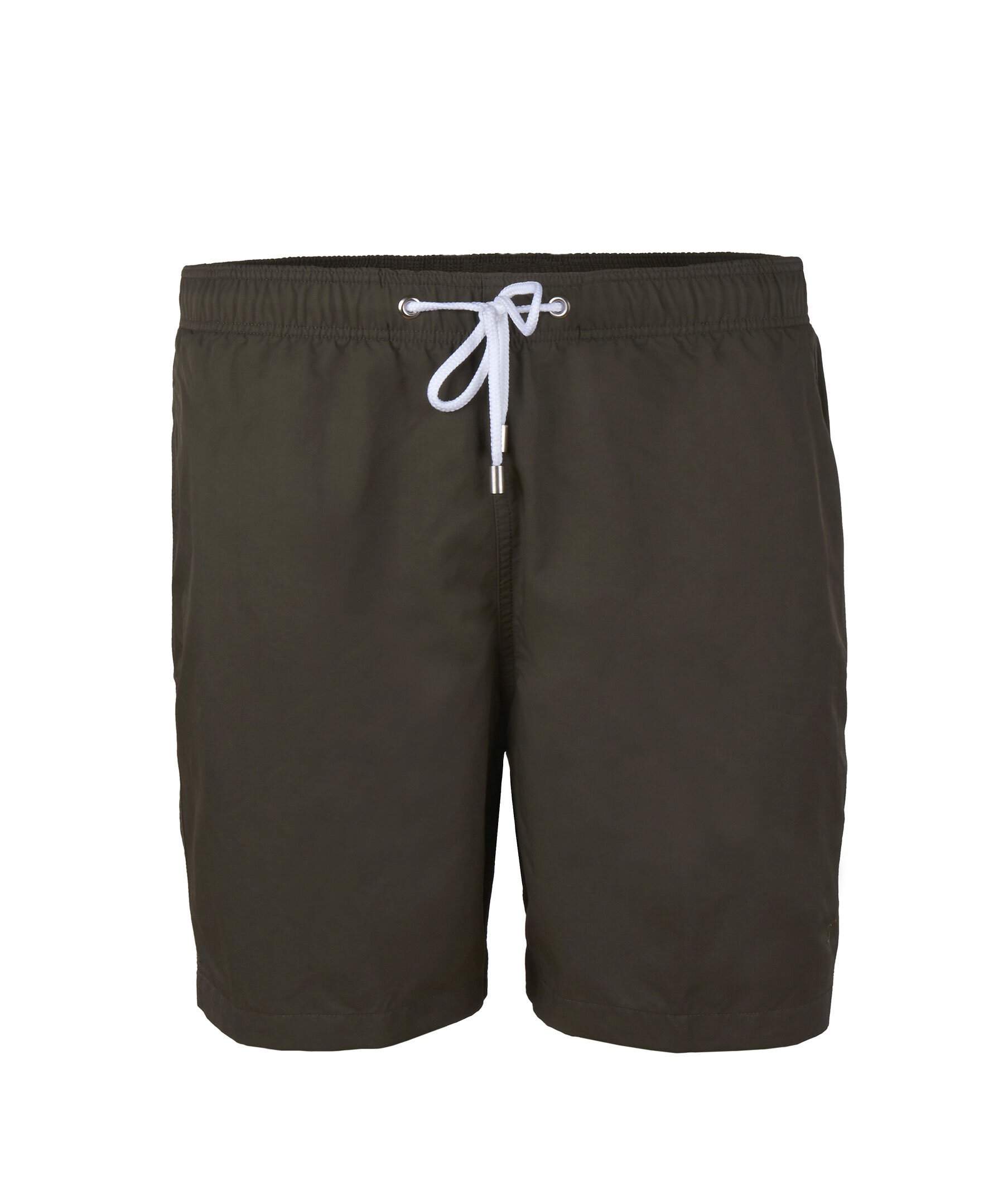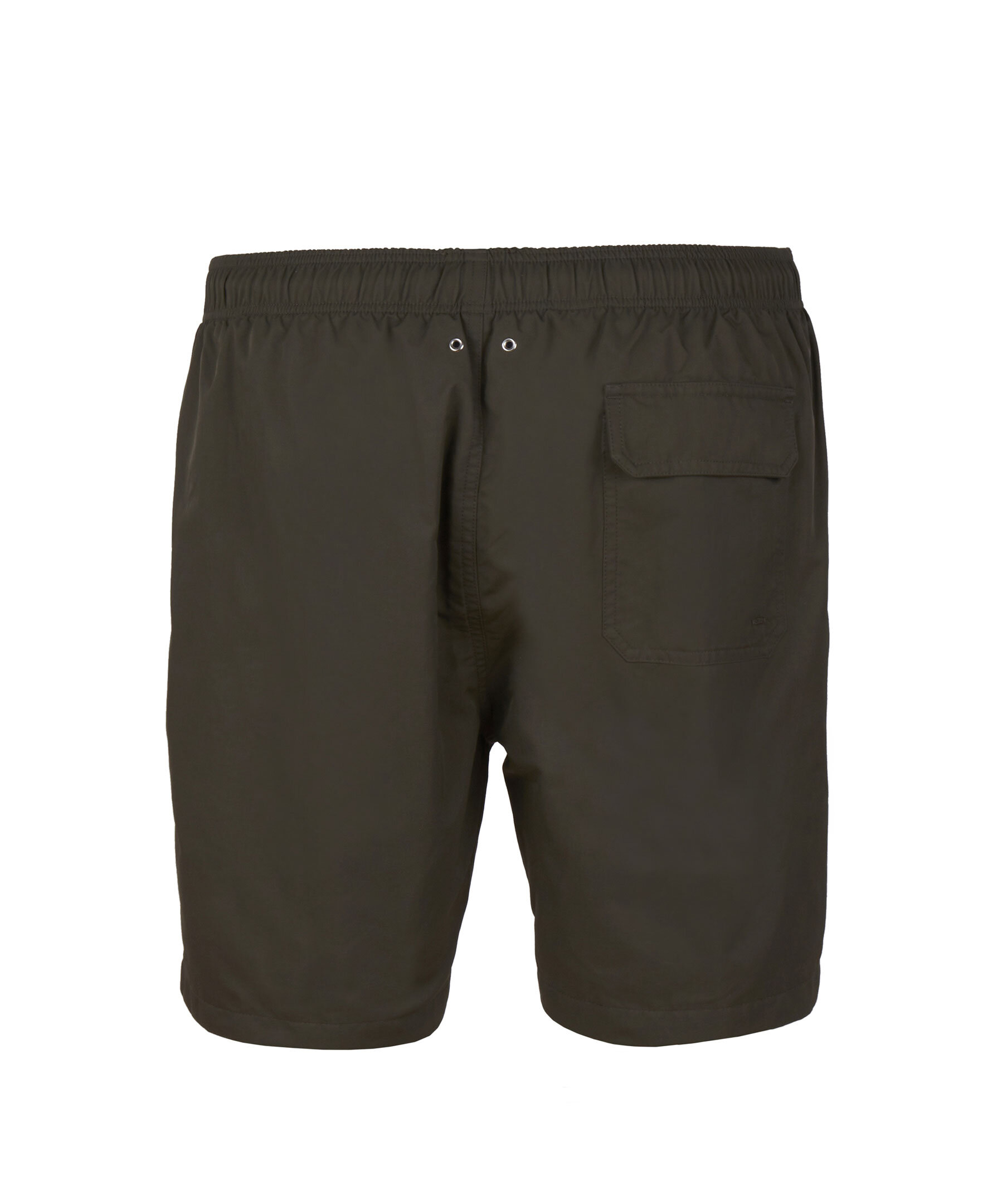 Badshortsen har en mörkgrön nyans som passar till det mesta. Shortsen är av 100% Nylon som torkar snabbt efter ett dopp i det blå och har en skön och matt yta. Shortsen har en krispigt vit kontrasterande dragsko i midjan för att justera passformen och andra smarta detaljer som sidfickor och en bakficka.
