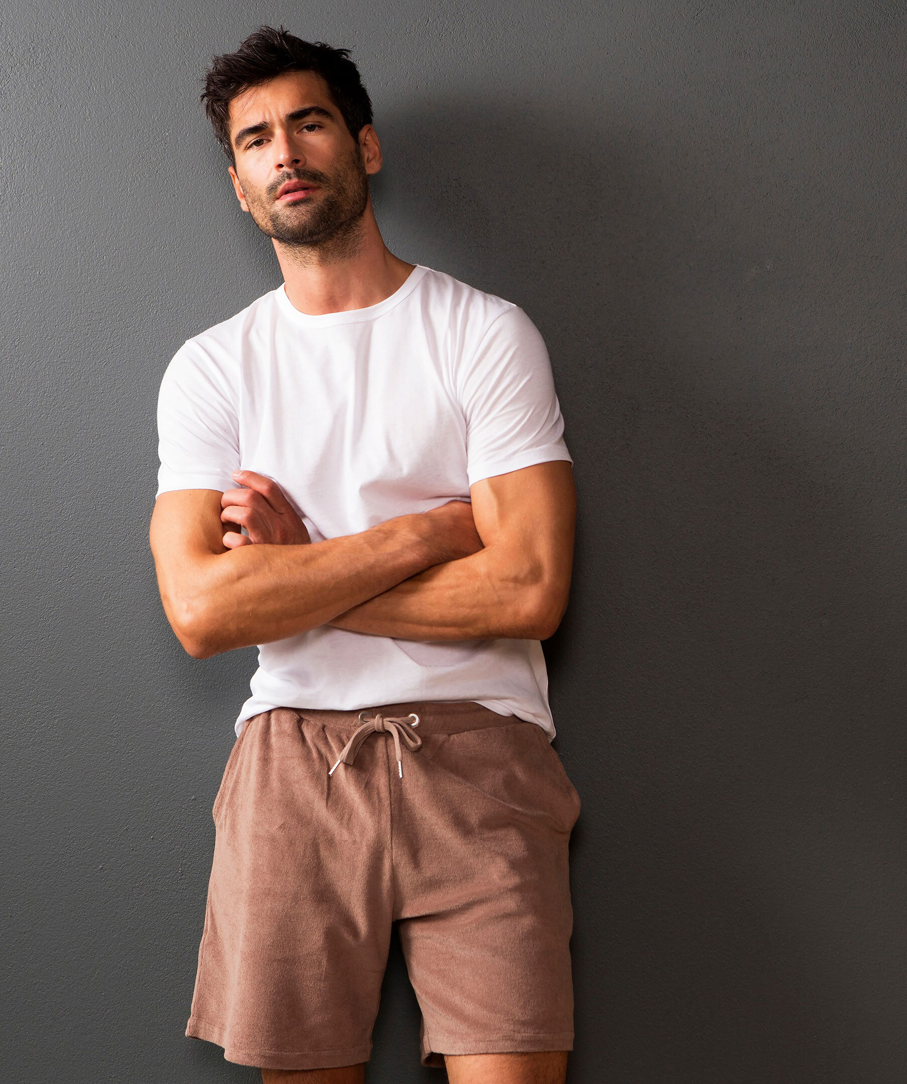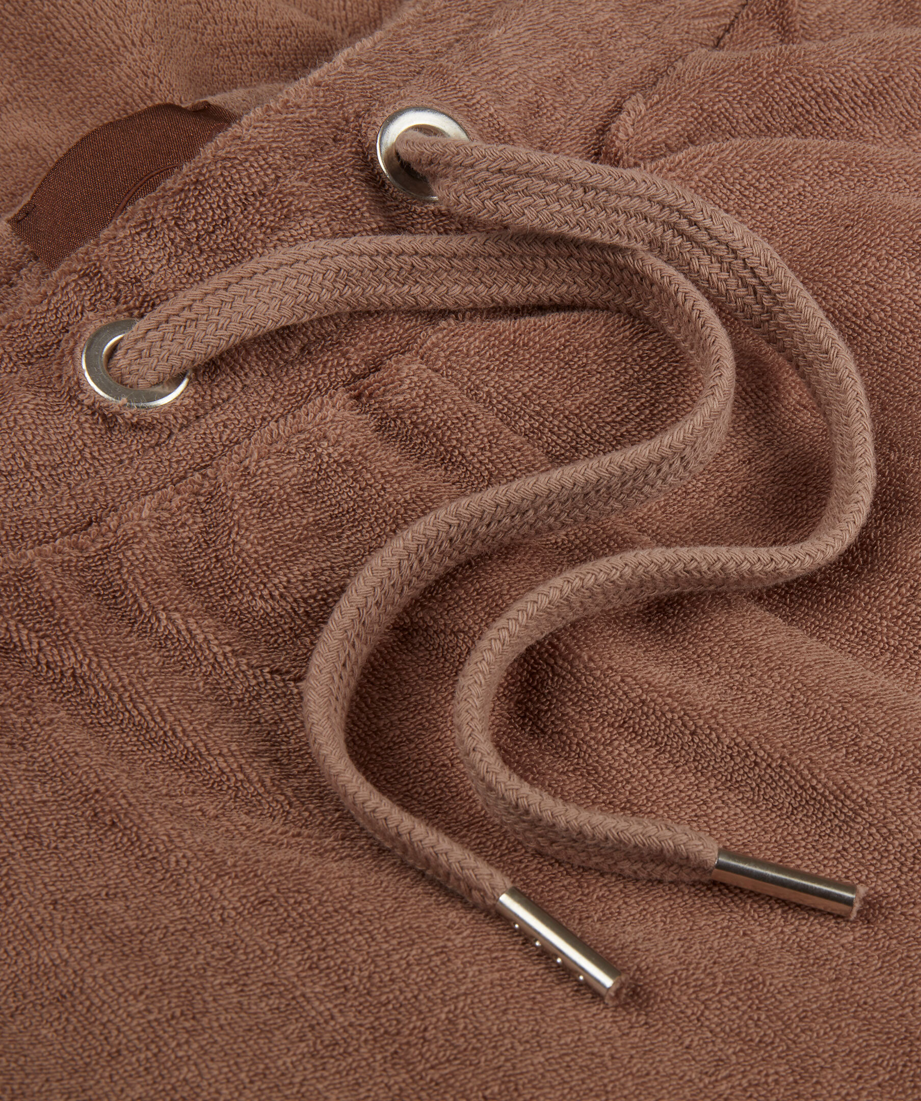 Sweatshorts i mjuk bomullsfrotté. Avslappnad passform, elastisk midja med dragsko samt sidfickor och en bakficka.