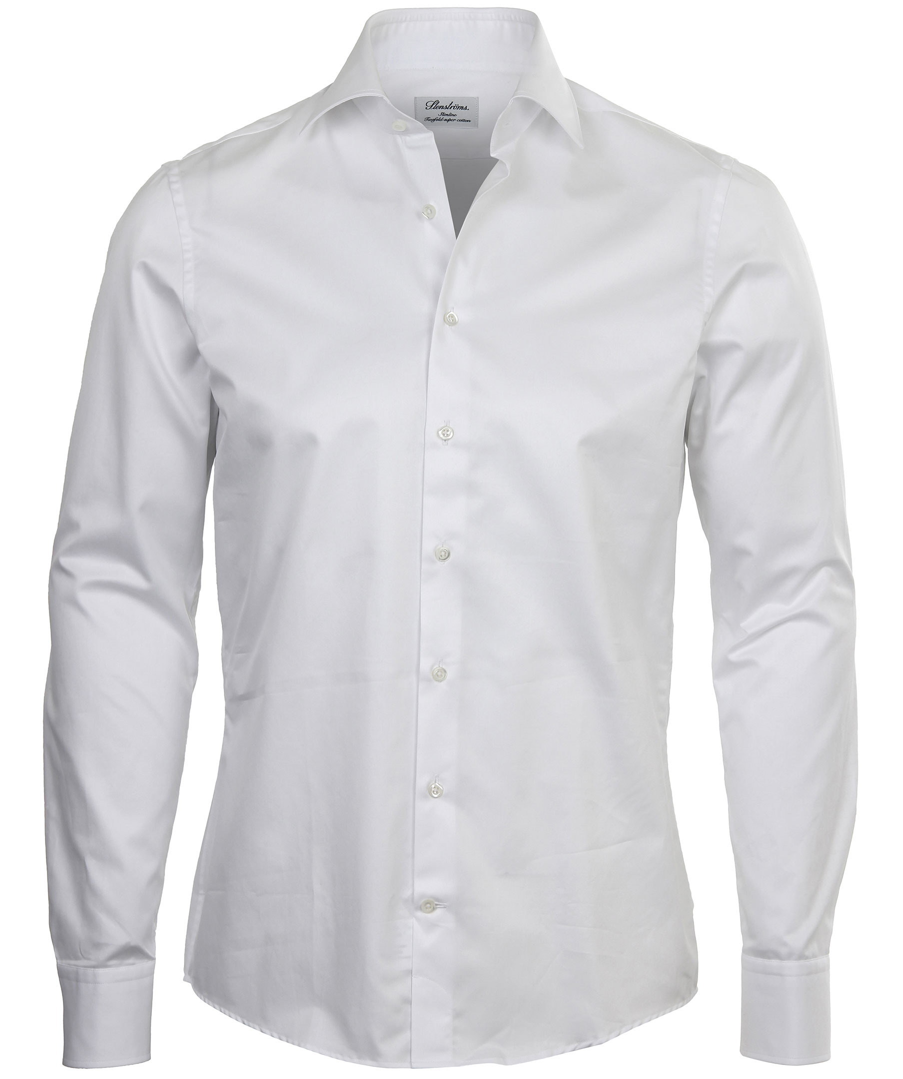 Vit skjorta från Stenströms. Smal passform, moderate cut away krage, enkel manschett, pärlemorknappar. Tillverkad i 100% bomull.