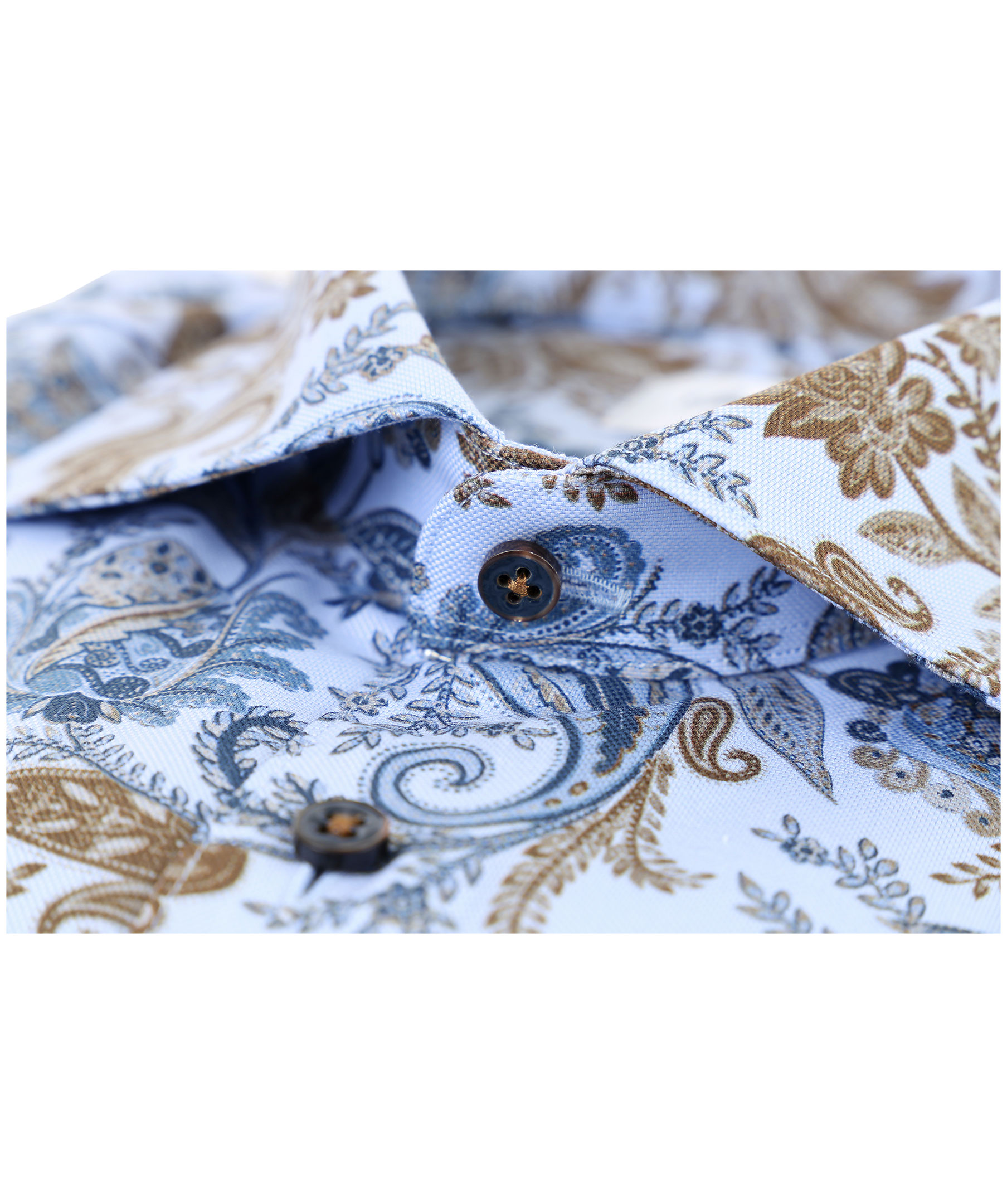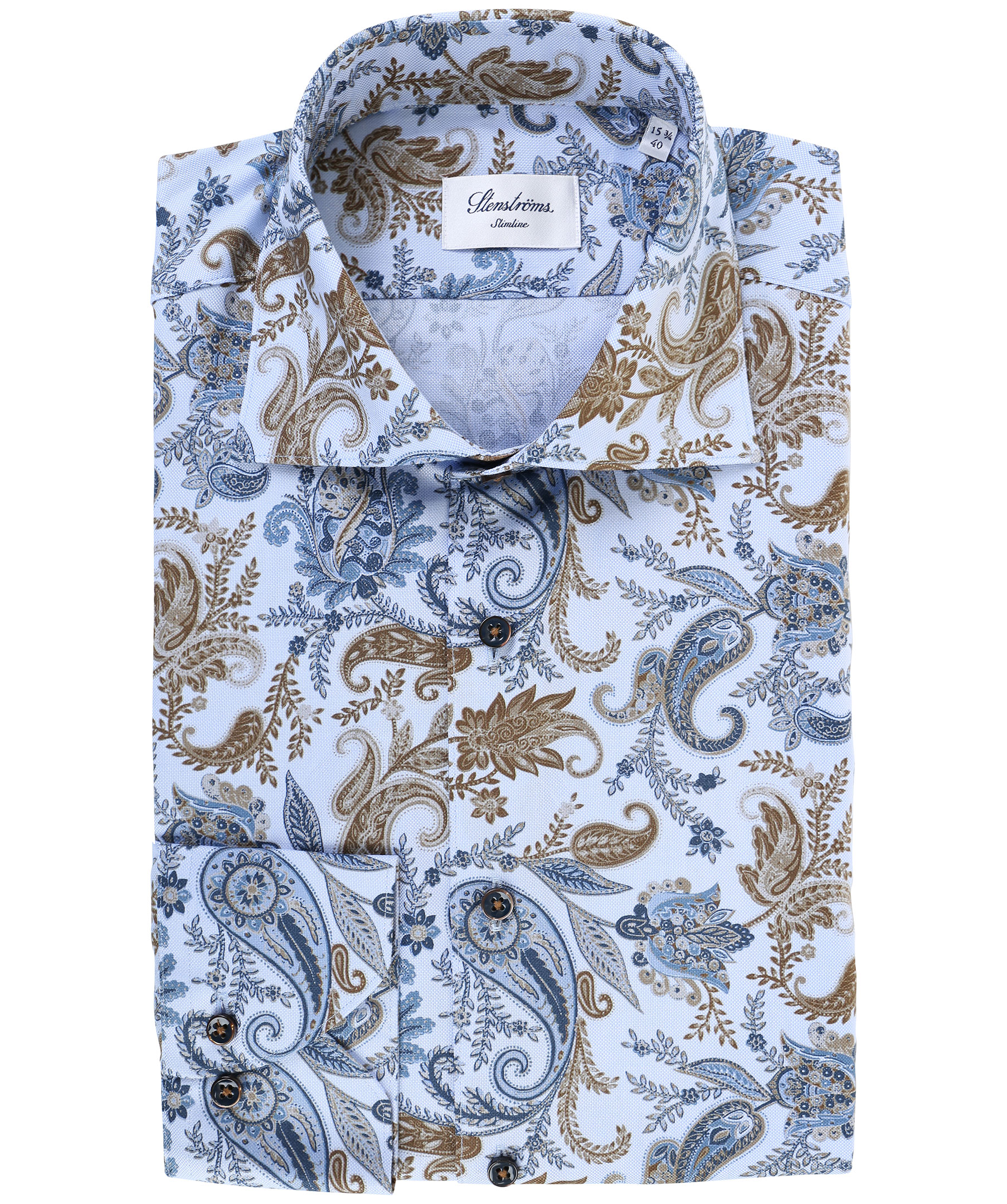 Flerfärgad och paisleymönstrad skjorta i slim fit modell från Stenströms. Skjortan är gjord helt i bomull och har en cut away krage.