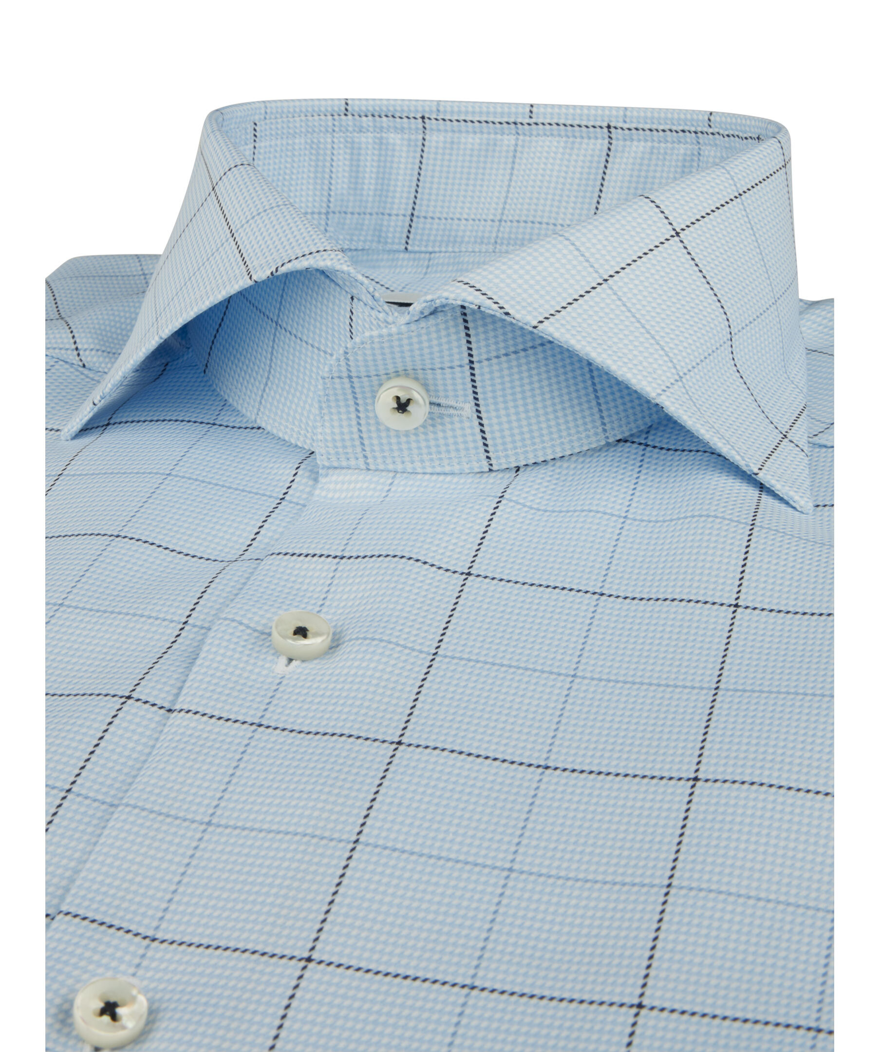 Denna rutiga Slimline twillskjorta är tillverkad av twofold bomull. Skjortan har pärlemorknappar, enkla manschetter och en cut away krage.