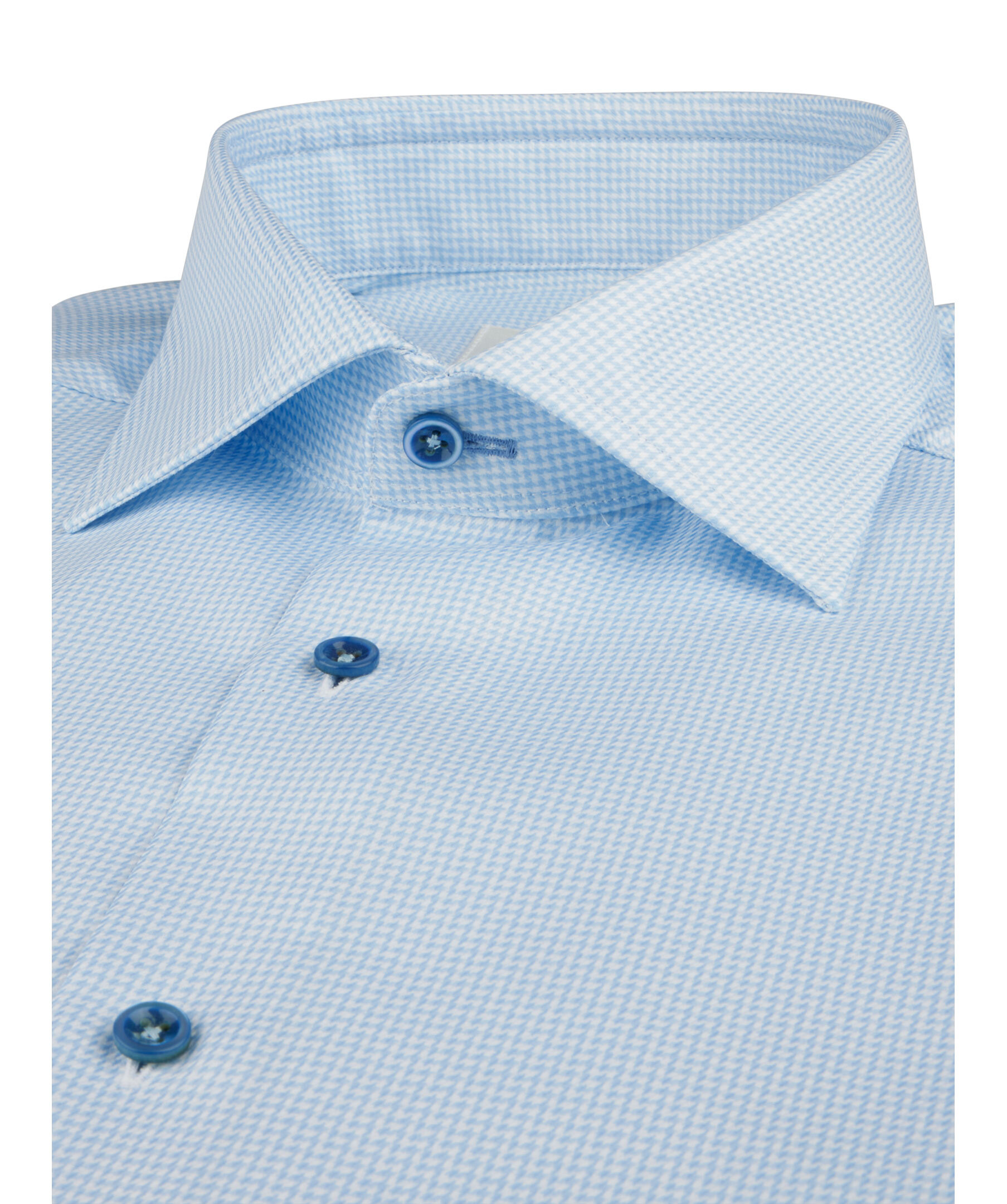 Denna Slimline twillskjorta är tillverkad av twofold bomull och har ett hundtandsmösnter. Skjortan har pärlemorknappar, enkla manschetter och en cut away krage.