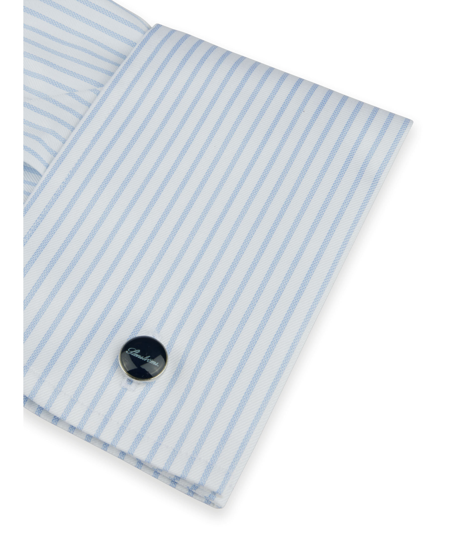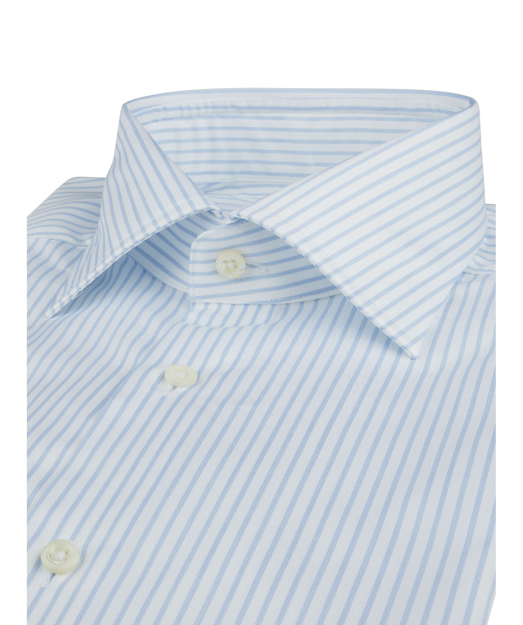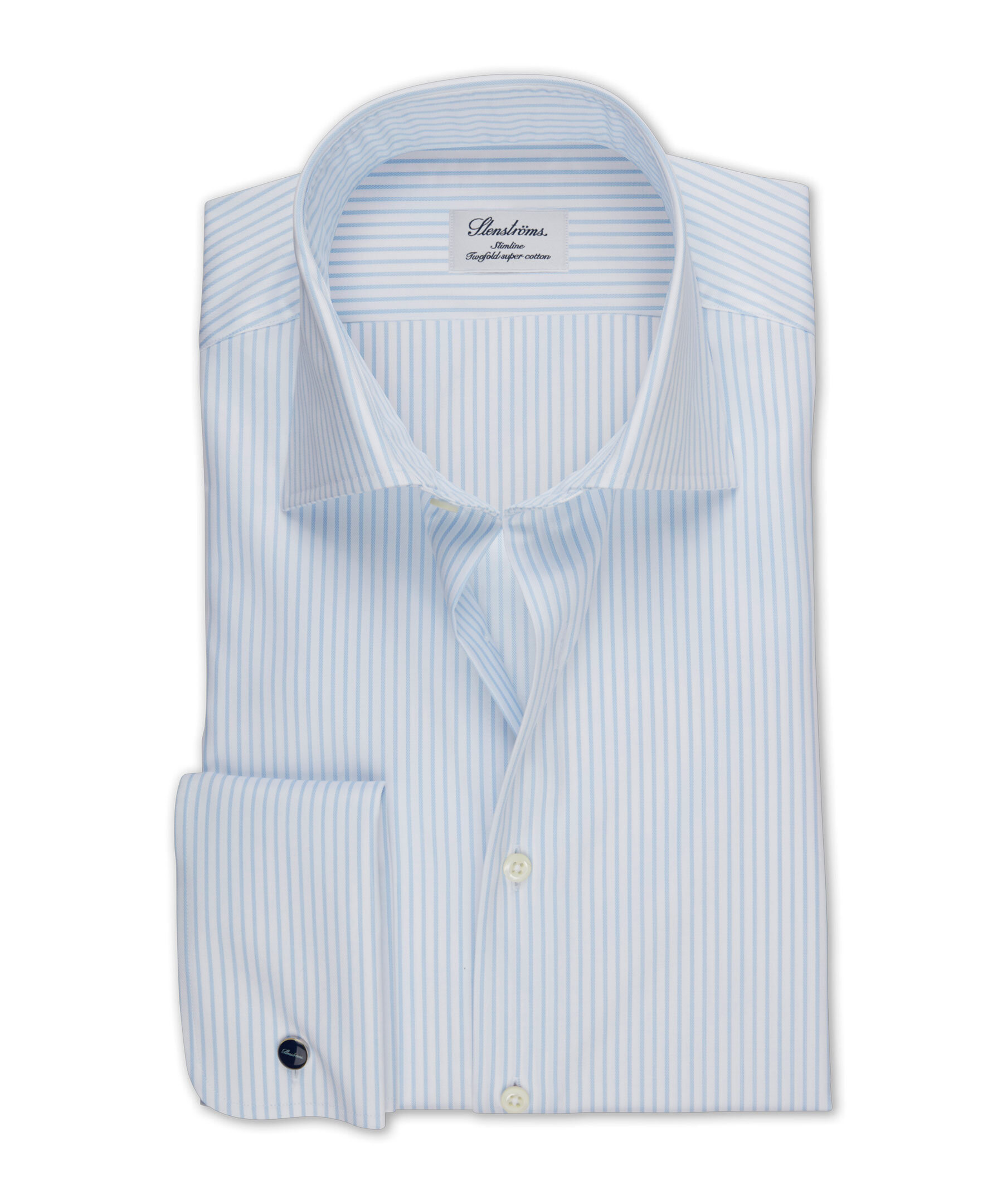 Denna randiga Slimline twillskjorta är tillverkad av twofold bomull. Skjortan har pärlemorknappar, dubbla manschetter och en cut away krage.