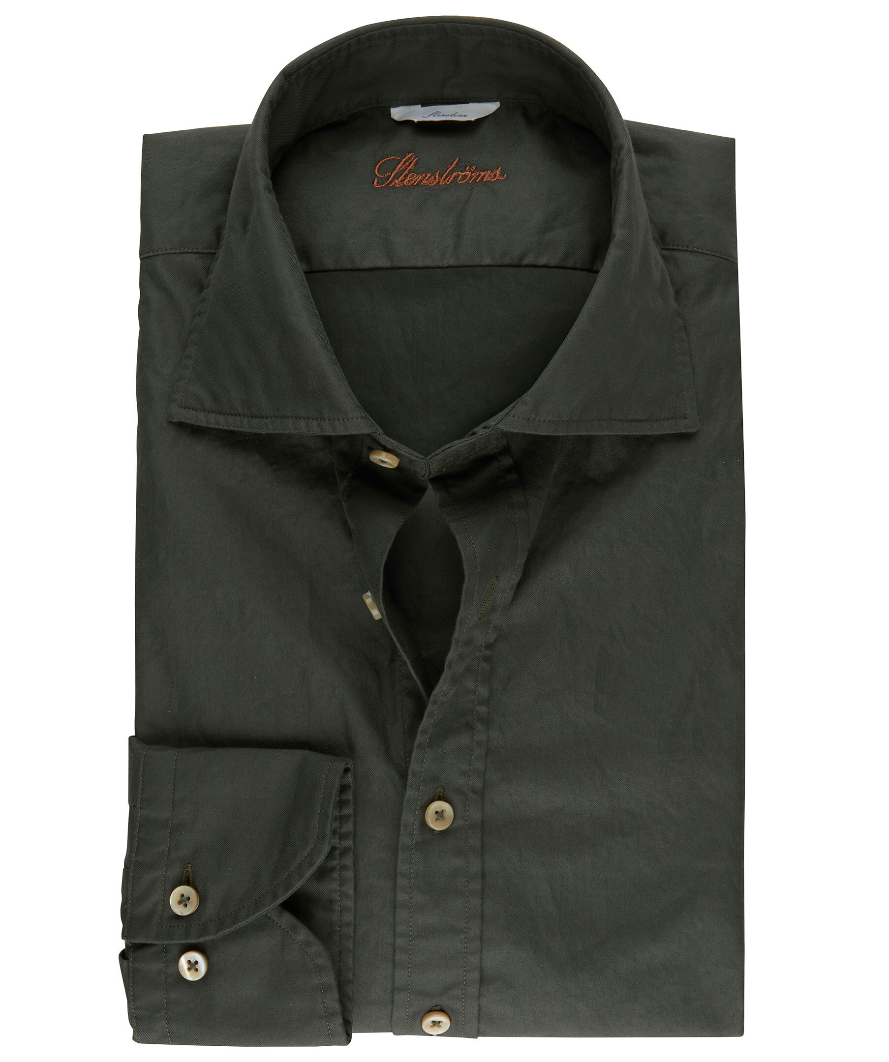 Grön skjorta från Stenströms. Tillverkad i 100% bomull. Enkel manschett, cut away krage, slimline, pärlemorknappar.