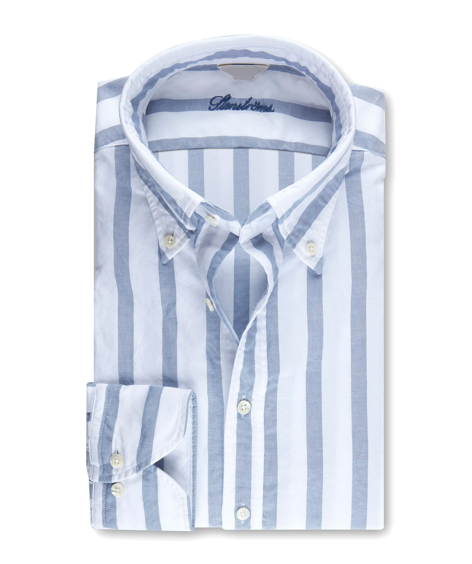 Oxfordskjorta i en följsam dubbeltvinnad (twofold) Oxford bomull i en härlig ljusblå nyans. Modellen Slimline har en smal siluett och en bekväm passform. Detaljerad med enkla manschetter, förlängd button down-krage och knappar i pärlemor. Bär den till ett par kostymbyxor för en modern klassisk stil eller till ett par jeans för en casual look. Rulla upp ärmarna för en mer avslappnad stil.