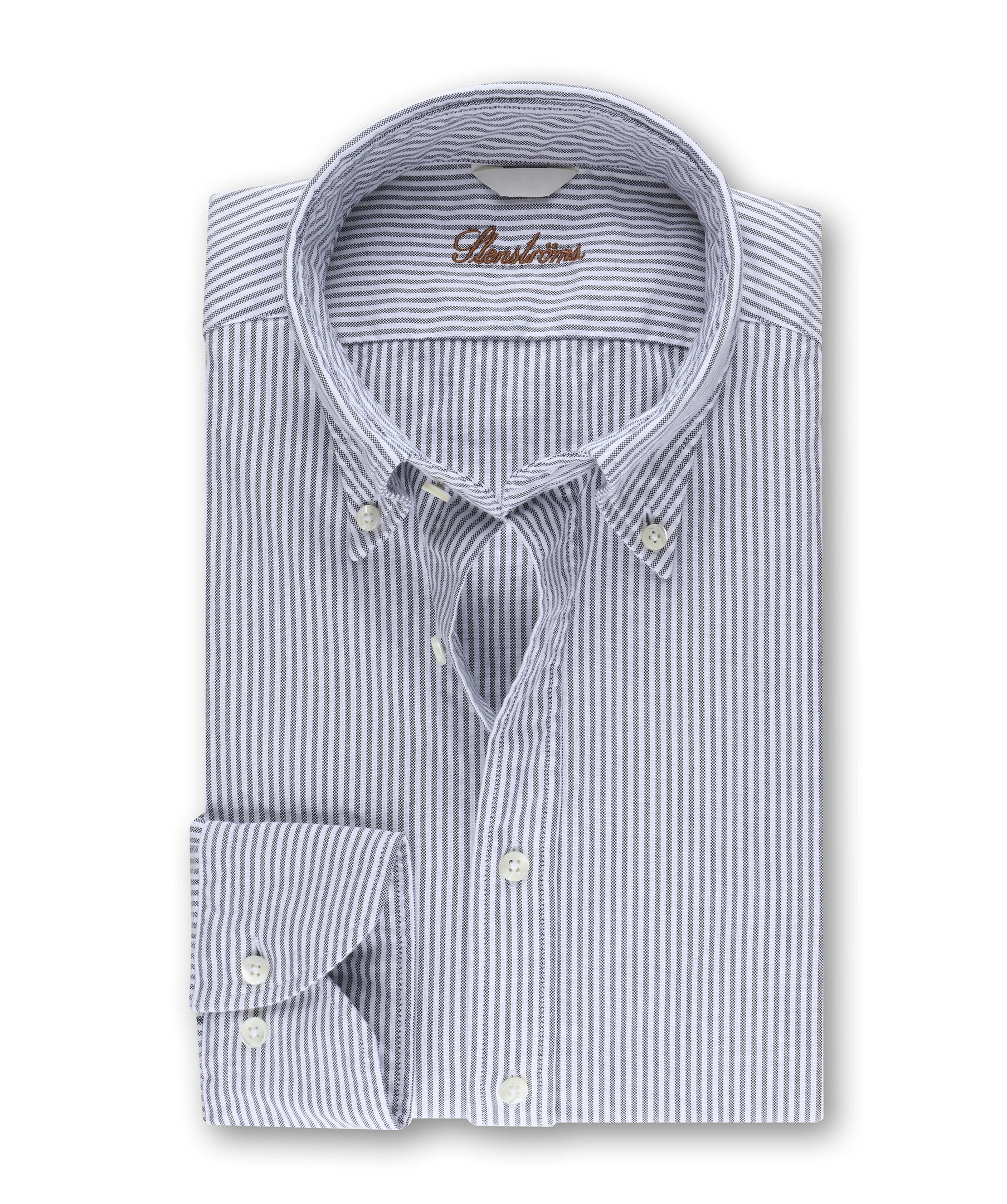Modellen Slimline har en smal siluett och en bekväm passform. Detaljerad med enkla manschetter, förlängd button down-krage och knappar i pärlemor. Bär den till ett par kostymbyxor för en modern klassisk stil eller till ett par jeans för en casual look. Rulla upp ärmarna för en mer avslappnad stil.