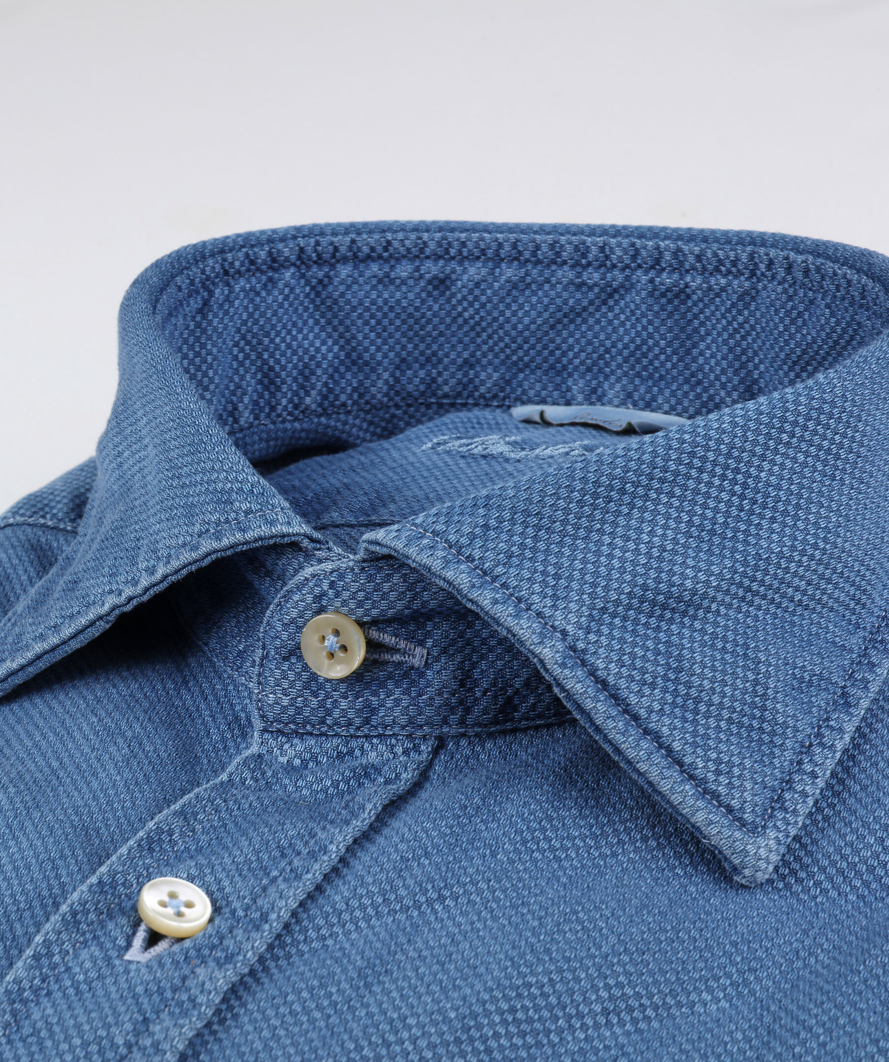 Skjorta från Stenströms i pikéväv med denimlook. Tvättad kvalité med knappar i pärlemor.