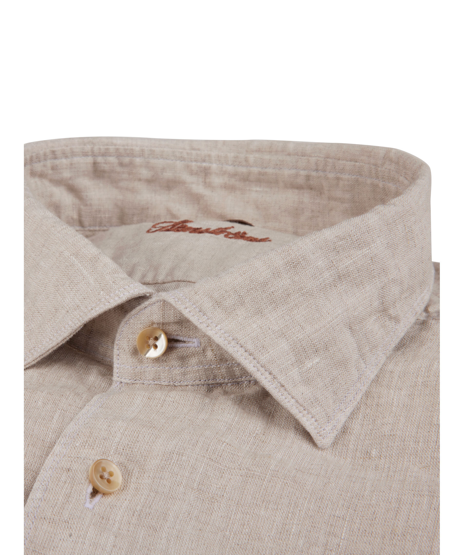 Denna casual Slimline-skjorta är tillverkad av linne. Skjortan har pärlemorknappar, enkla manschetter och en cut away krage.